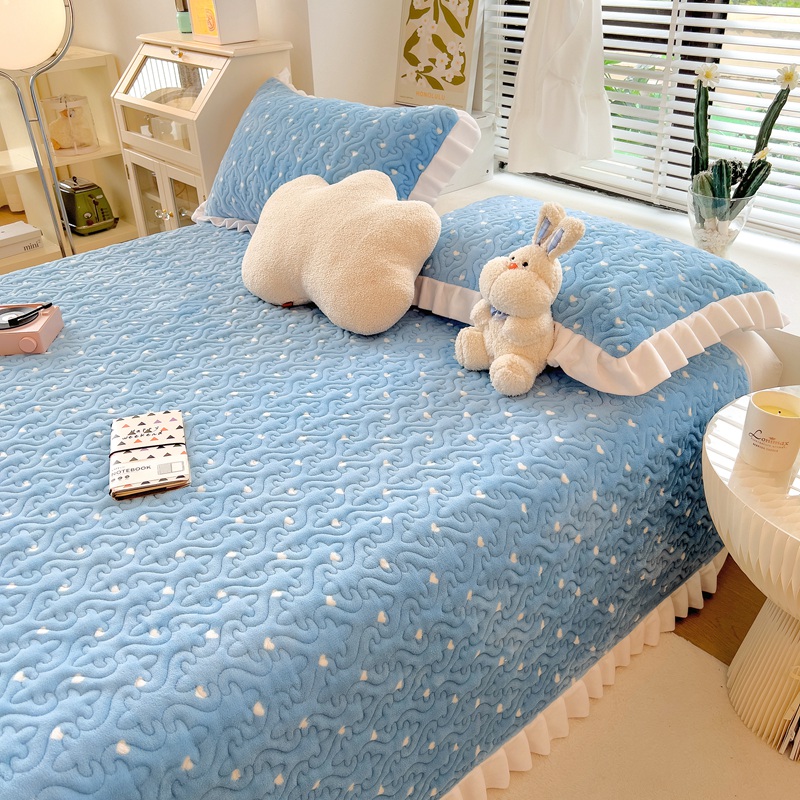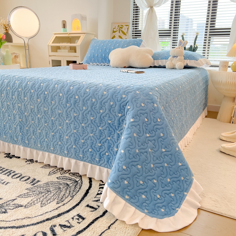 梵朴2023新款冬季加厚牛奶绒床盖 心愿兰