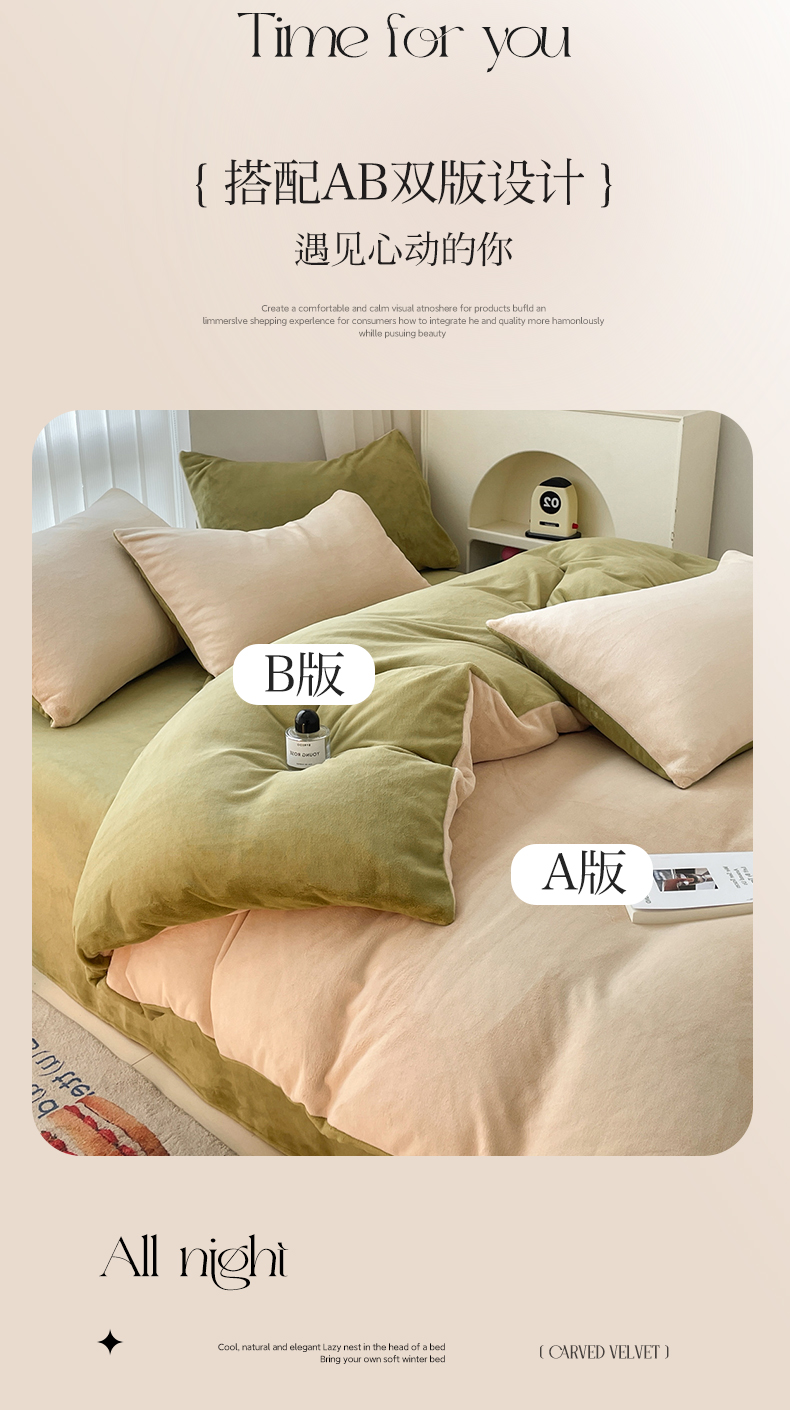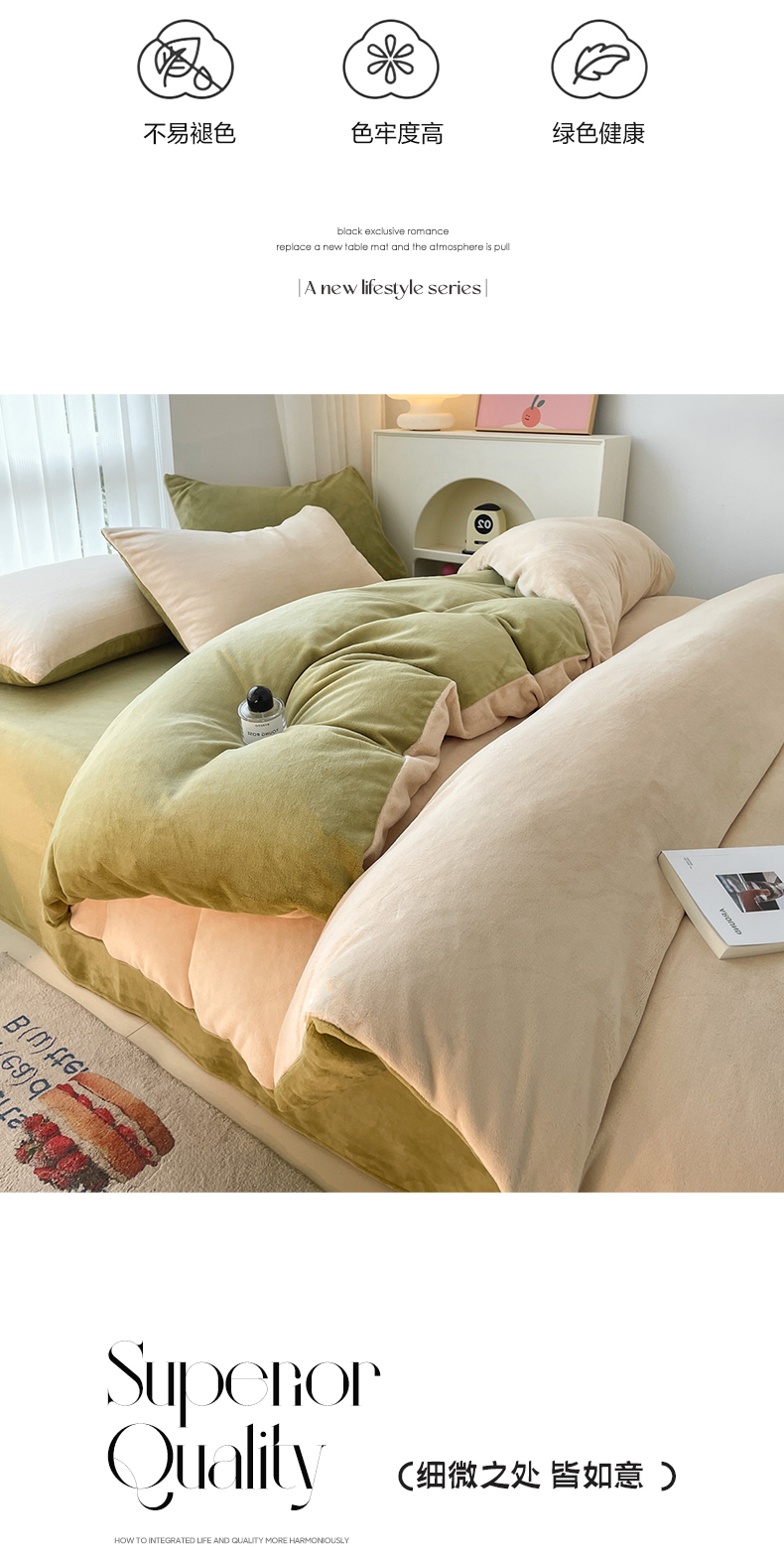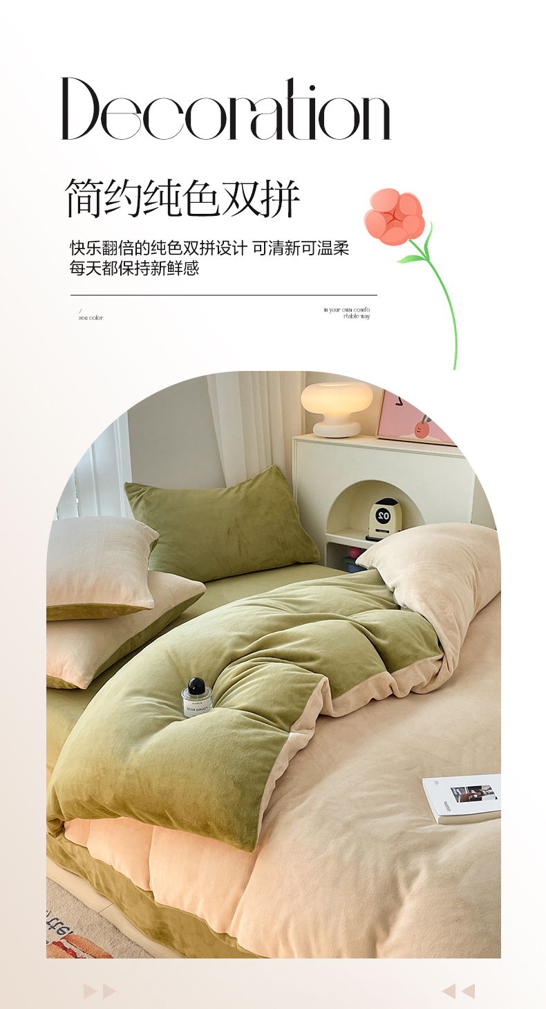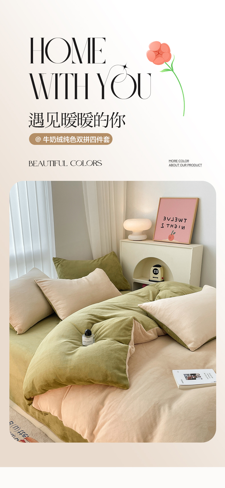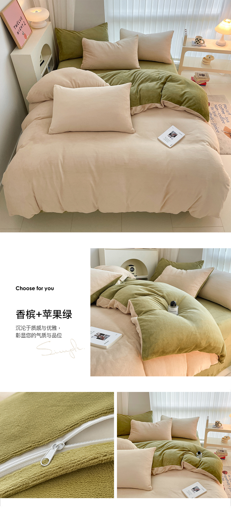 当前位置: 91家纺网 > 商品网购 > 床品套件 > 四件套 > 牛奶绒四件套 > 古吉梦 2023新款牛奶绒纯色双拼(跑量款)四件套 香槟+苹果绿