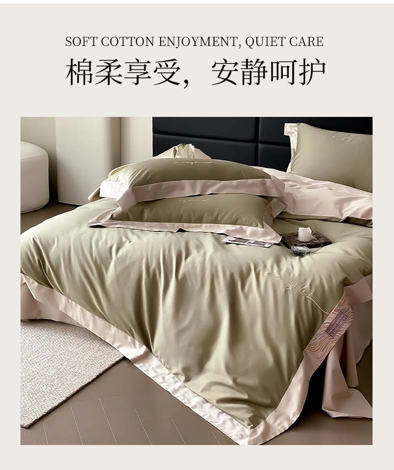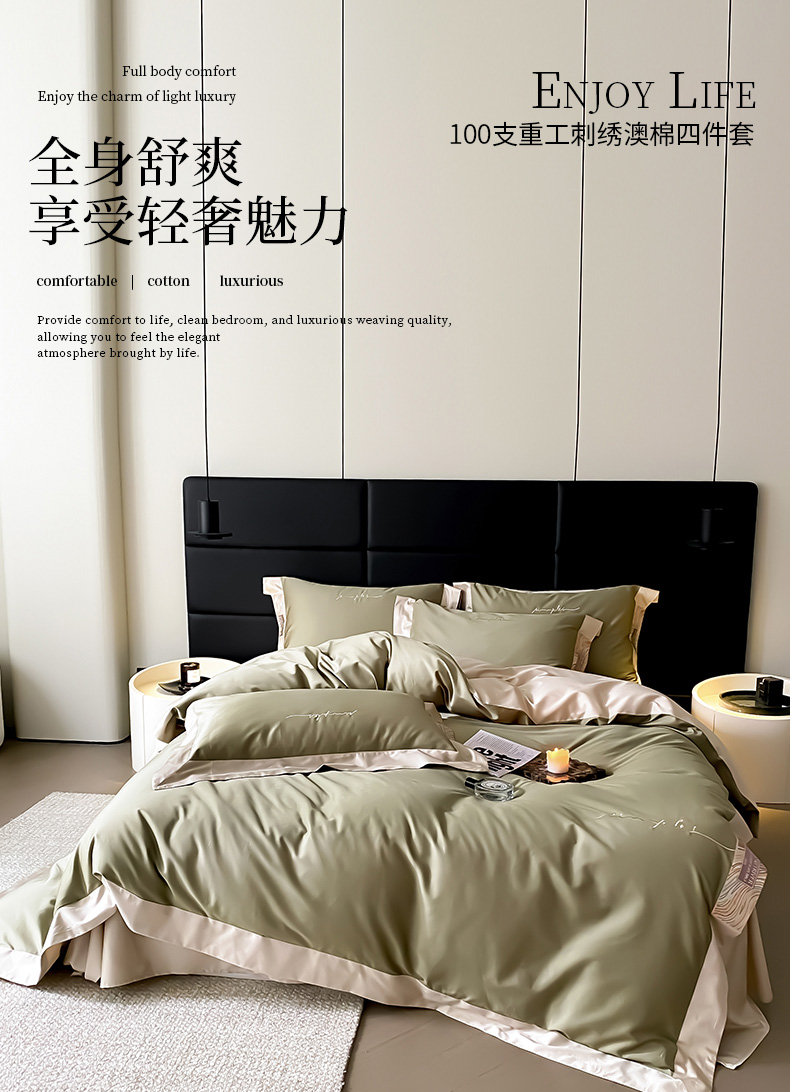 爱缦 2023新款极光系列100支澳棉四件套风格一 莫兰绿