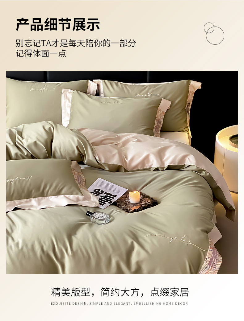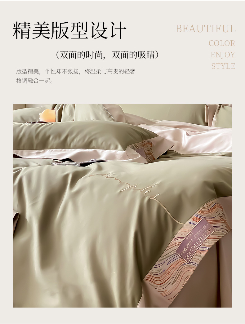 (总)爱缦 新款60支莱赛尔四件套-至真系列,蓝米驼,米白粉,浅紫,玉粉