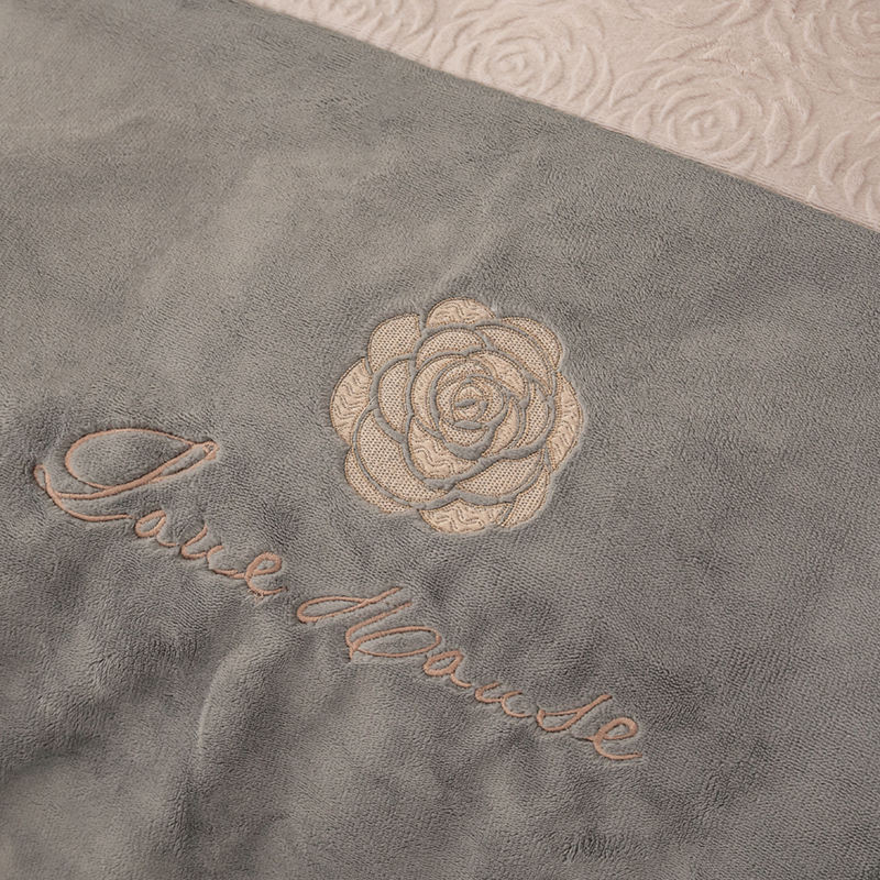 商品名称:好阁 2023新款法式刺绣小香风雕花双拼牛奶绒四件套 灰色+流沙灰
