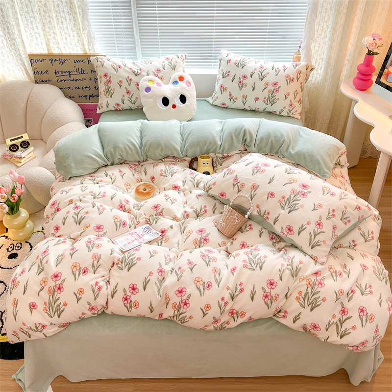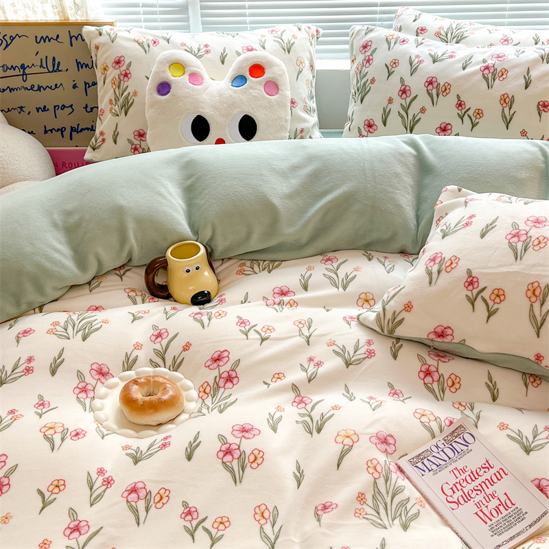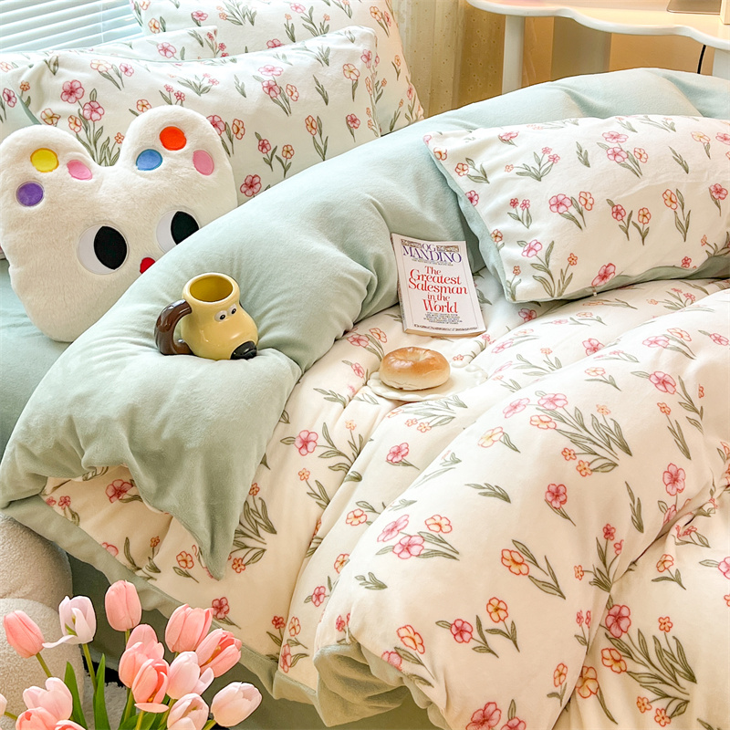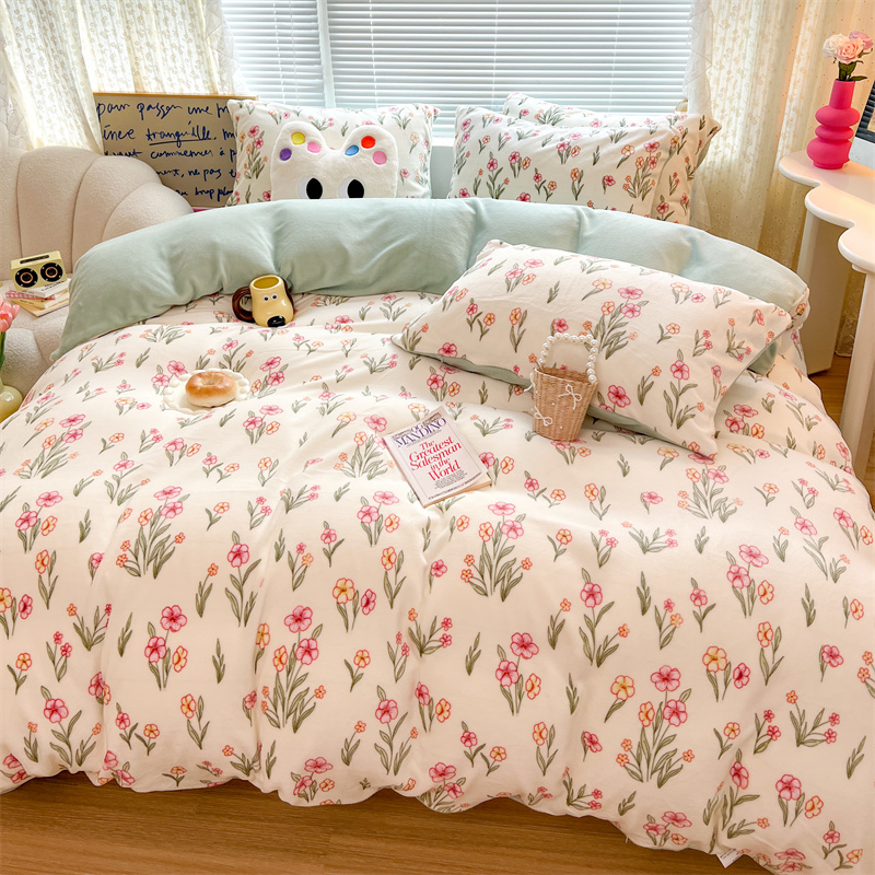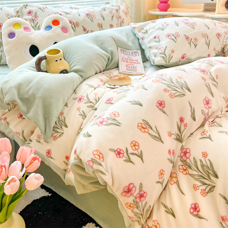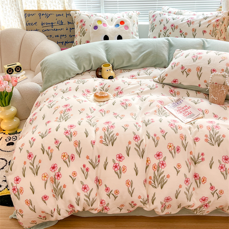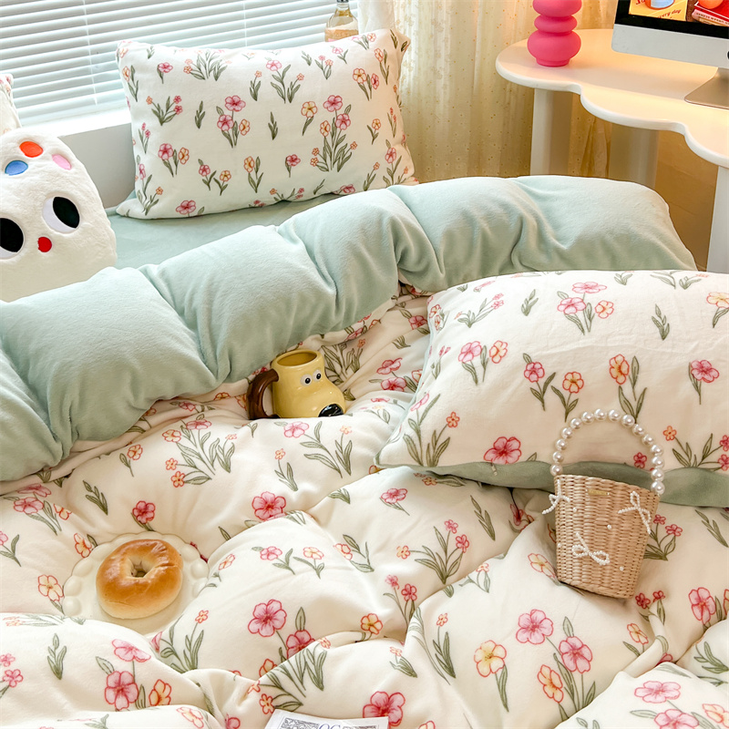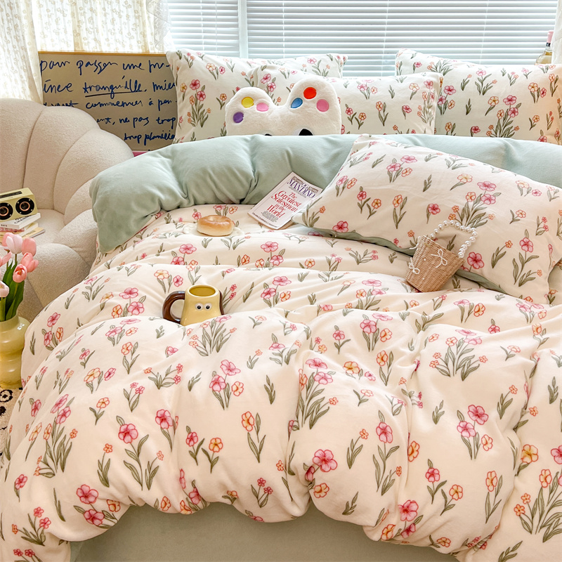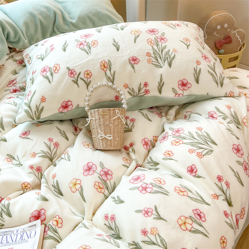 顾里家纺 新款ins少女保暖牛奶绒四件套第二批 花开绽放