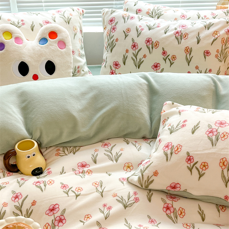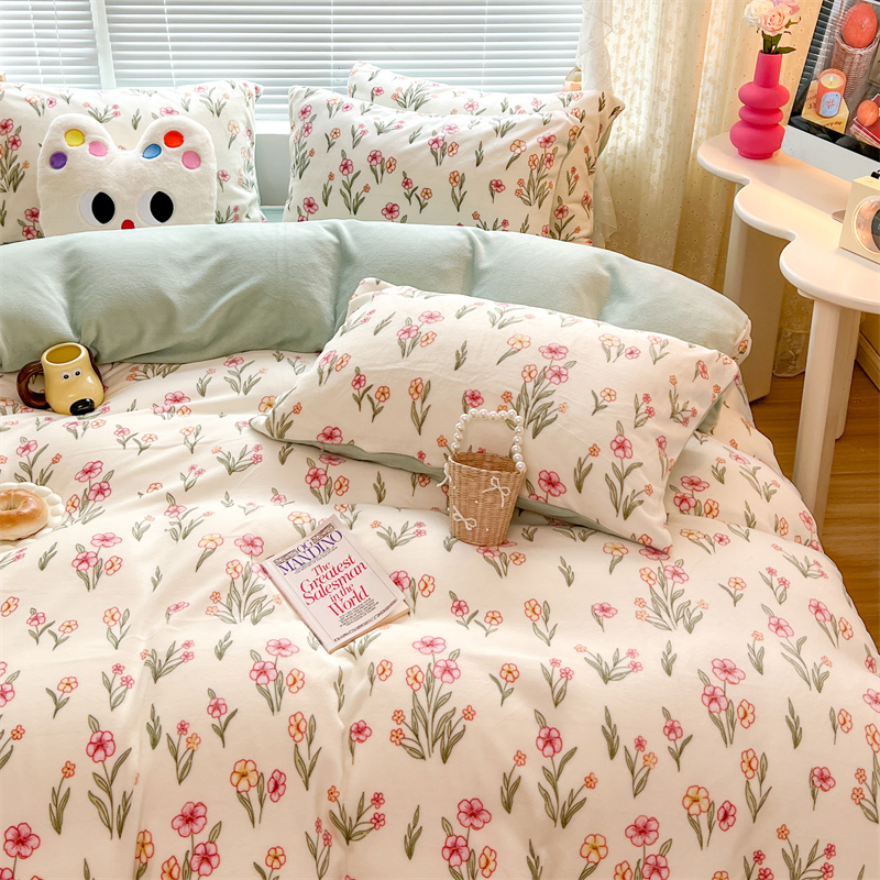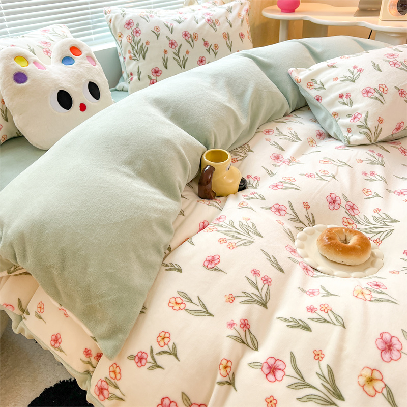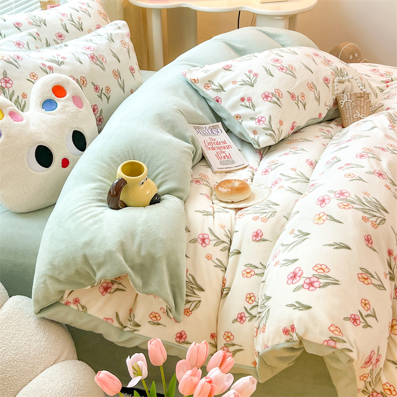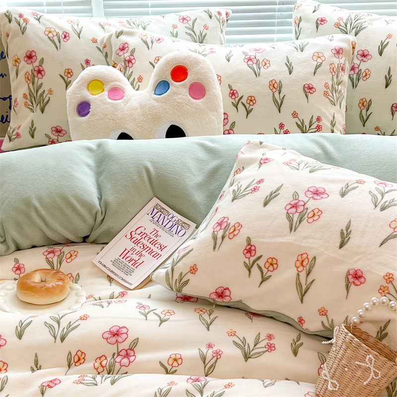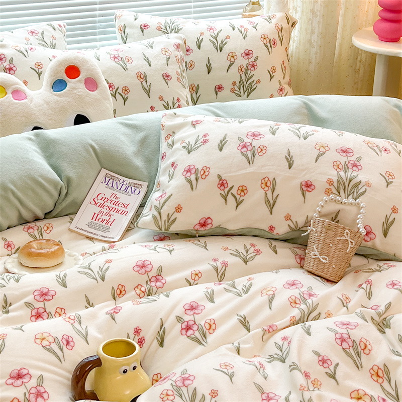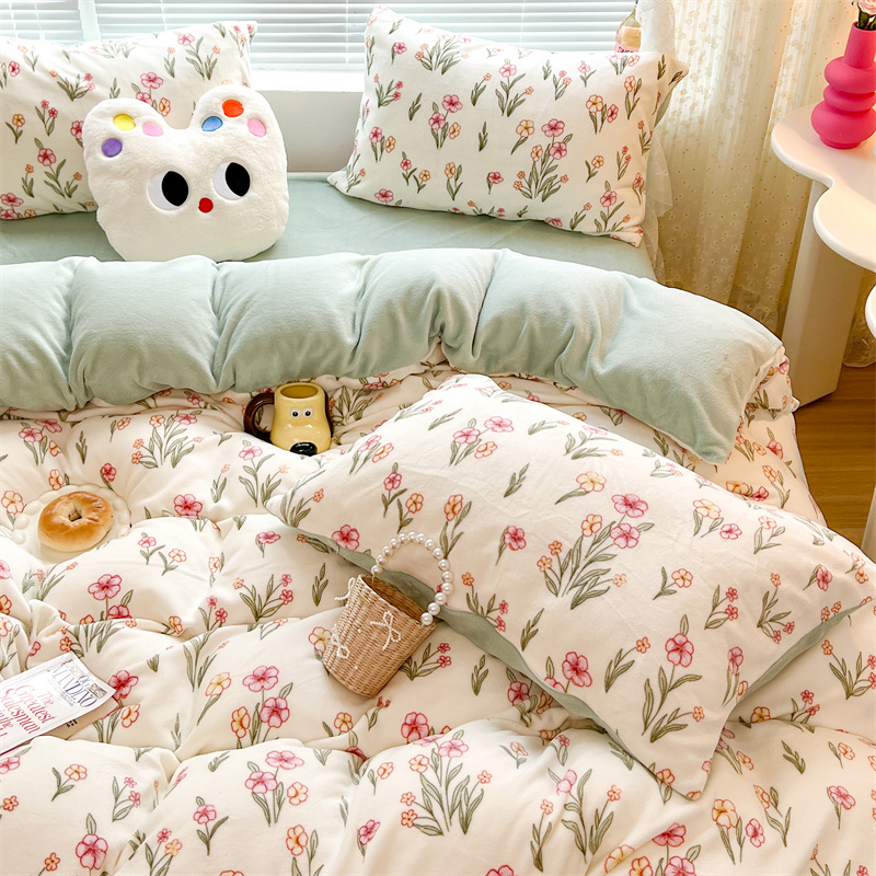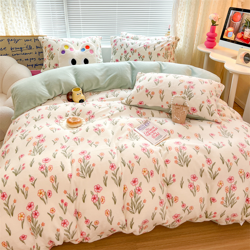 顾里家纺 新款ins少女保暖牛奶绒四件套第二批 花开绽放
