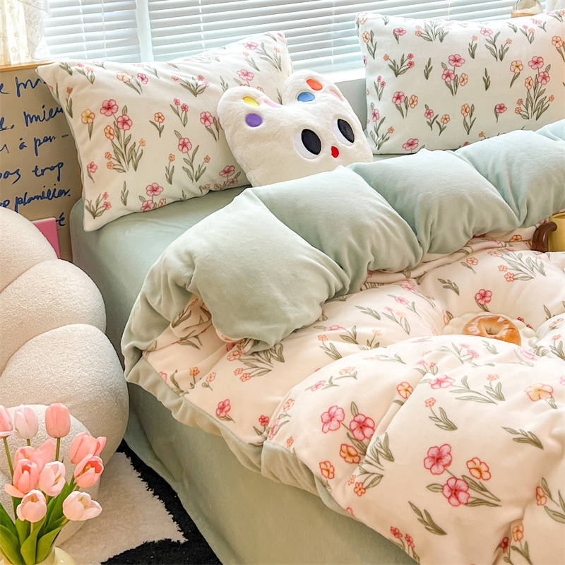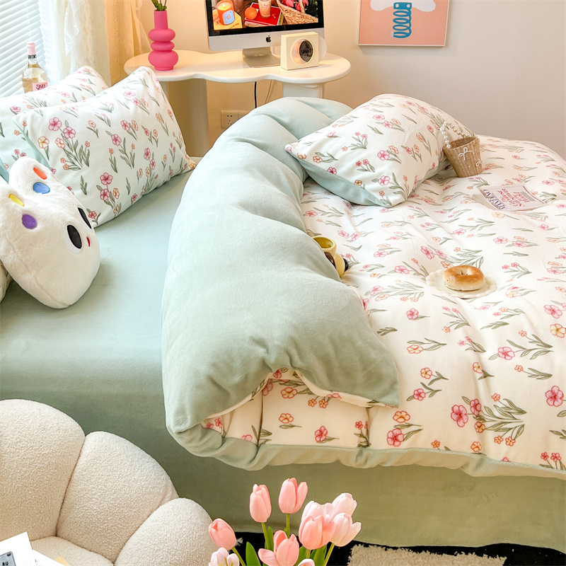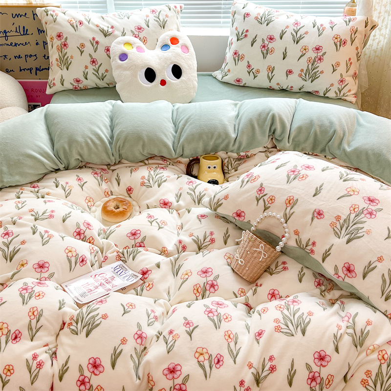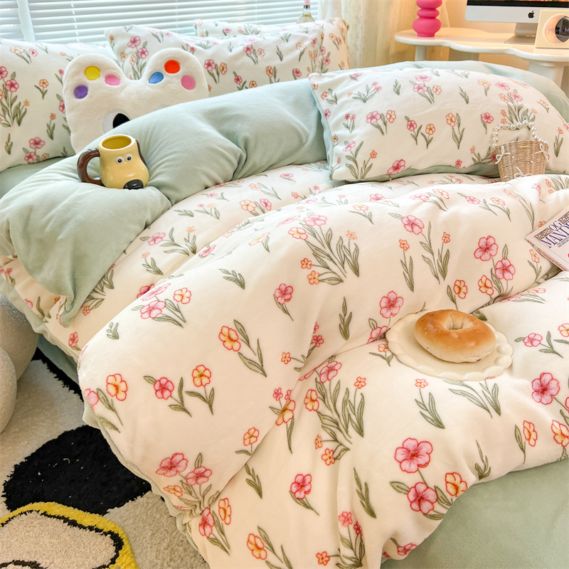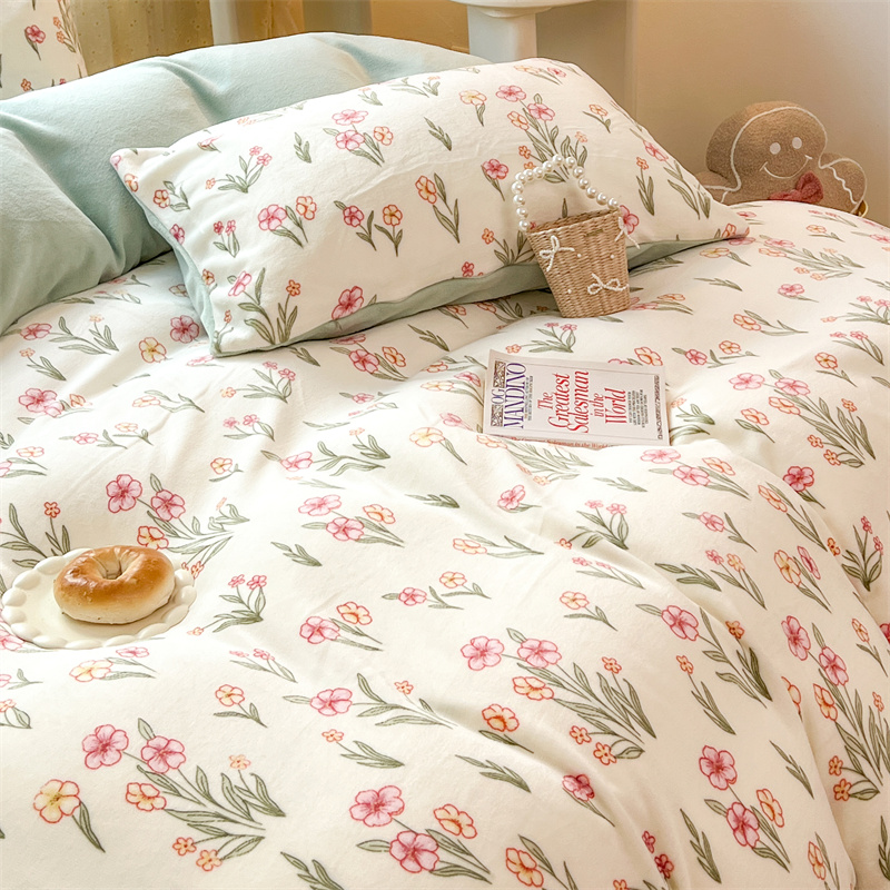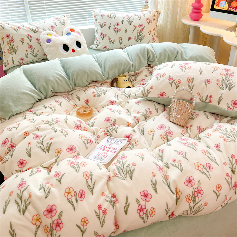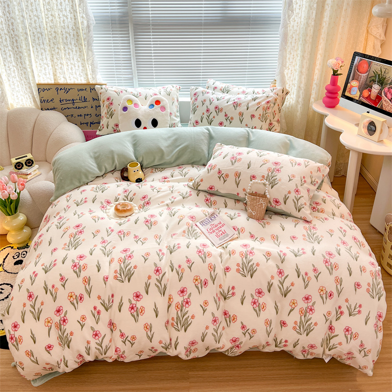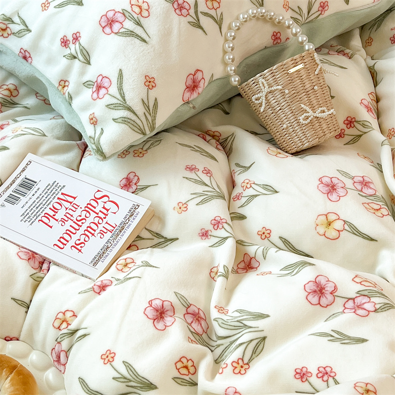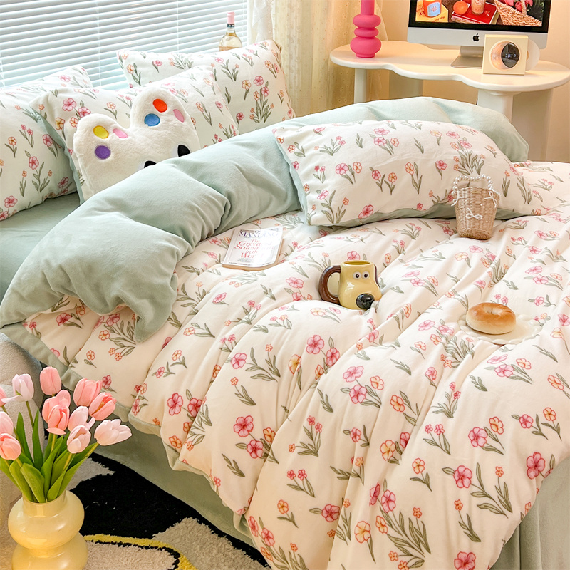 顾里家纺 新款ins少女保暖牛奶绒四件套第二批 花开绽放