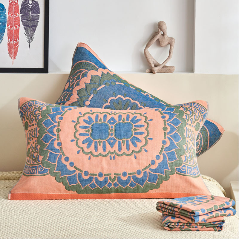 朴尔 2023年民族风彩棉系列四层纱布枕巾 大丽花橘