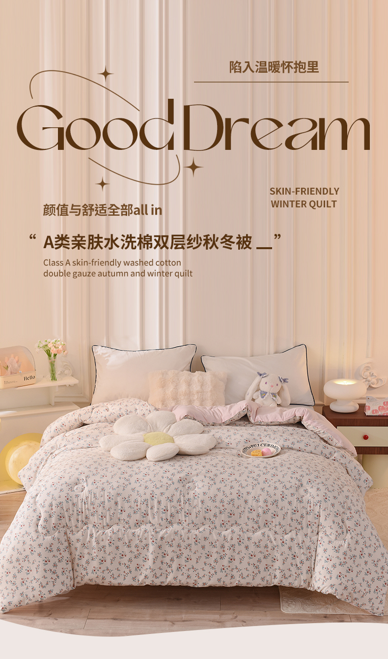• 91家纺网 家纺一手货源 找家纺 妖妖家纺 2023妖妖超柔水洗双层纱冬被 蜜苑