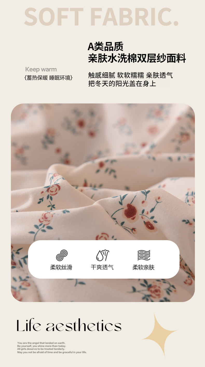 妖妖家纺 2023妖妖超柔水洗双层纱冬被 蜜苑