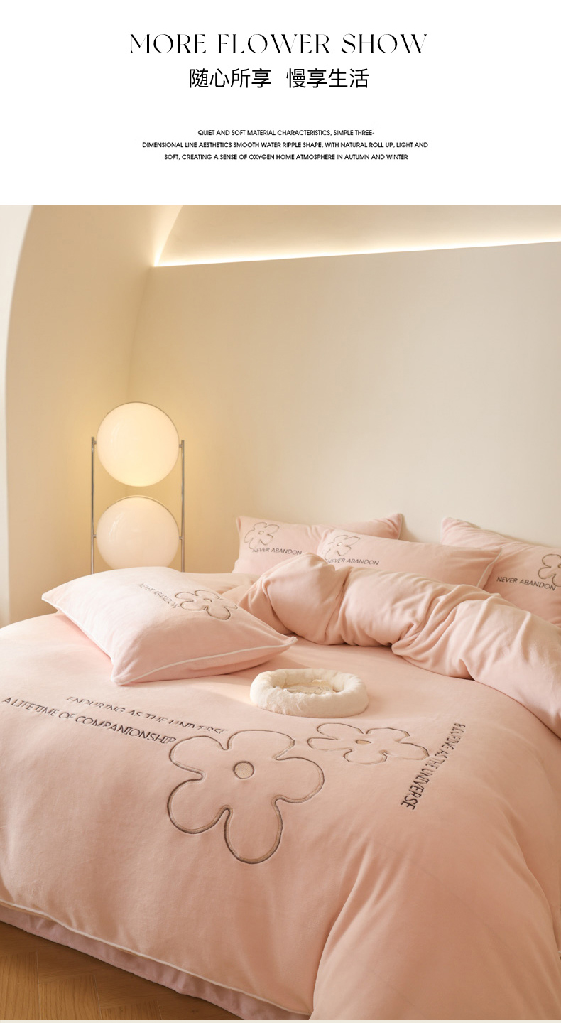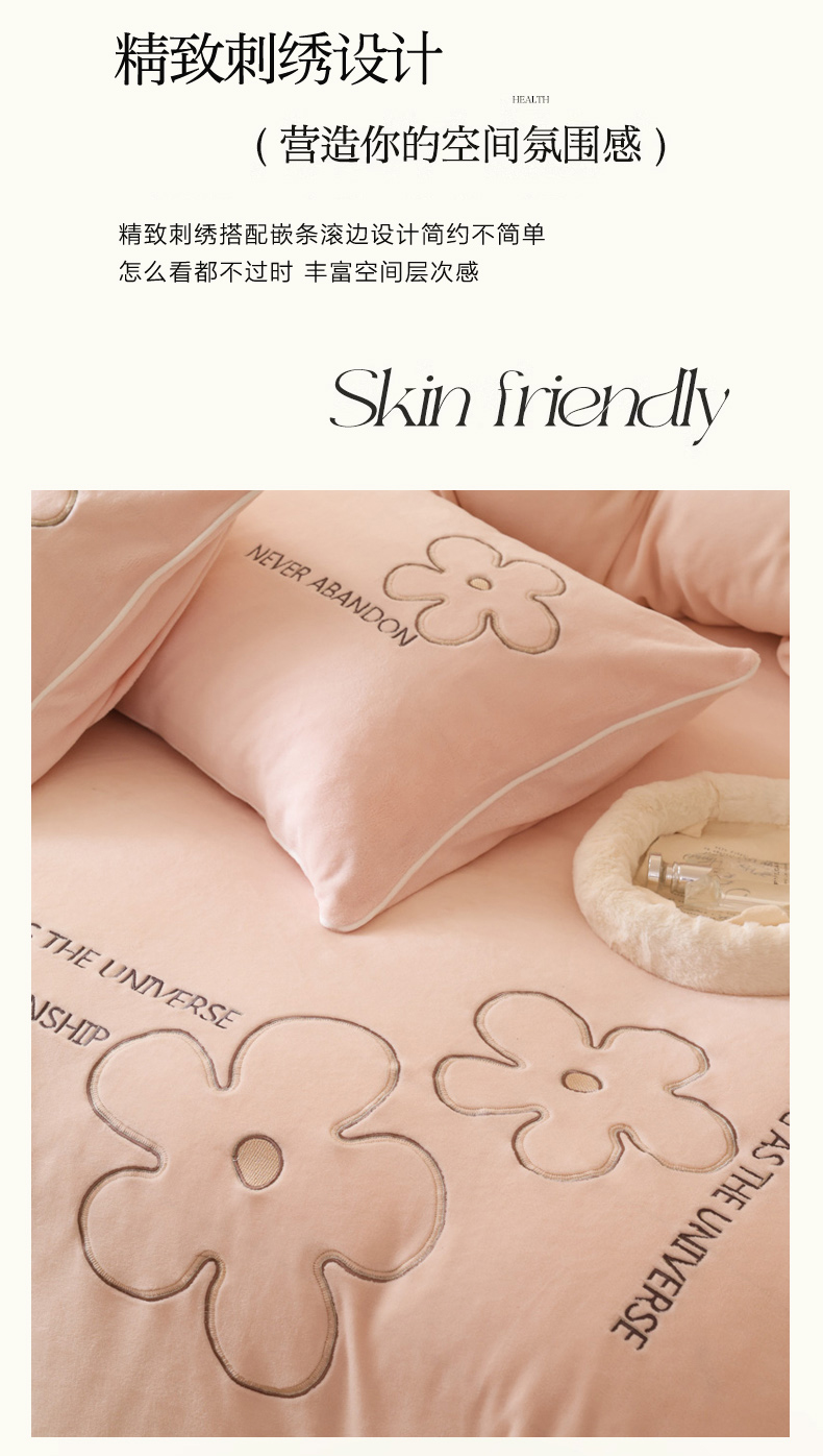 商品名称:万盛家纺 2025新款牛奶绒简约绣花四件套 悠悠粉