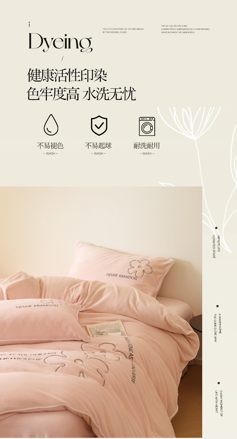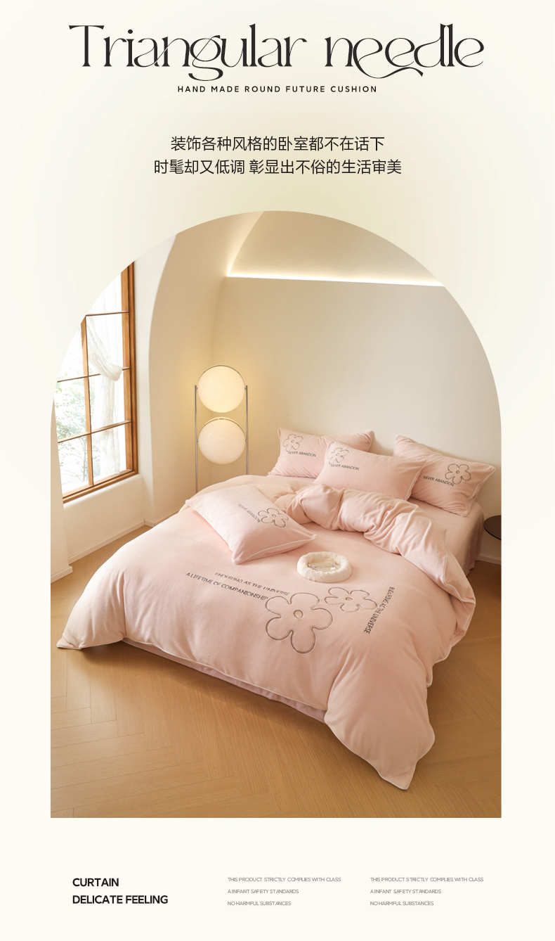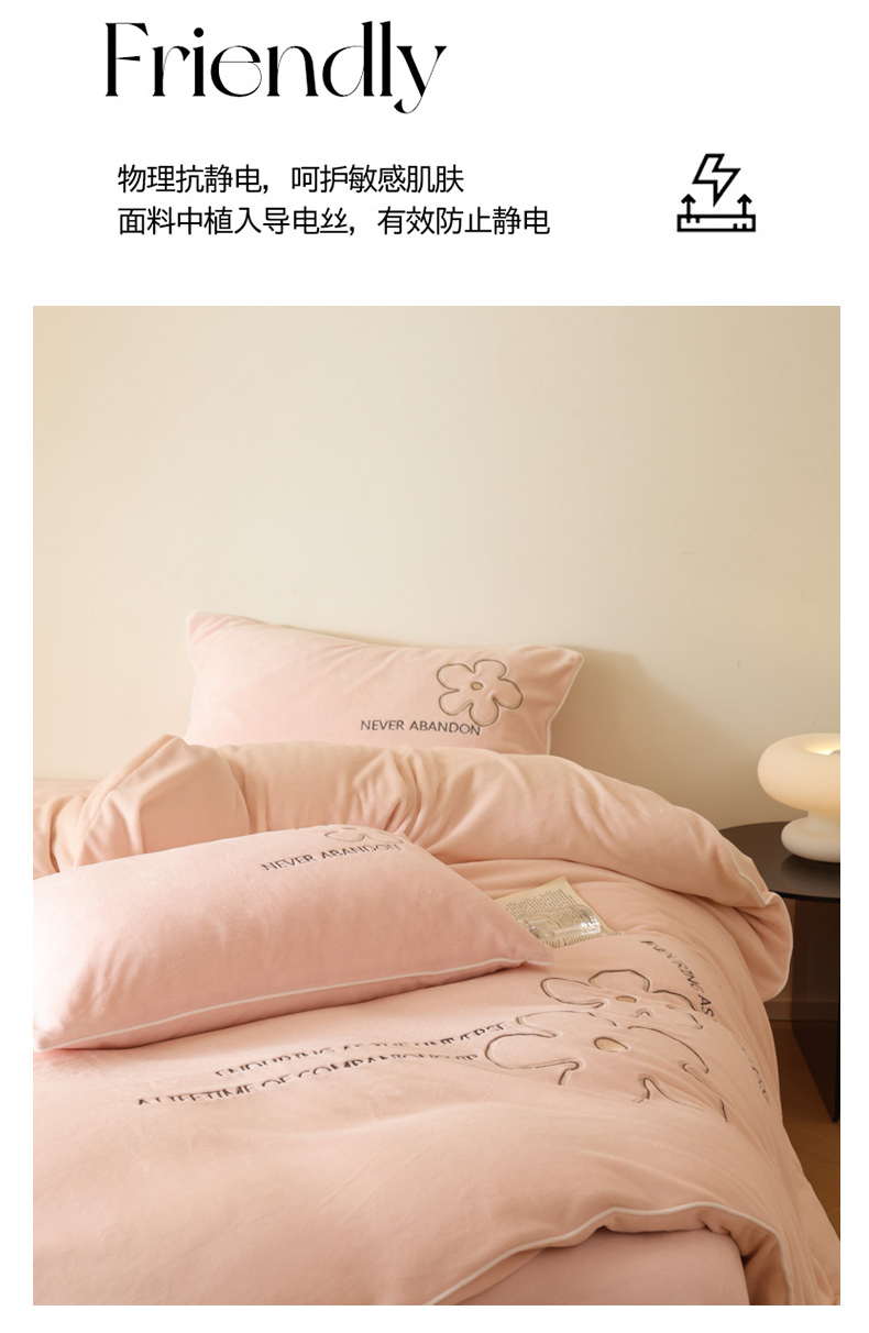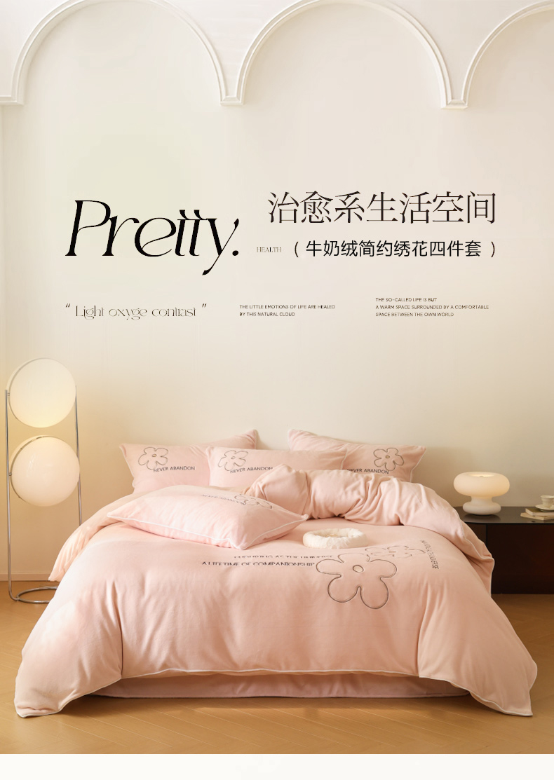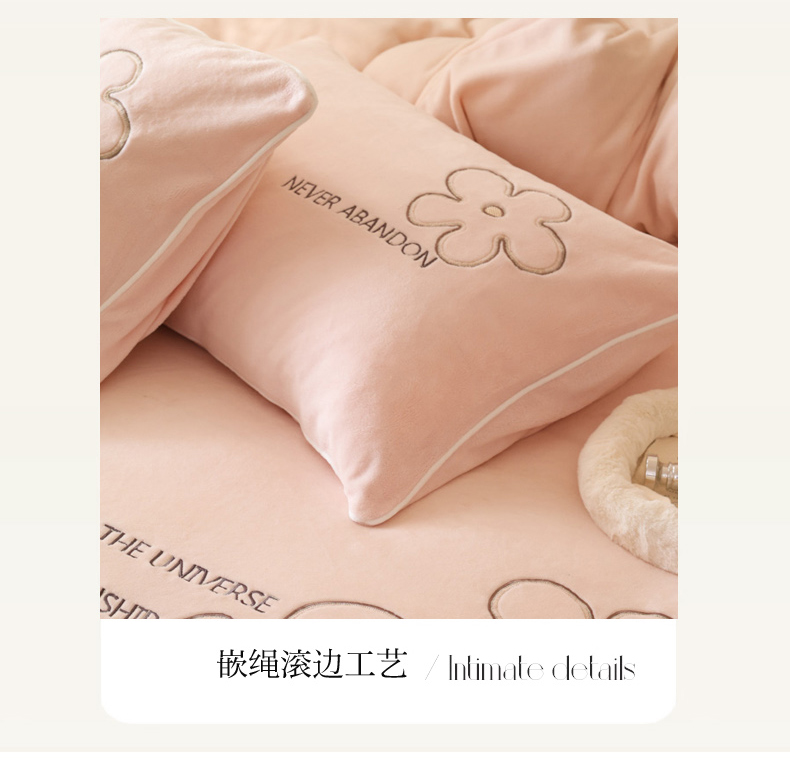 万盛家纺 2025新款牛奶绒简约绣花四件套 悠悠粉