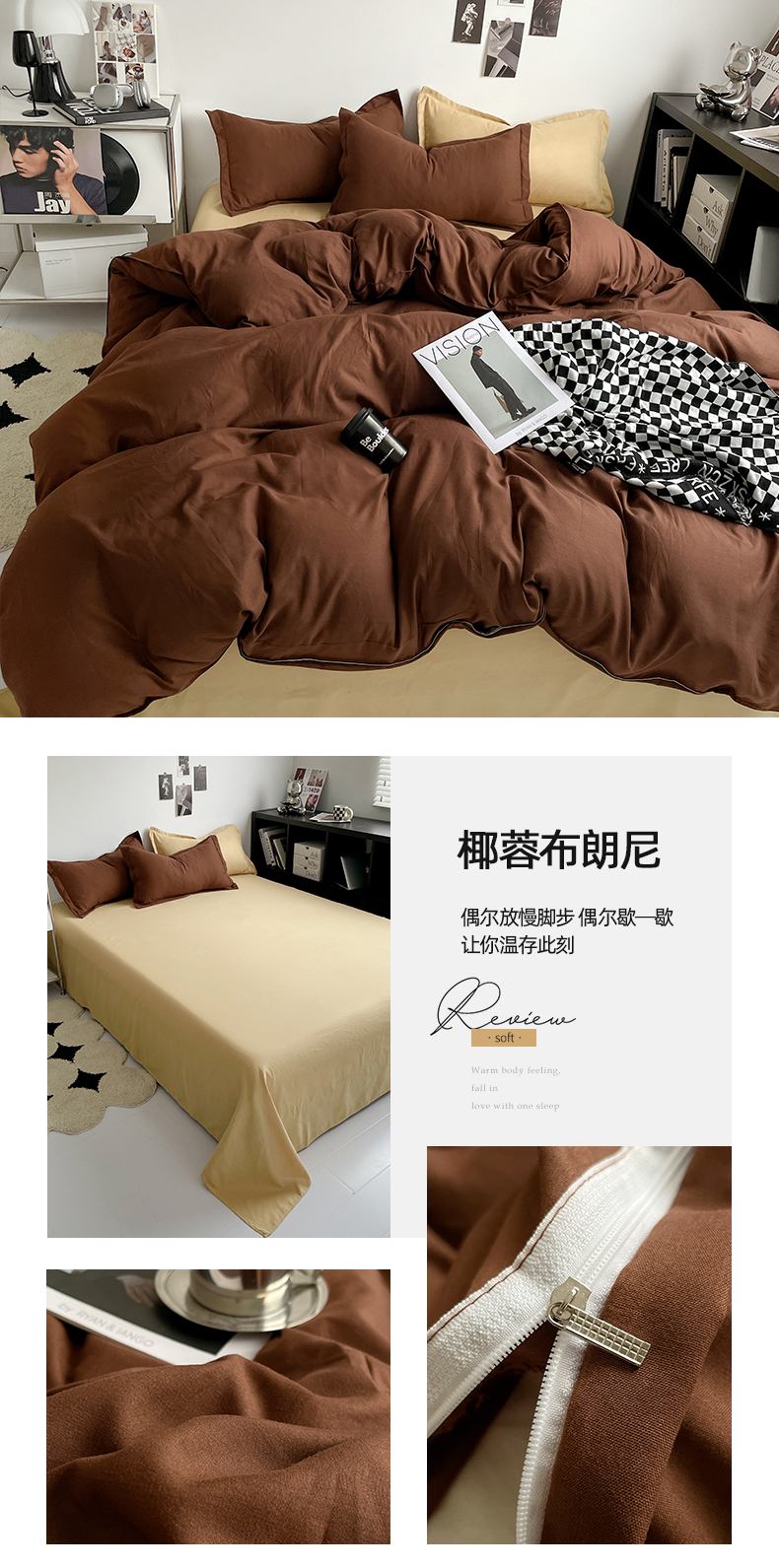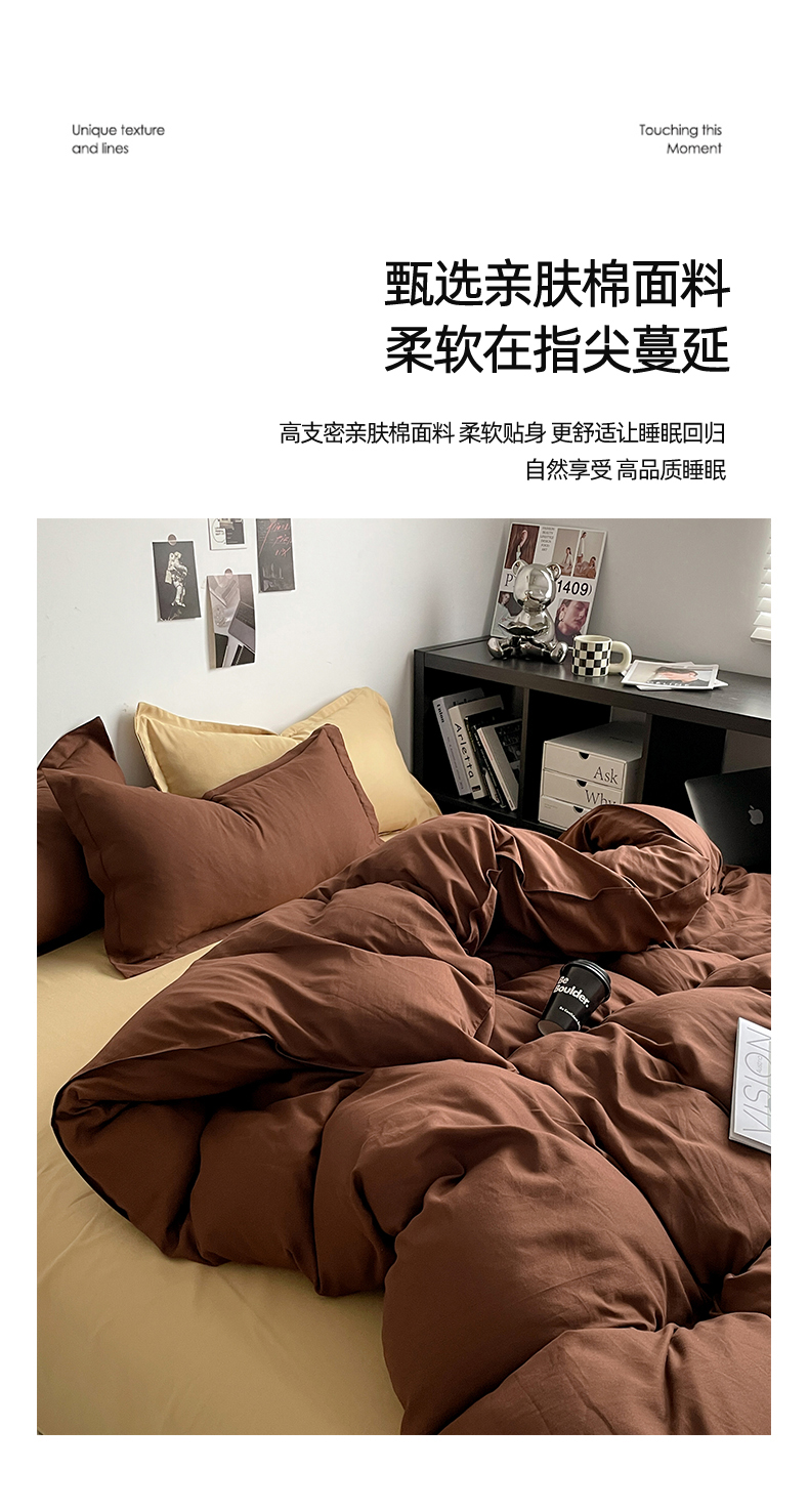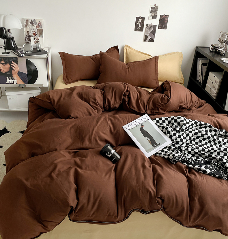 当前位置: 91家纺网 > 商品网购 > 床品套件 > 四件套 > 贝拉梦2023新款个性撞色混搭亲肤棉四件套 椰蓉布朗尼