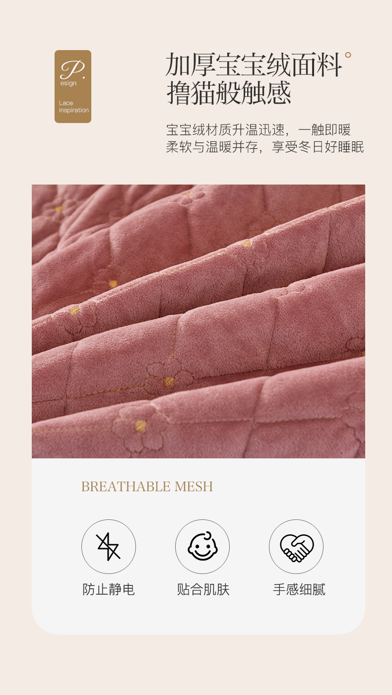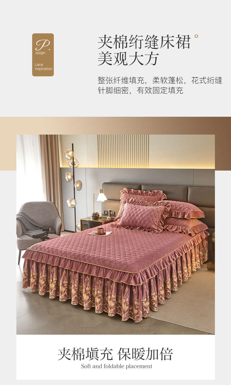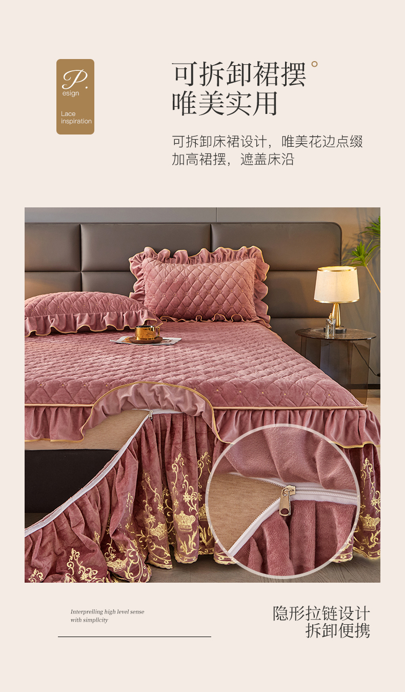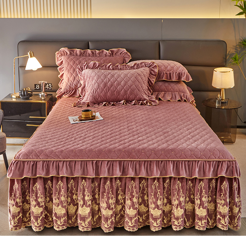 当前位置: 91家纺网 > 商品网购 > 床品套件 > 四件套 > 宝宝绒四件套 > 罗艺轩 2024新款欧洲风情宝宝绒可拆卸夹棉床裙四件套 豆沙粉
