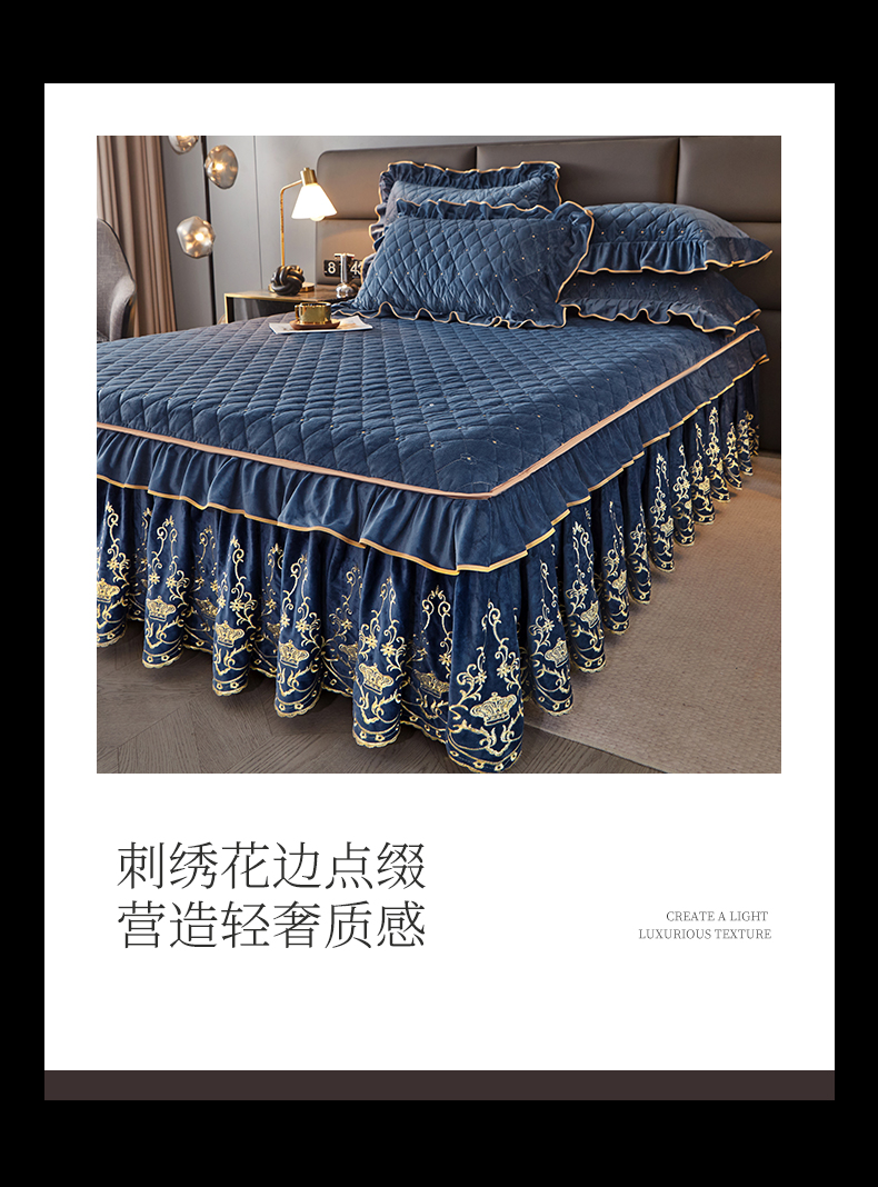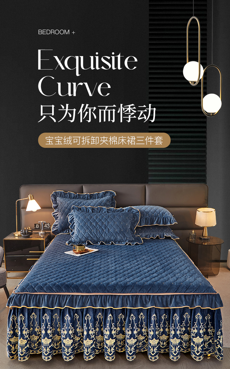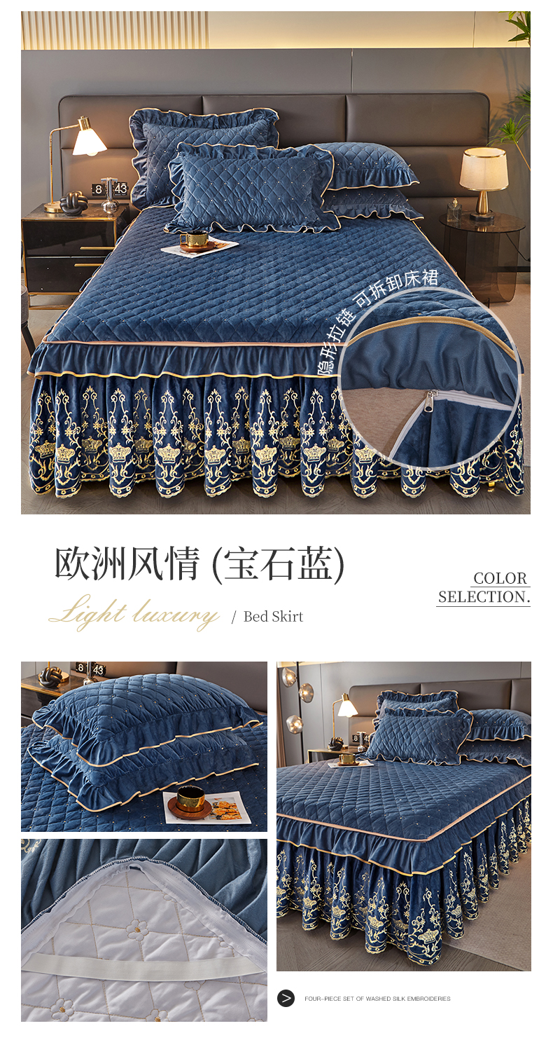 当前位置: 91家纺网 > 商品网购 > 床品套件 > 三件套 > 罗艺轩 2024新款欧洲风情宝宝绒可拆卸夹棉床裙三件套 宝石蓝