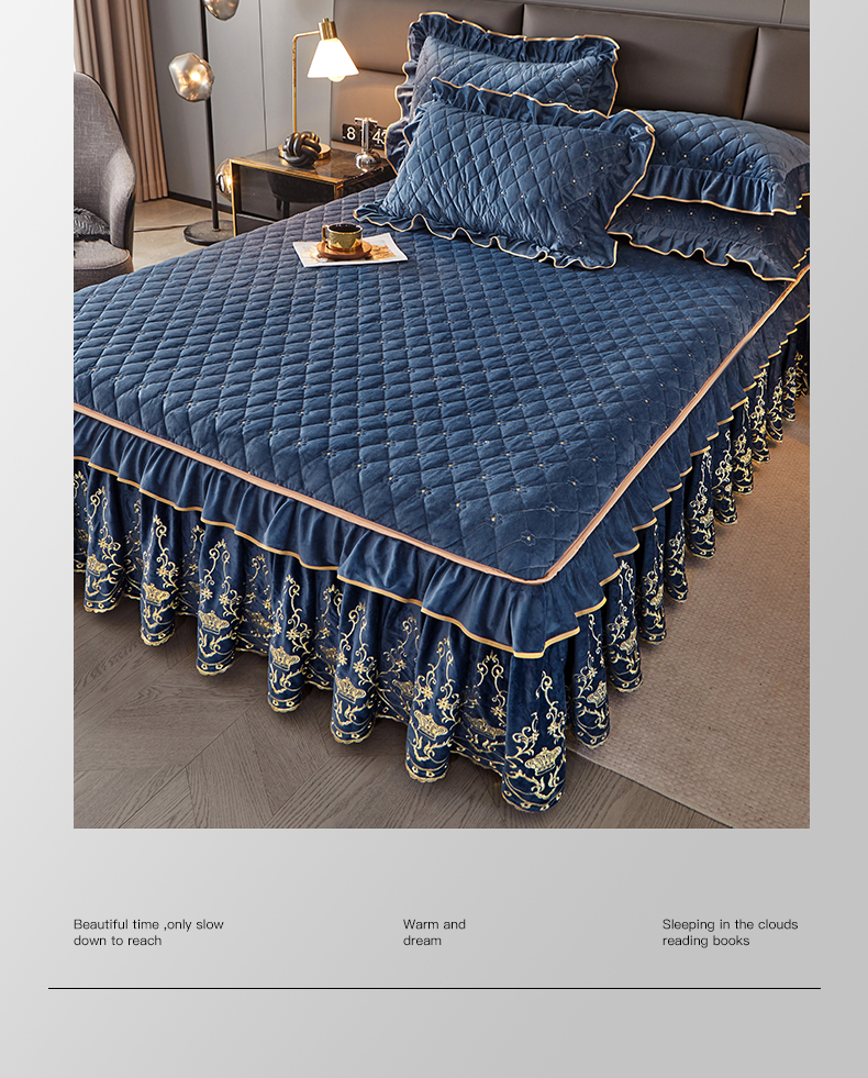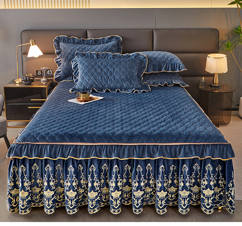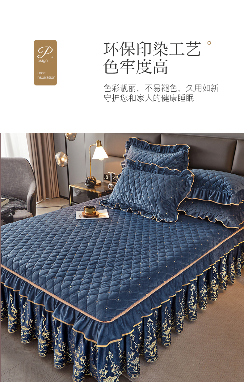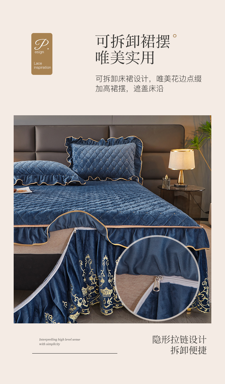 当前位置: 91家纺网 > 商品网购 > 床品套件 > 三件套 > 罗艺轩 2024新款欧洲风情宝宝绒可拆卸夹棉床裙三件套 宝石蓝