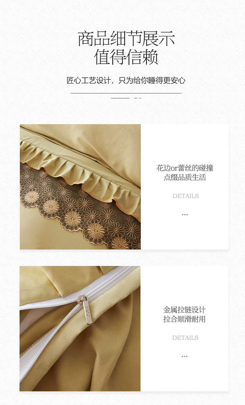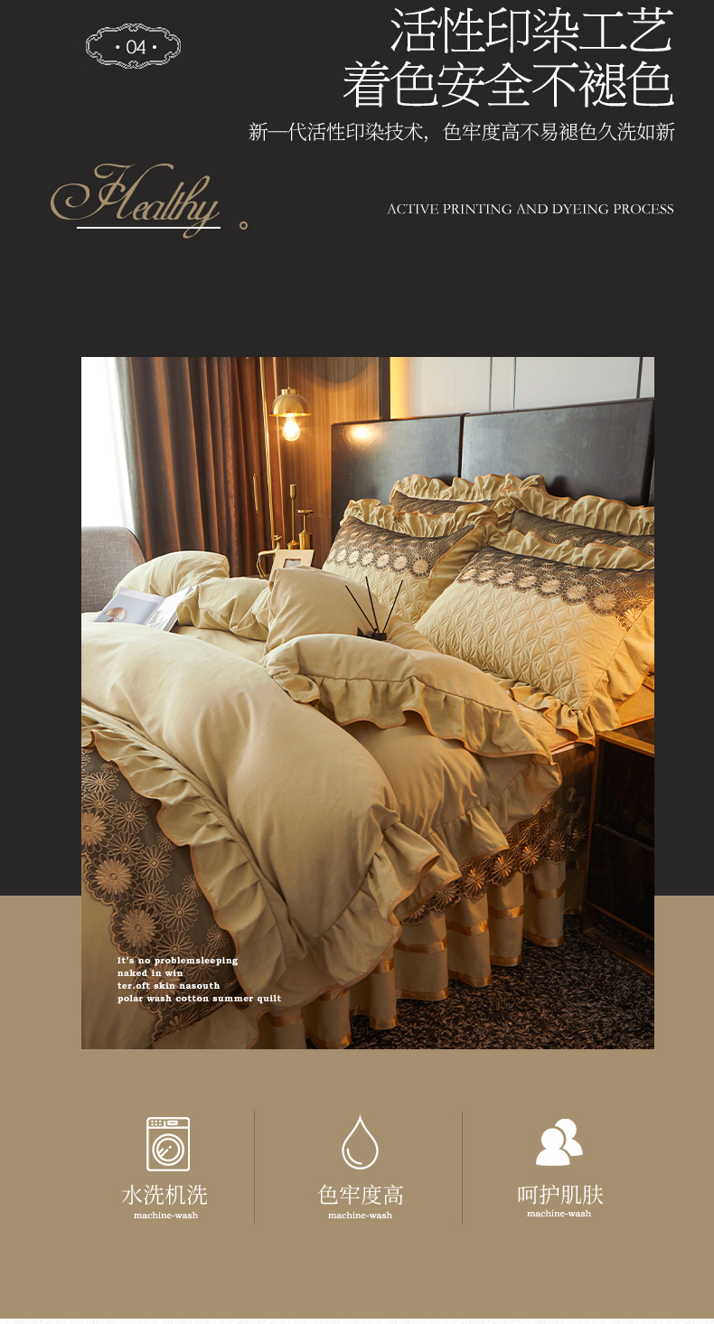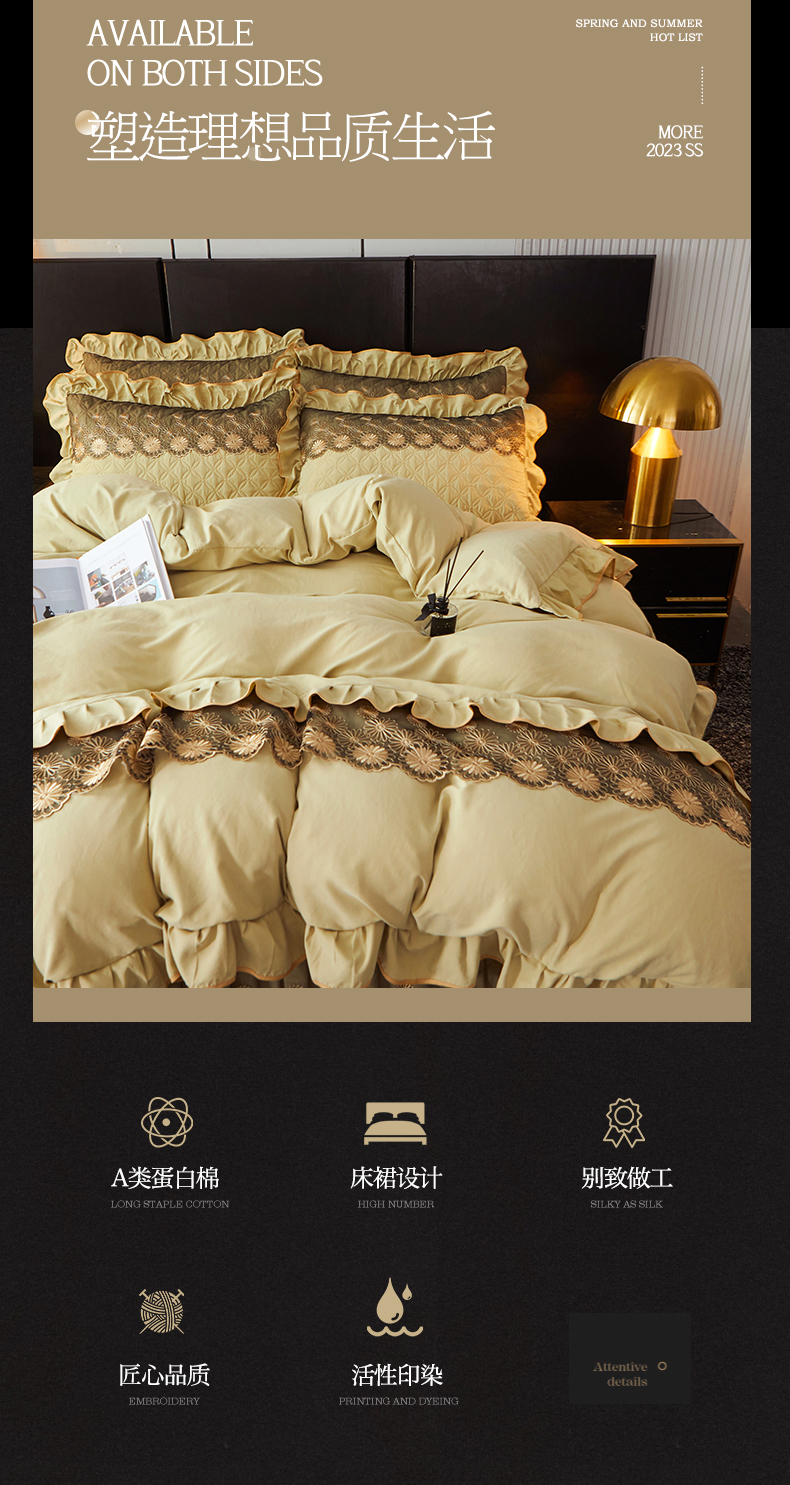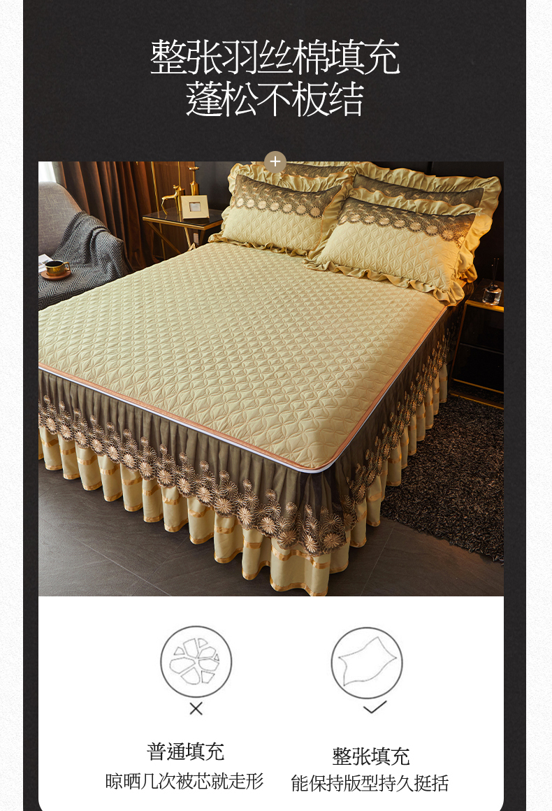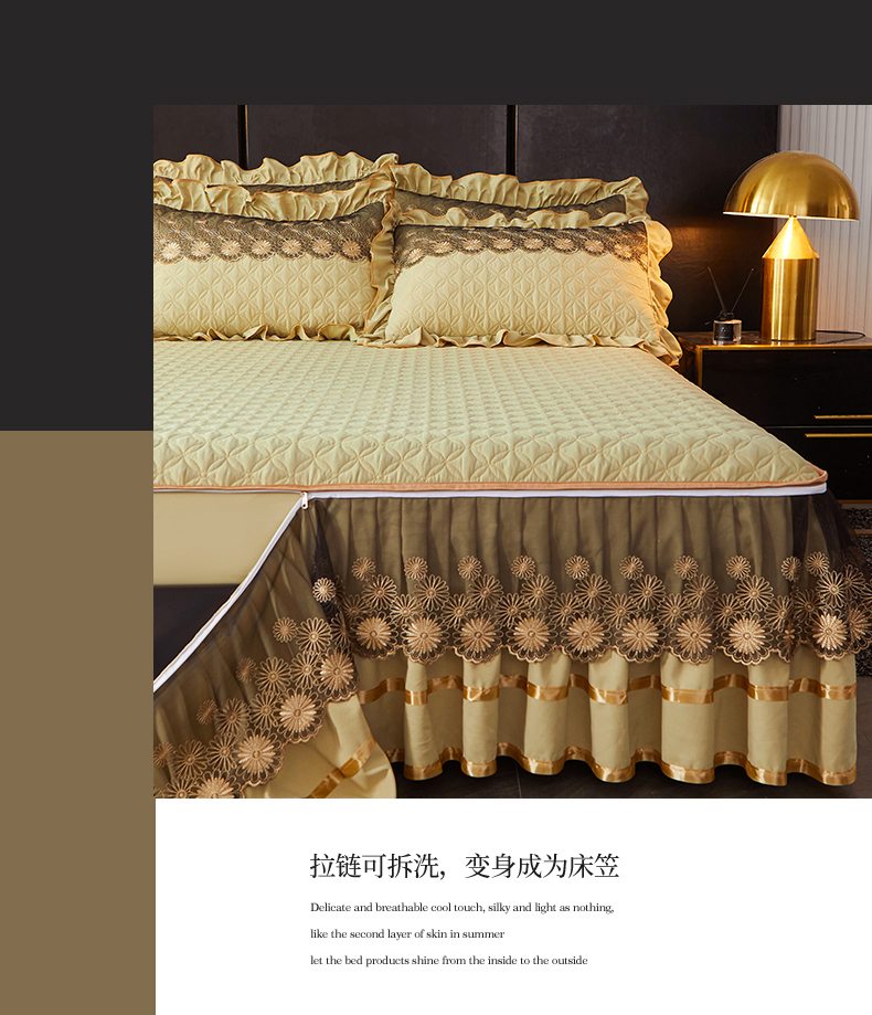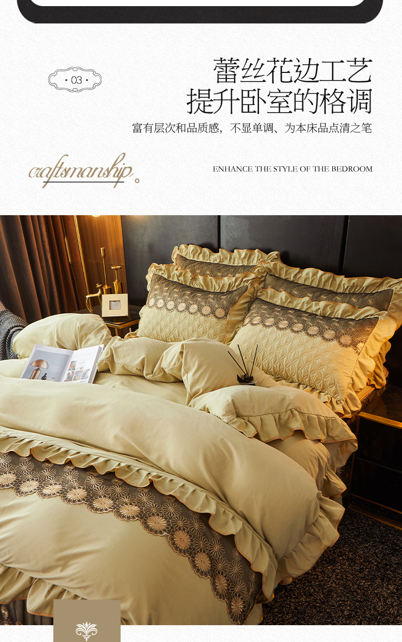 当前位置: 91家纺网 > 商品网购 > 床品套件 > 四件套 > 化纤普通四件套 > 罗艺轩 2024新款A类蛋白棉夹棉床裙四件套-品味人生 品味人生-黄绿