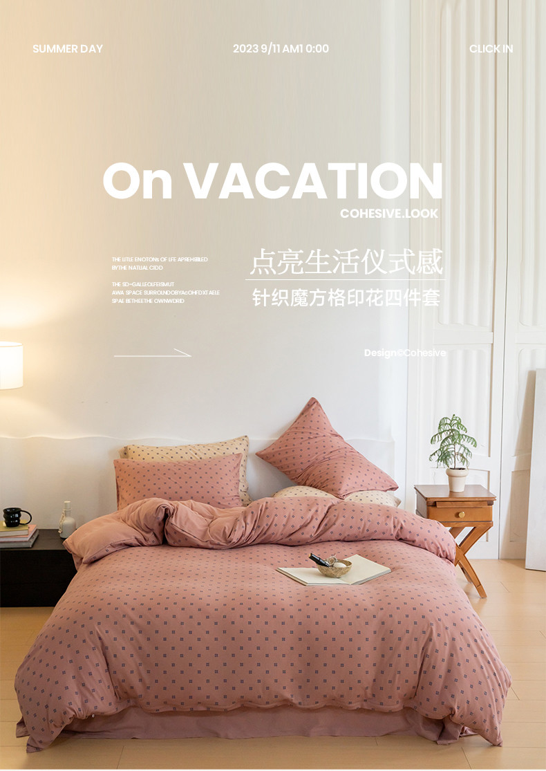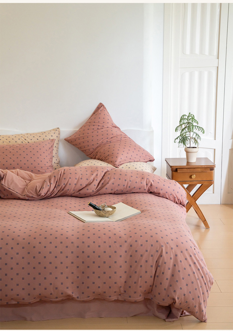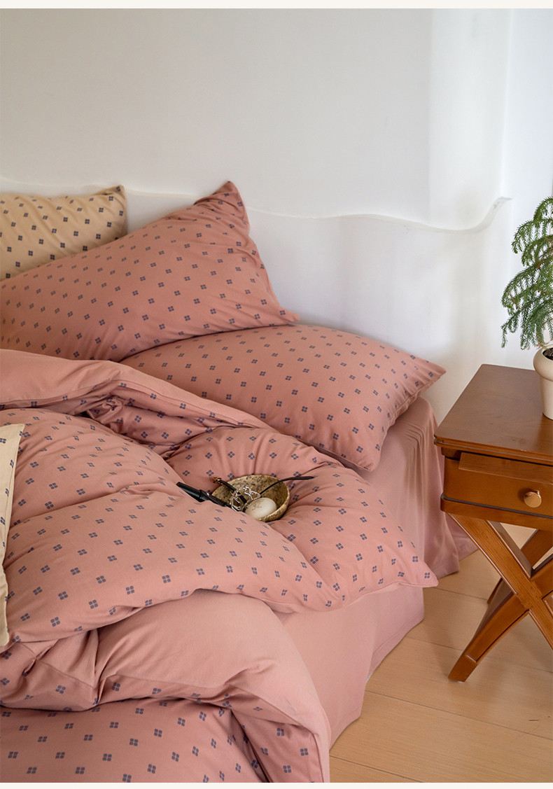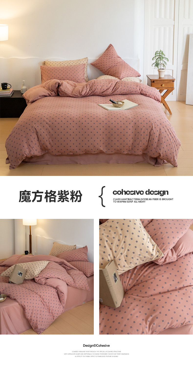 当前位置: 91家纺网 > 商品网购 > 床品套件 > 四件套 > 针织棉四件套 > 华超针织 2023新款针织棉魔方格印花四件套 魔方格紫粉