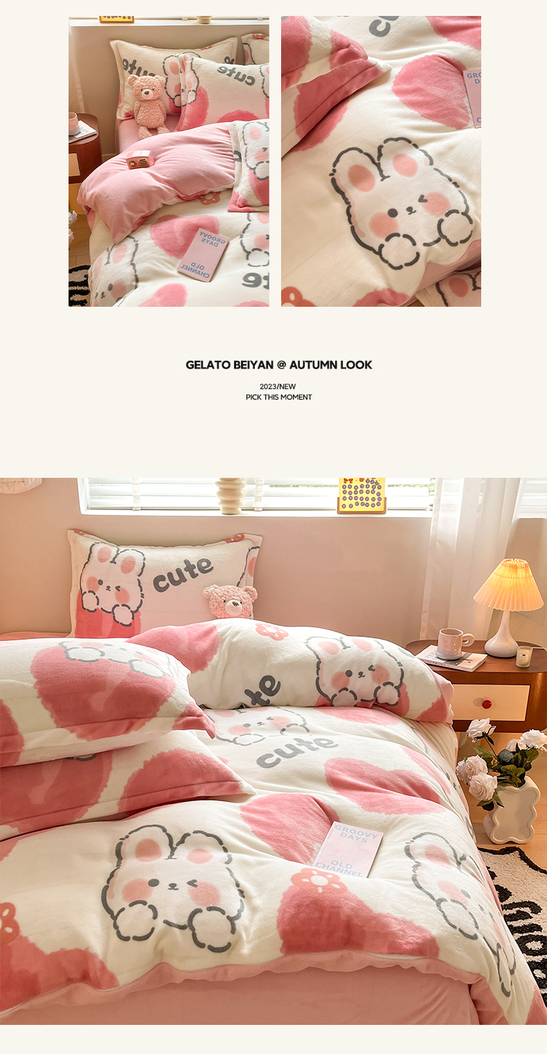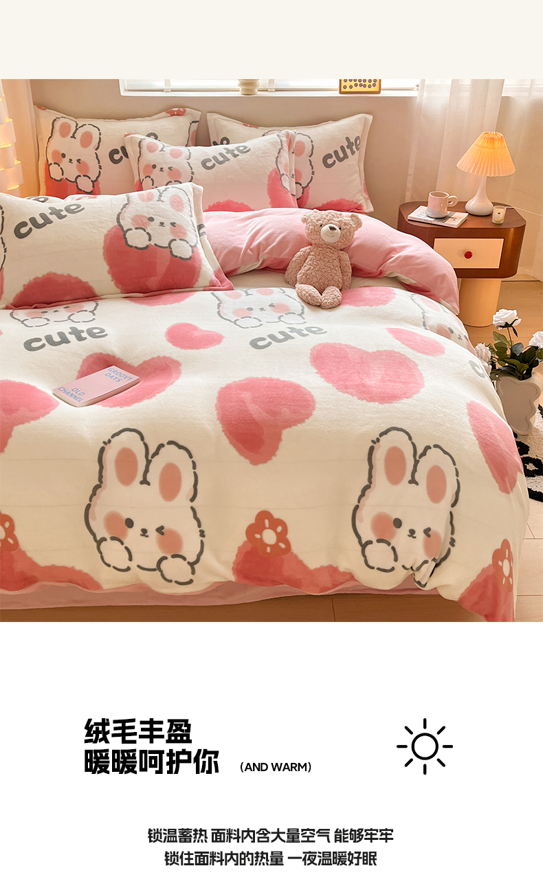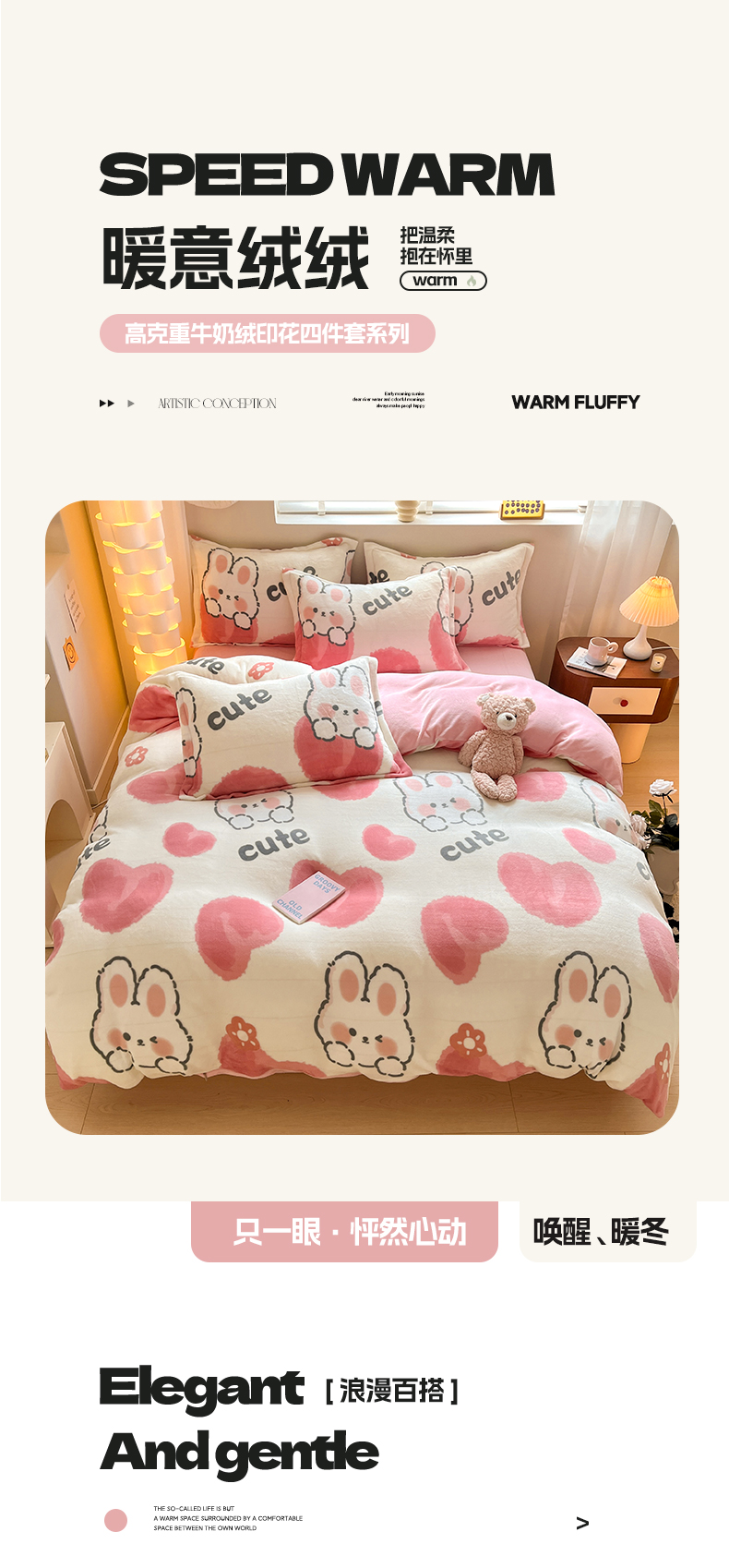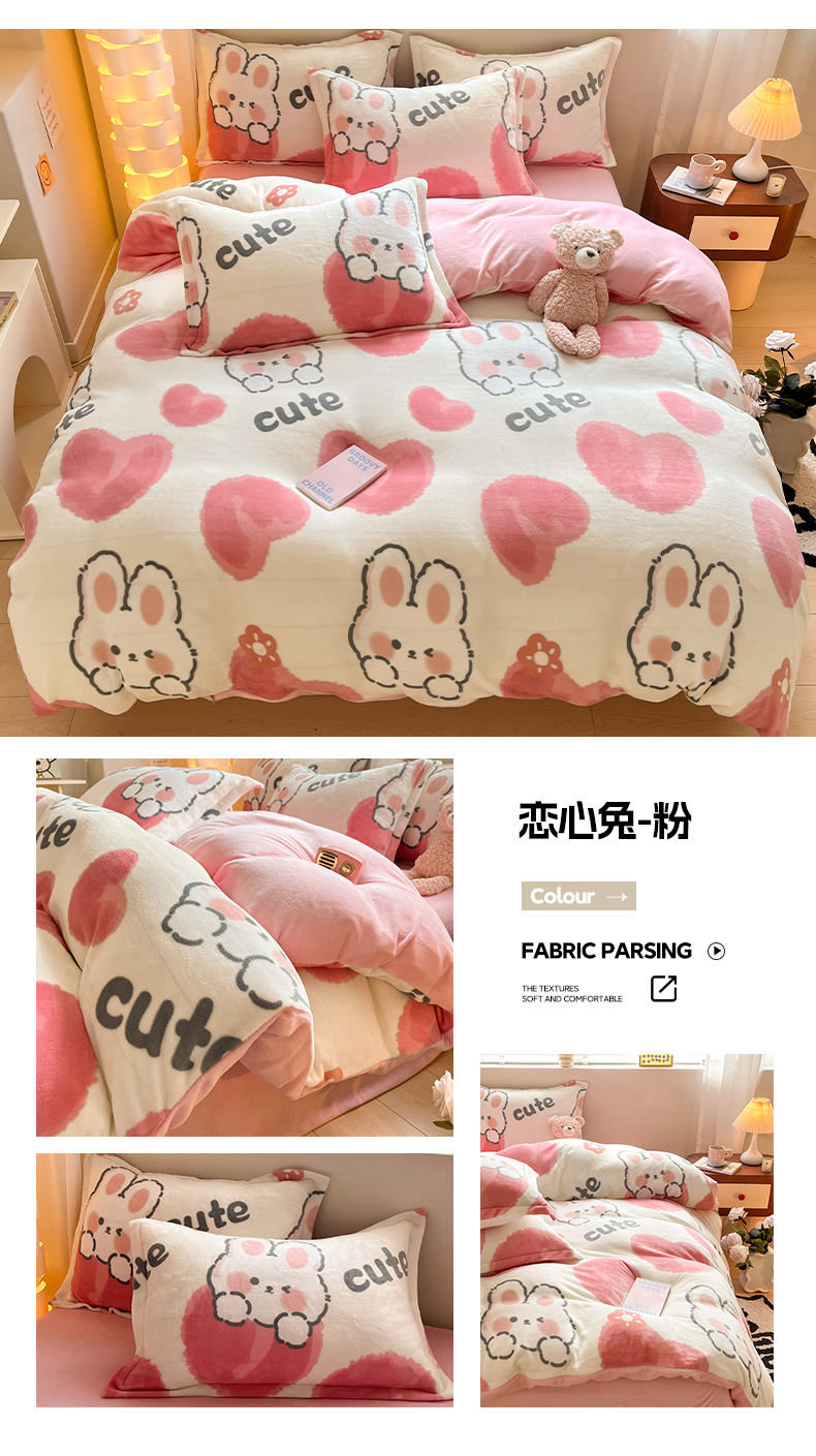 当前位置: 91家纺网 > 商品网购 > 床品套件 > 四件套 > 牛奶绒四件套 > 逸尚阁 2024新款高克重牛奶绒印花四件套(包含买家秀) 恋心兔-粉