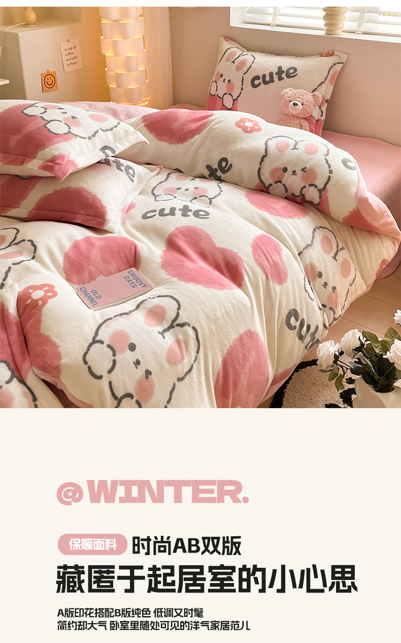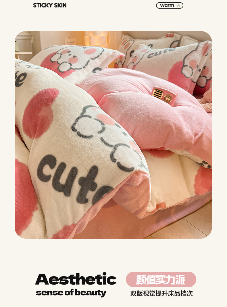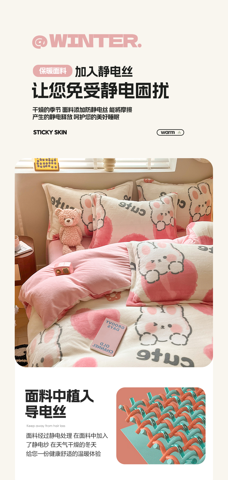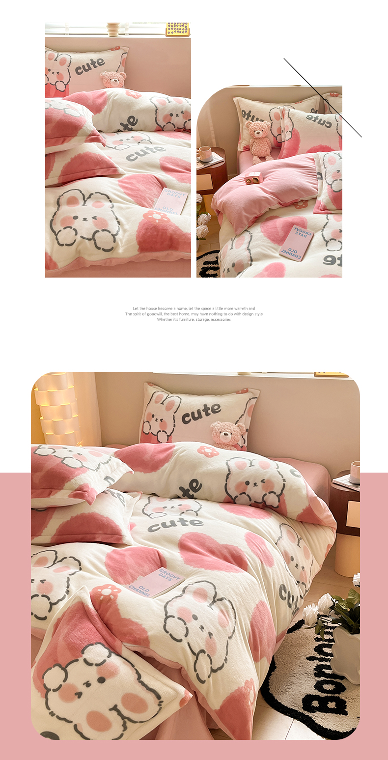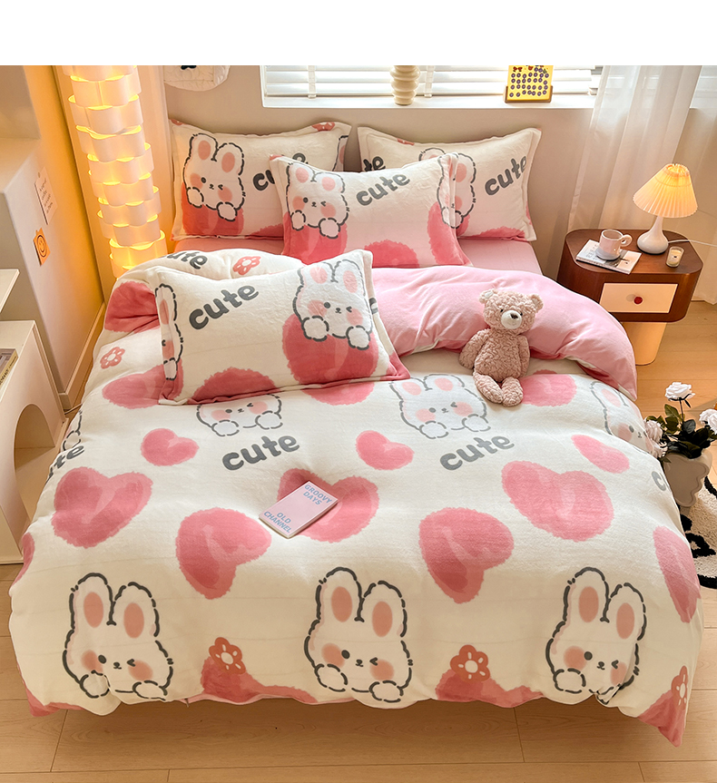 当前位置: 91家纺网 > 商品网购 > 床品套件 > 四件套 > 牛奶绒四件套 > 逸尚阁 2024新款高克重牛奶绒印花四件套(包含买家秀) 恋心兔-粉