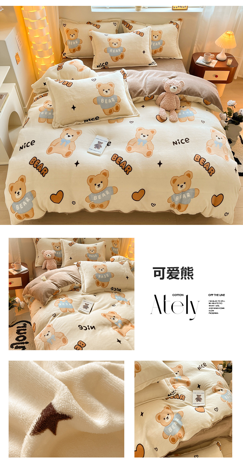 商品名称:逸尚阁 2024新款高克重牛奶绒印花单被套(包含买家秀) 可爱熊