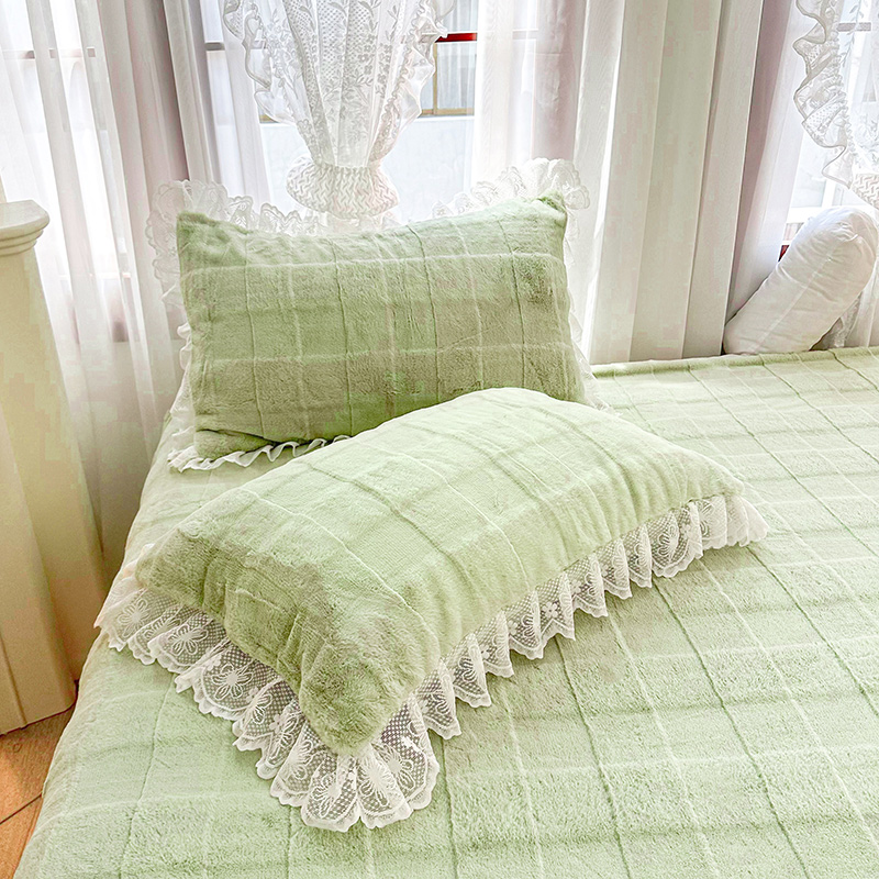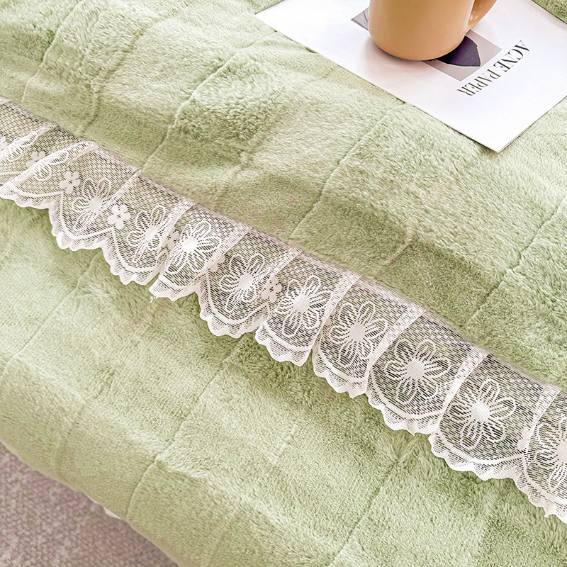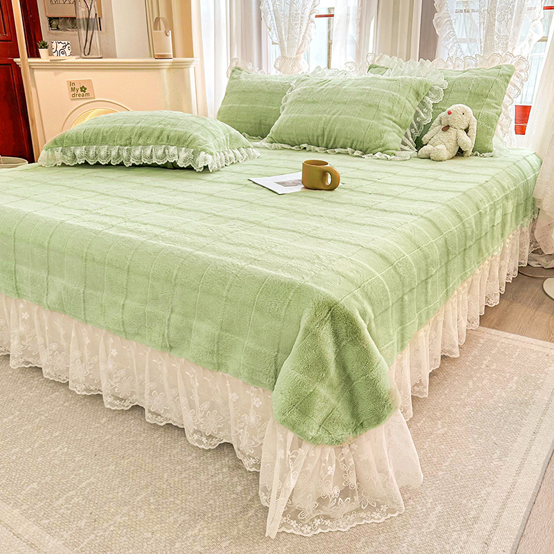 商品名称:宜凡家纺 2023新款宜凡-高克重兔绒牛奶绒床盖三件套 方格纹-抹茶