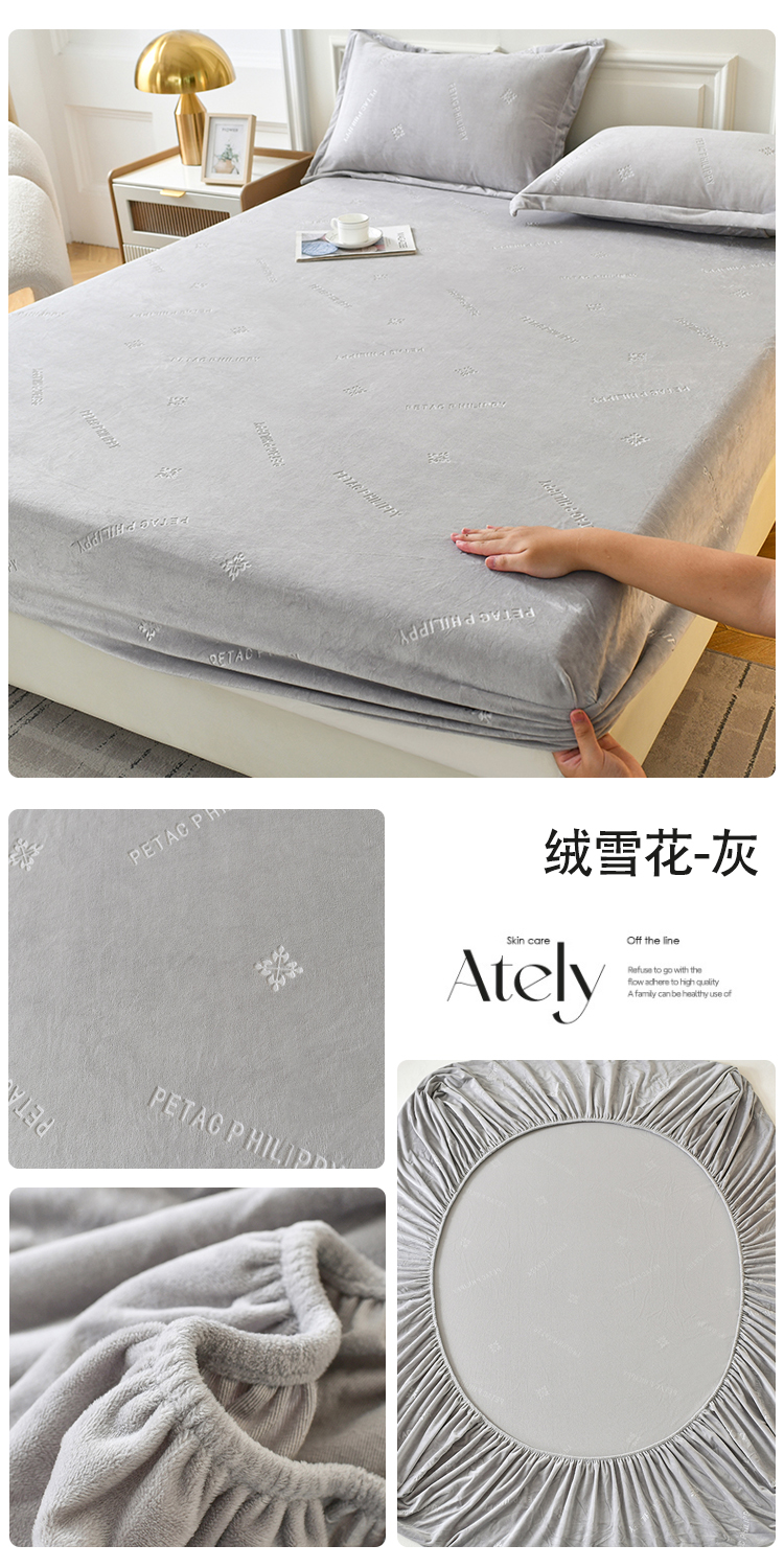 • 91家纺网 家纺一手货源 找家纺 家贝爱 2023新款剪花绒床笠 绒雪花-灰