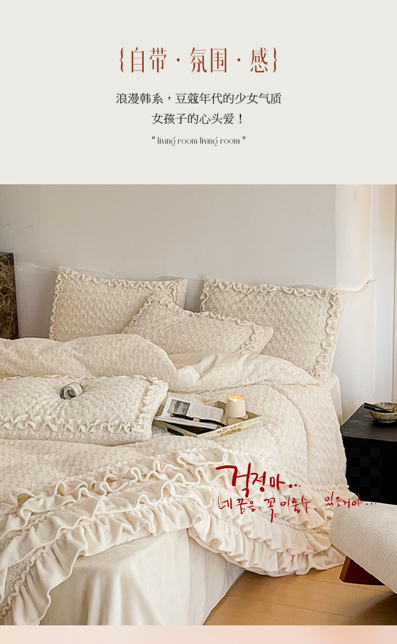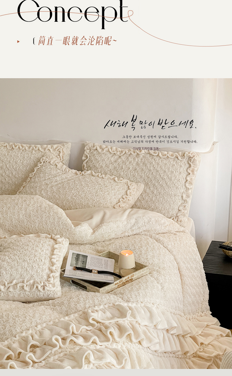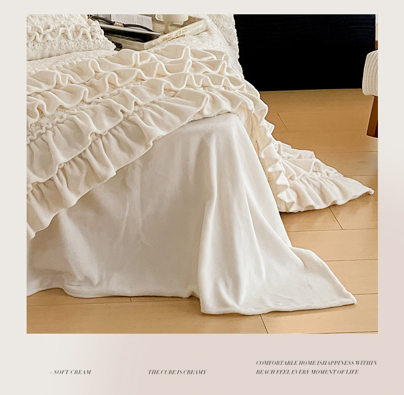当前位置: 91家纺网 > 商品网购 > 床品套件 > 四件套 > 牛奶绒四件套 > (总)婳庭家居 2023新款韩式蛋糕裙兔兔绒四件套