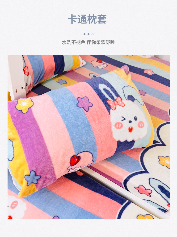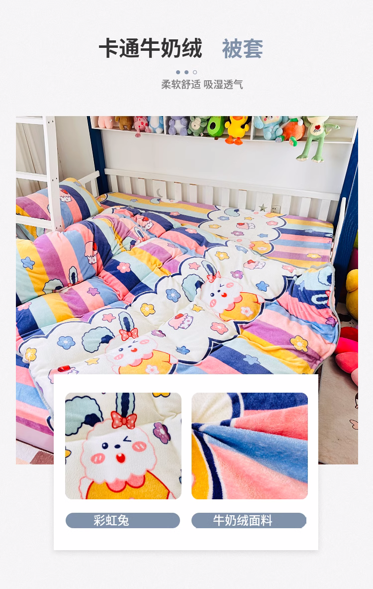 • 91家纺网 家纺一手货源 找家纺 小虾米 2023新款上下床加厚牛奶绒被套 彩虹兔