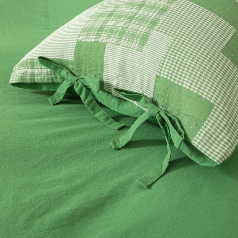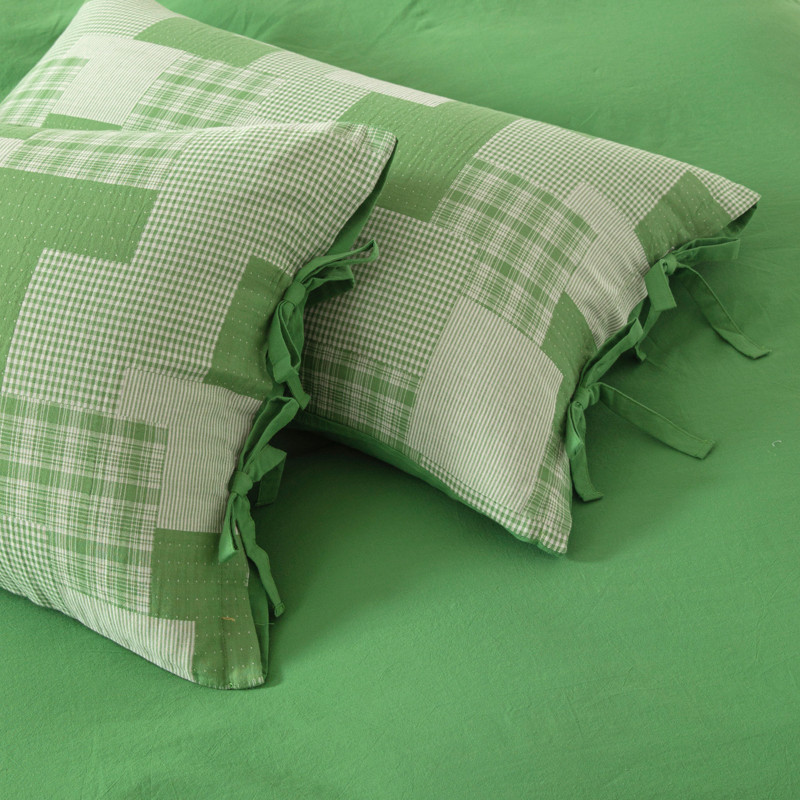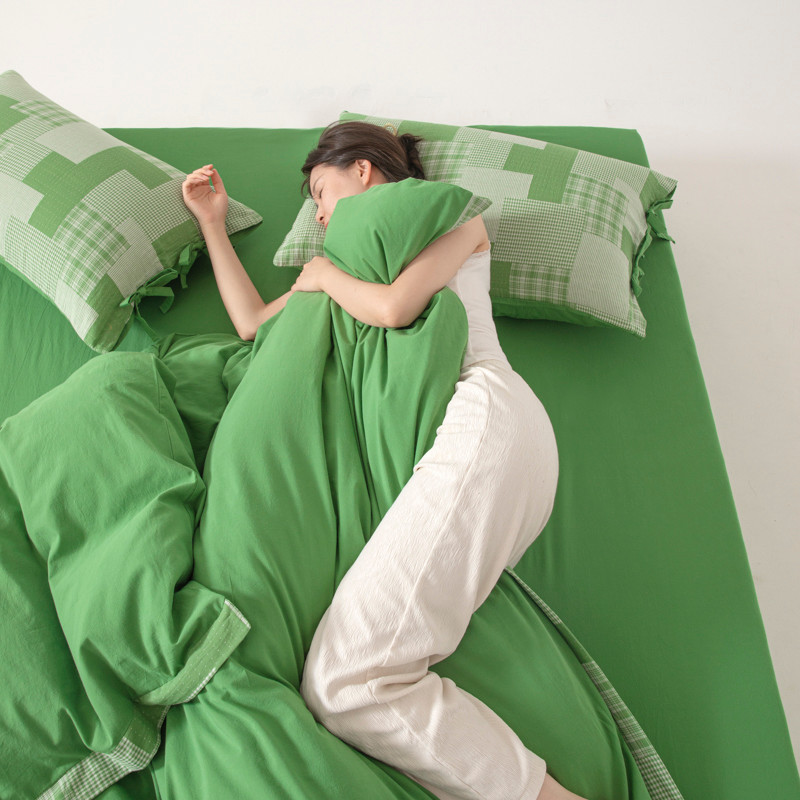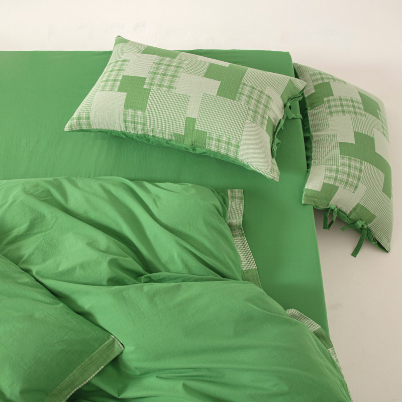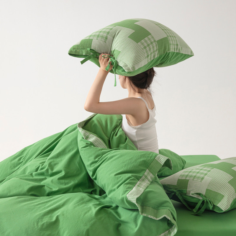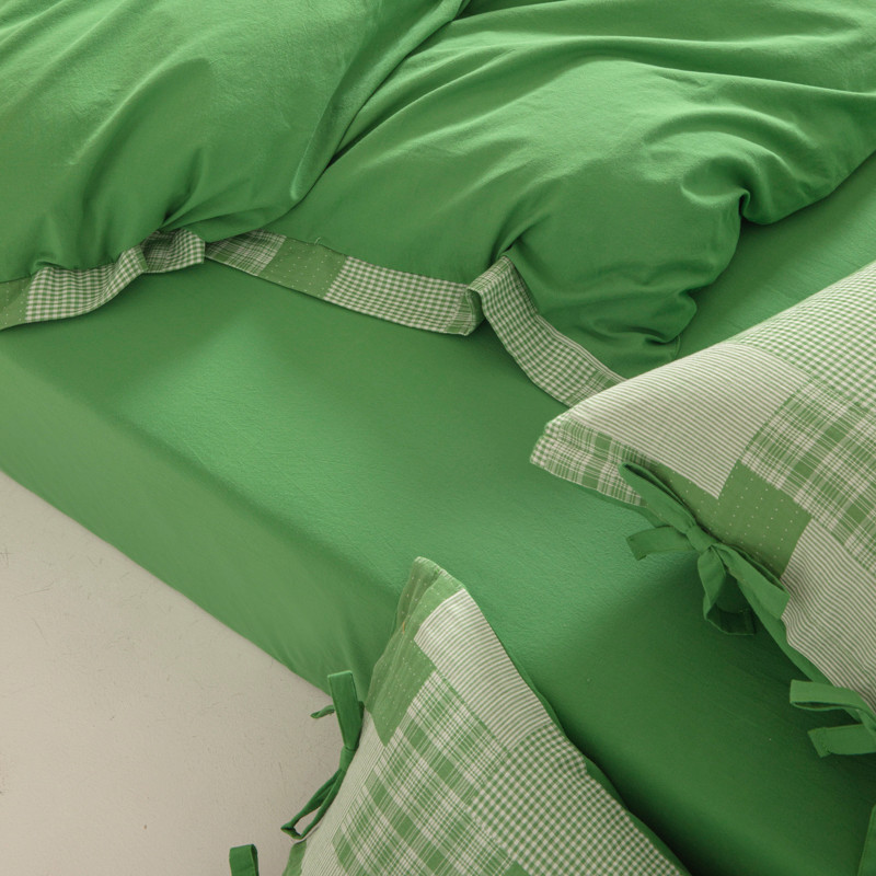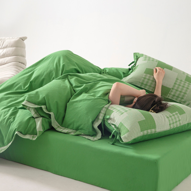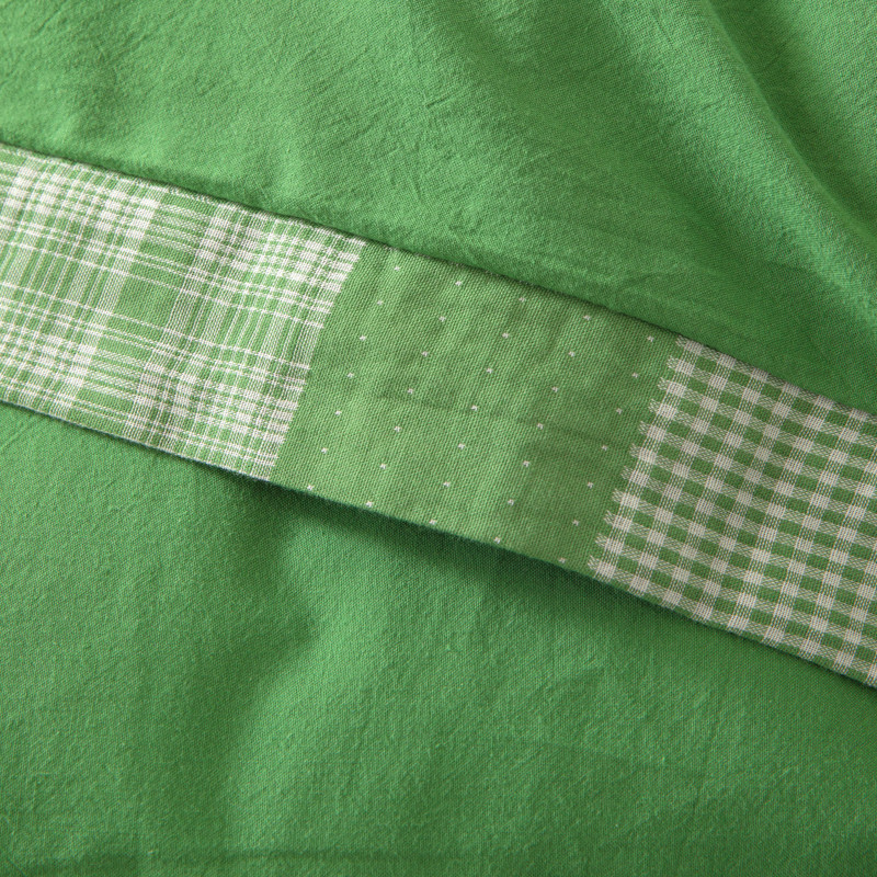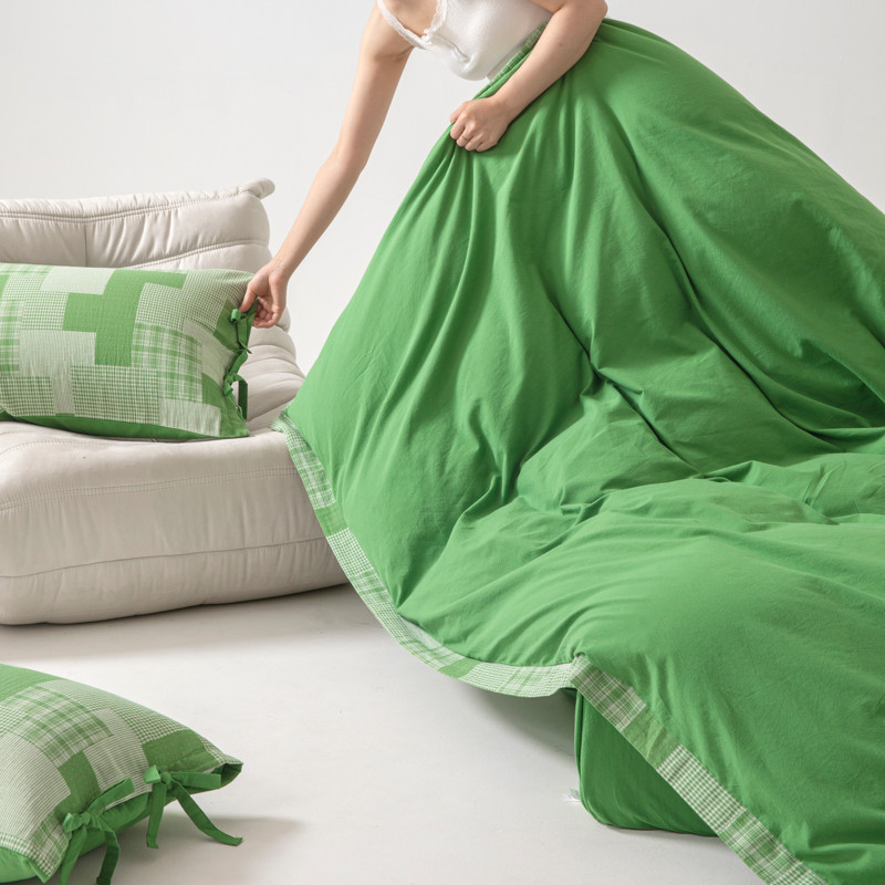 • 91家纺网 家纺一手货源 找家纺 安莱生活 2023新款简约拼布田园拼边四件套 嫩绿