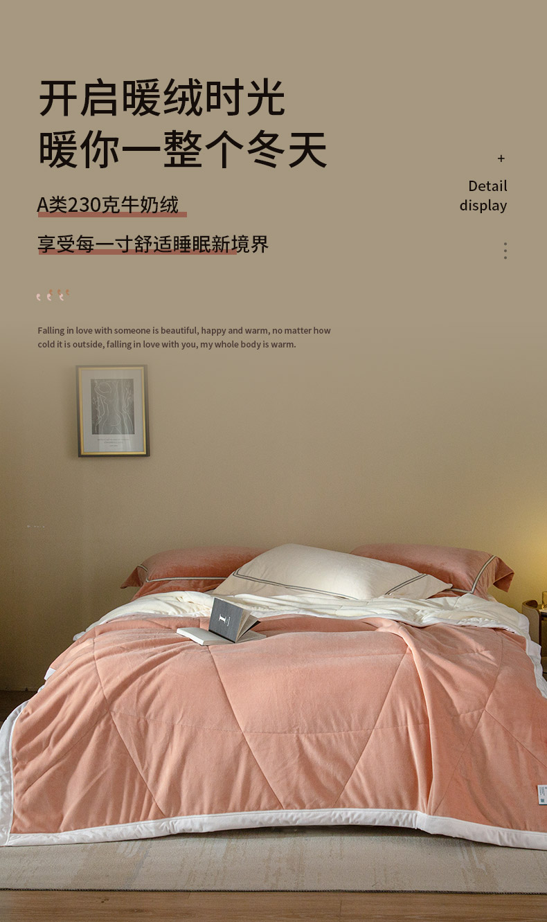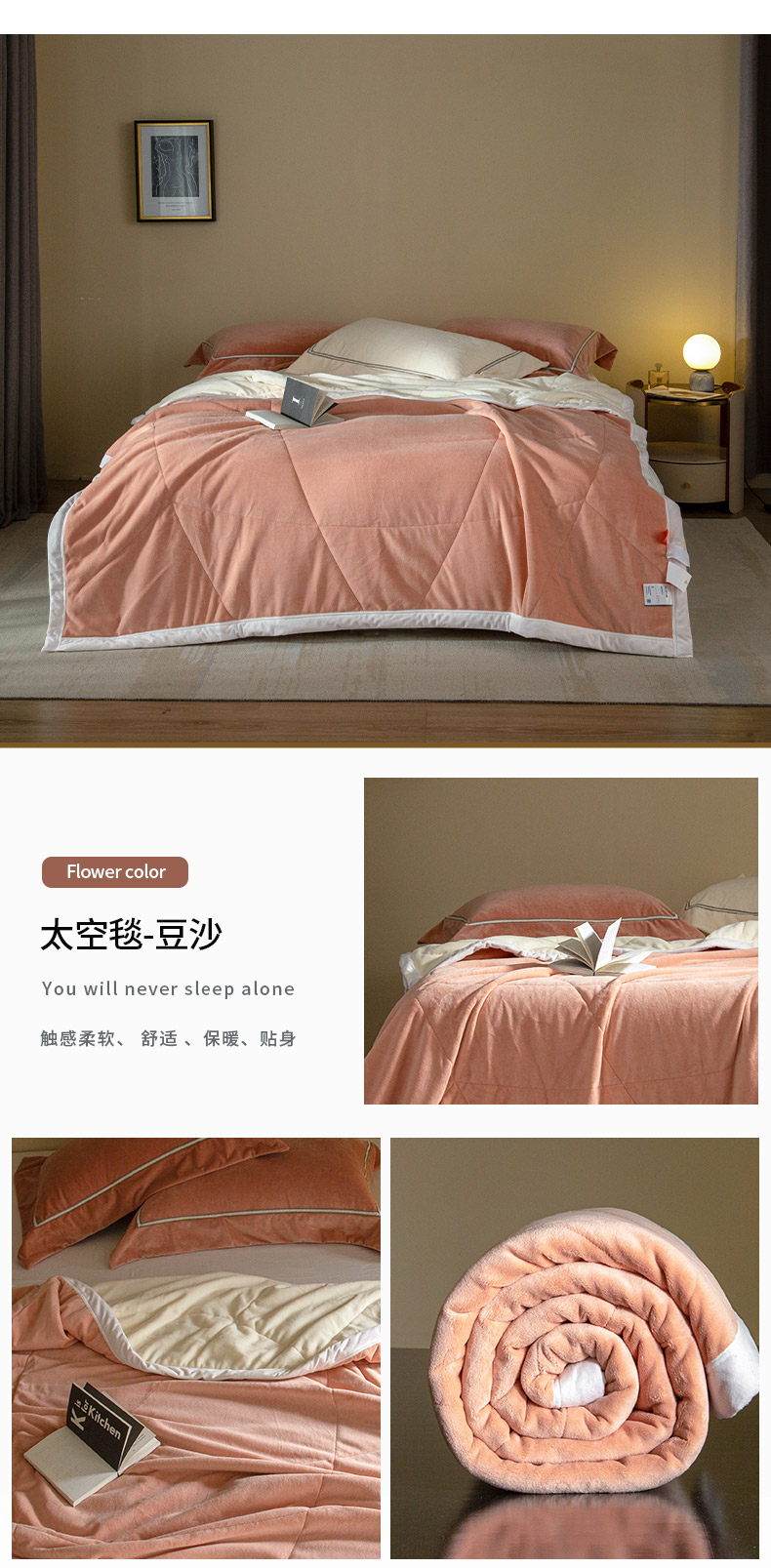 商品名称:121 2023新款230克全消光牛奶绒夹棉太空毯 太空毯-灰白