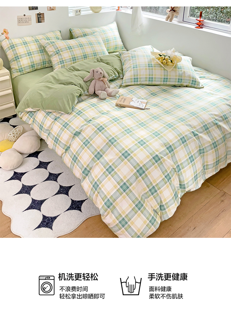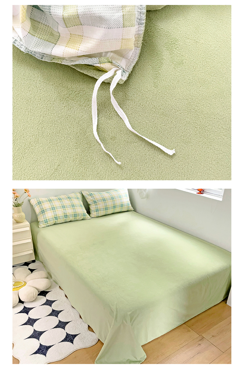 商品名称:盛馨家纺 2023新款棉加绒A版高支高密13372全棉加B版加厚宝宝绒牛奶绒床单床笠四件套 绿小格