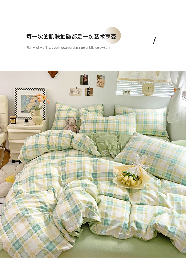 盛馨家纺 2023新款棉加绒A版高支高密13372全棉加B版加厚宝宝绒牛奶绒床单床笠四件套 绿小格