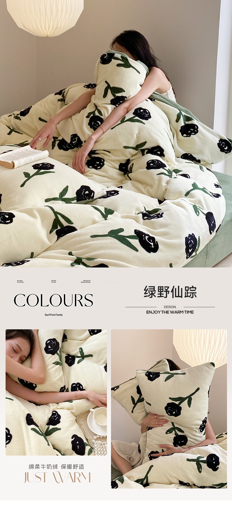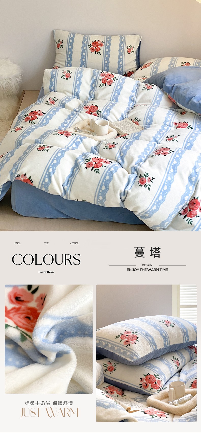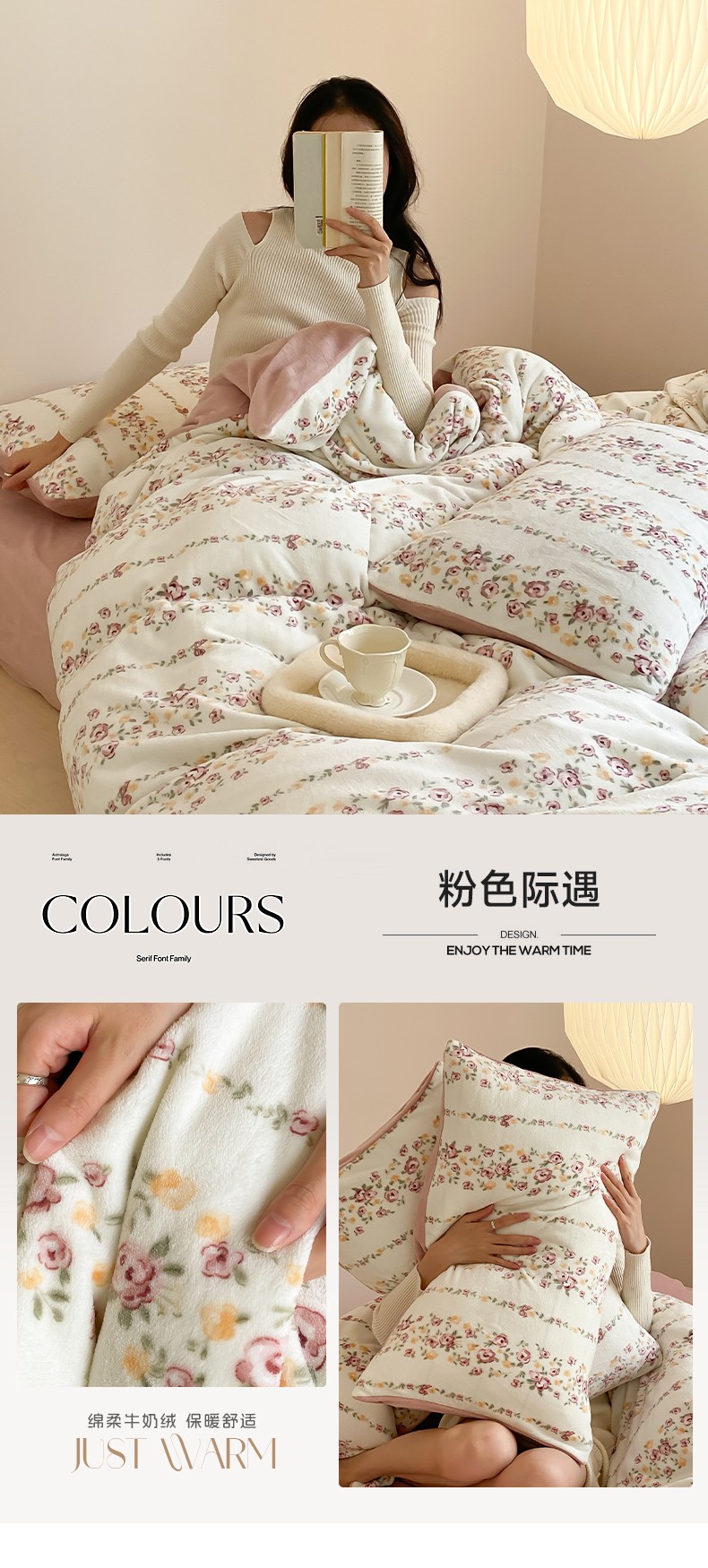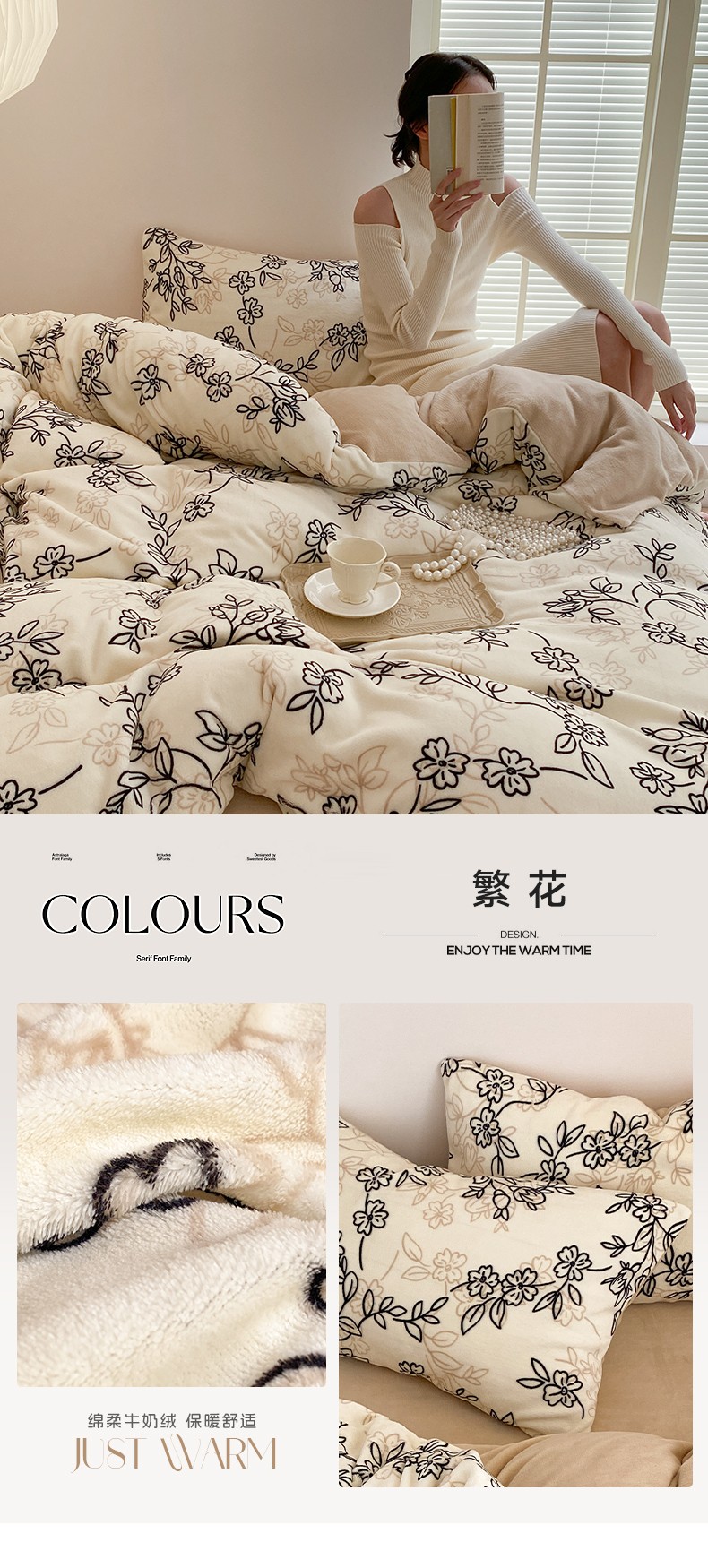(总)时光里 2023新款230g半消光印花牛奶绒四件套