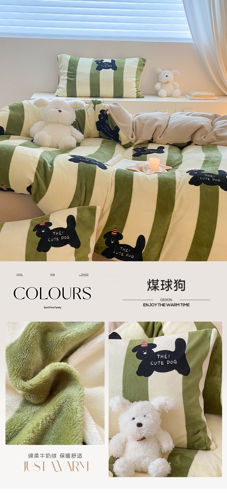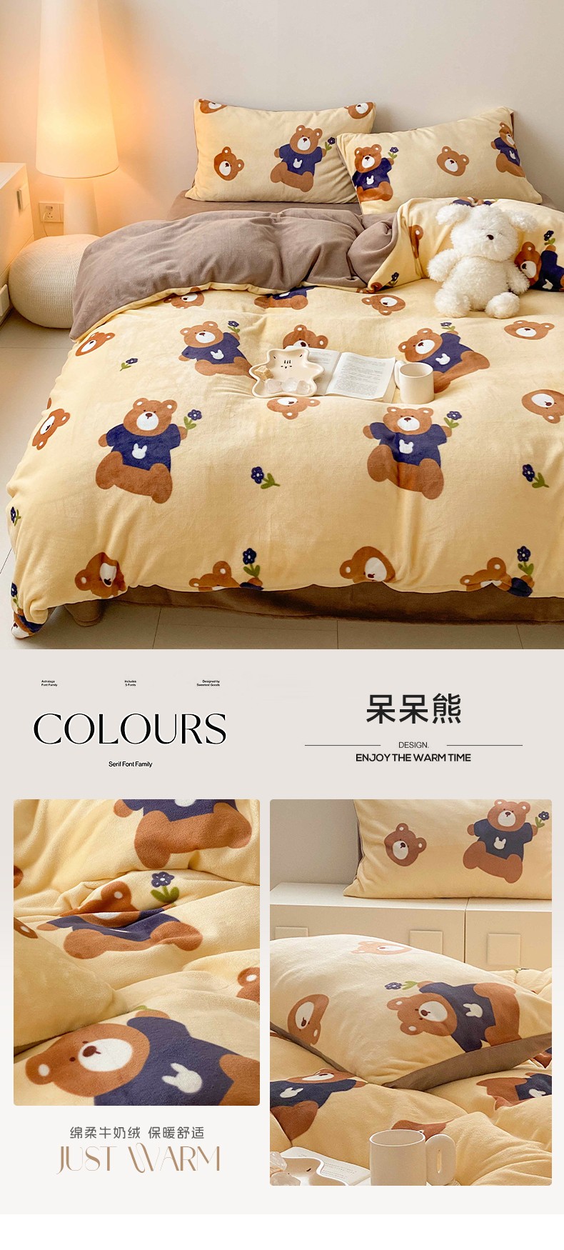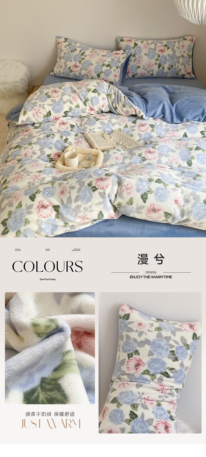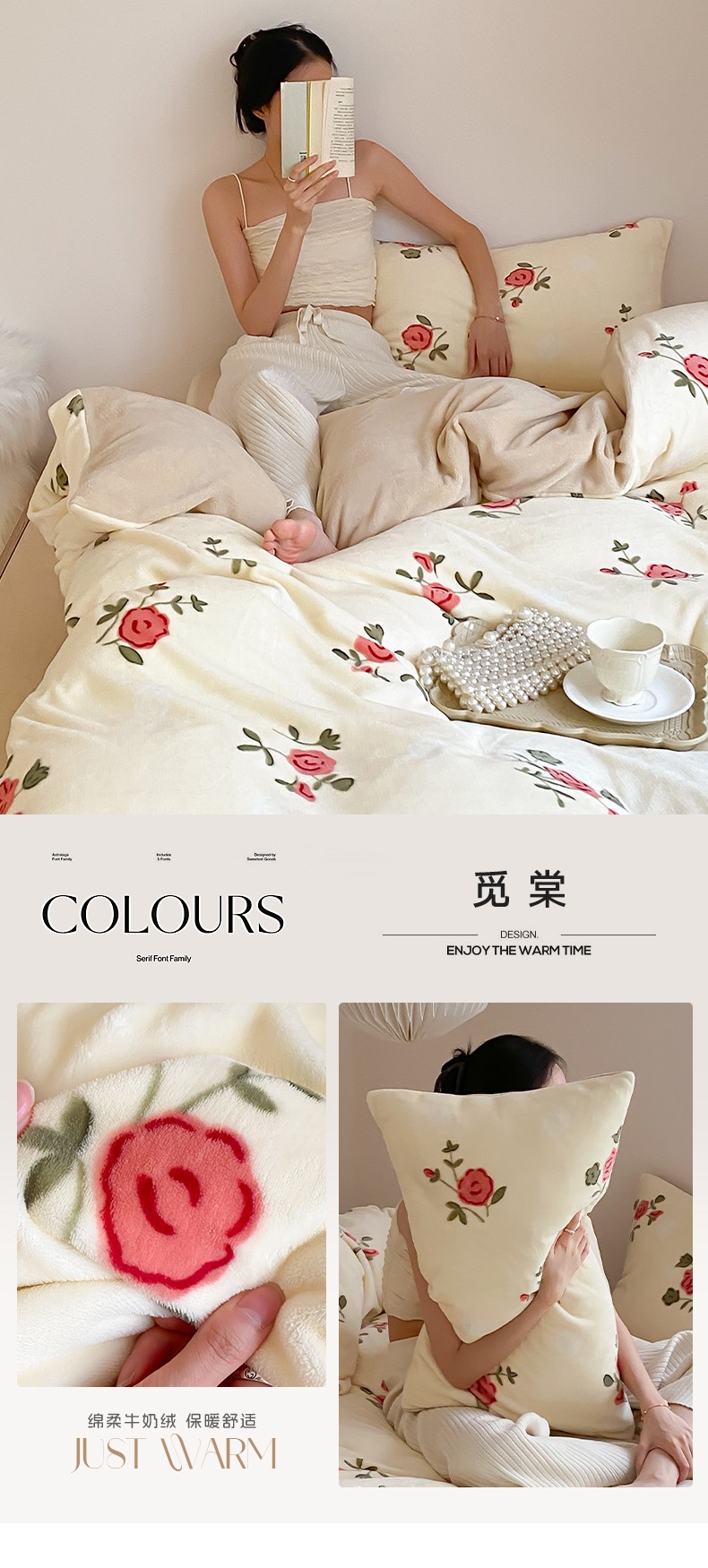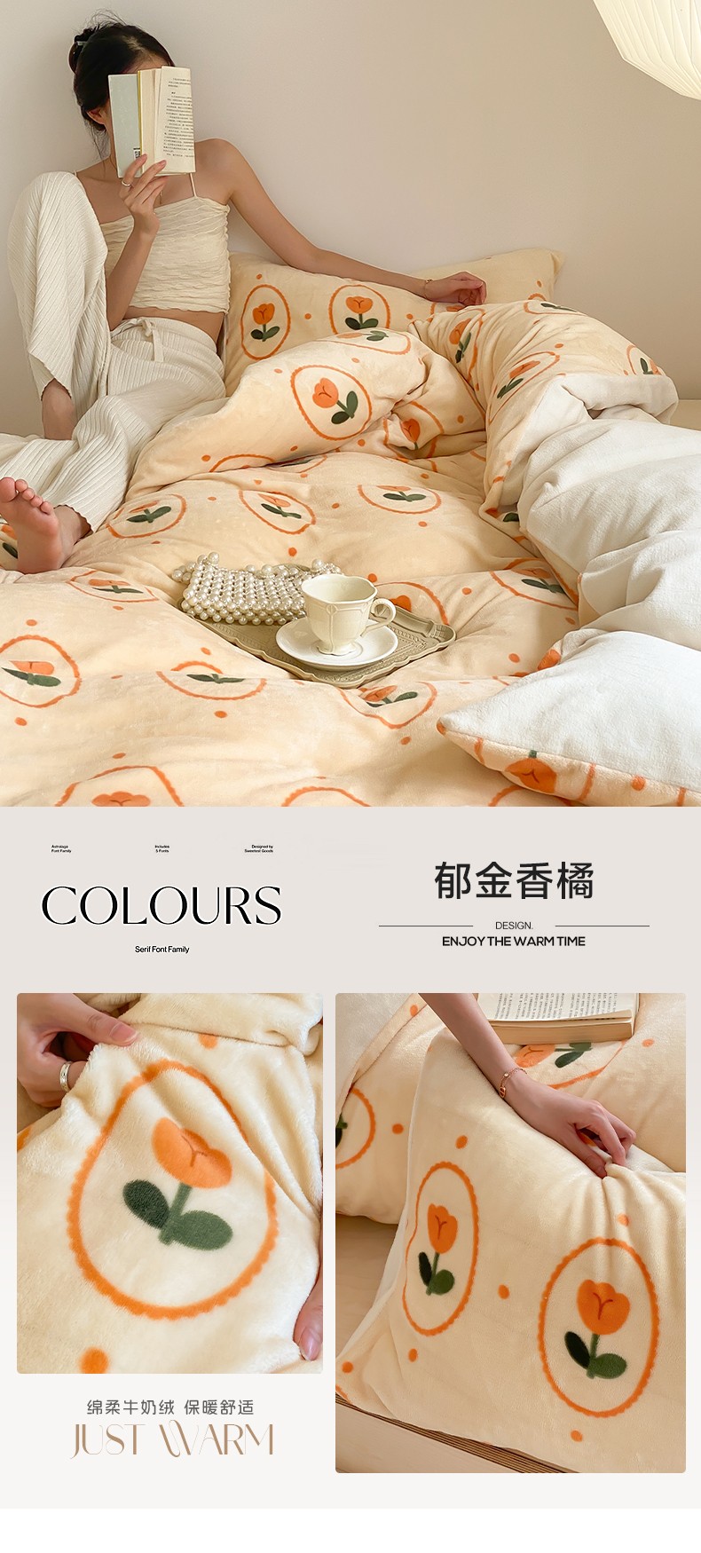 (总)时光里 2023新款230g半消光印花牛奶绒四件套