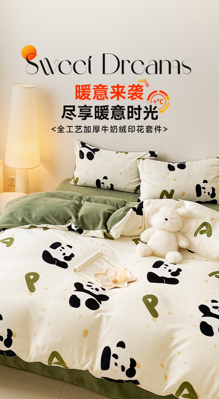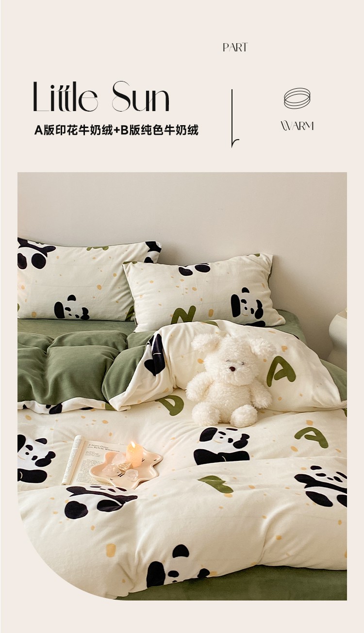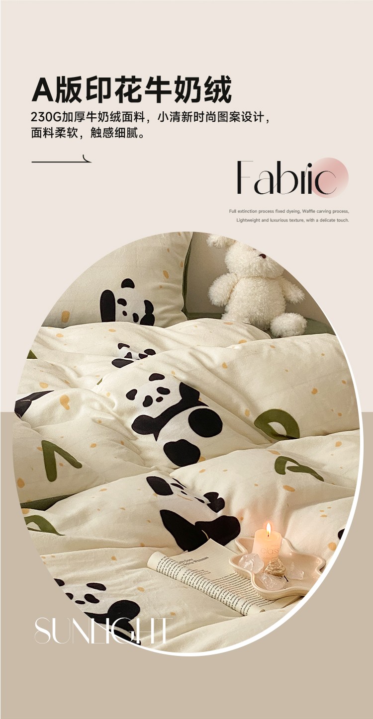 当前位置: 91家纺网 > 商品网购 > 床品套件 > 四件套 > 牛奶绒四件套 > 时光里 2023新款230g半消光印花牛奶绒四件套 卡通款-熊猫