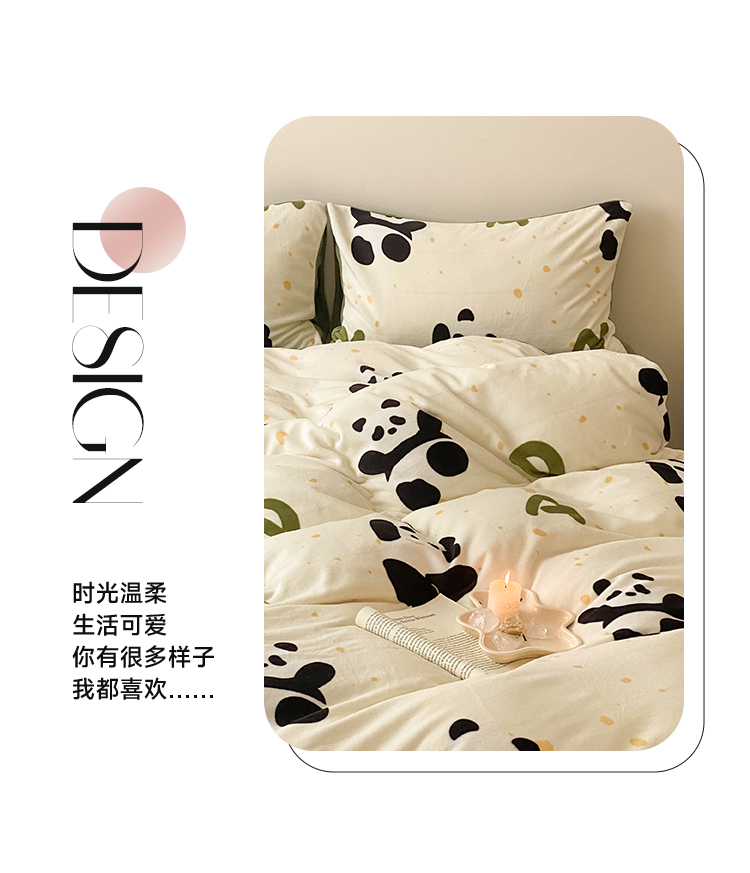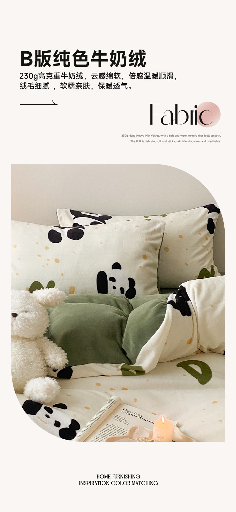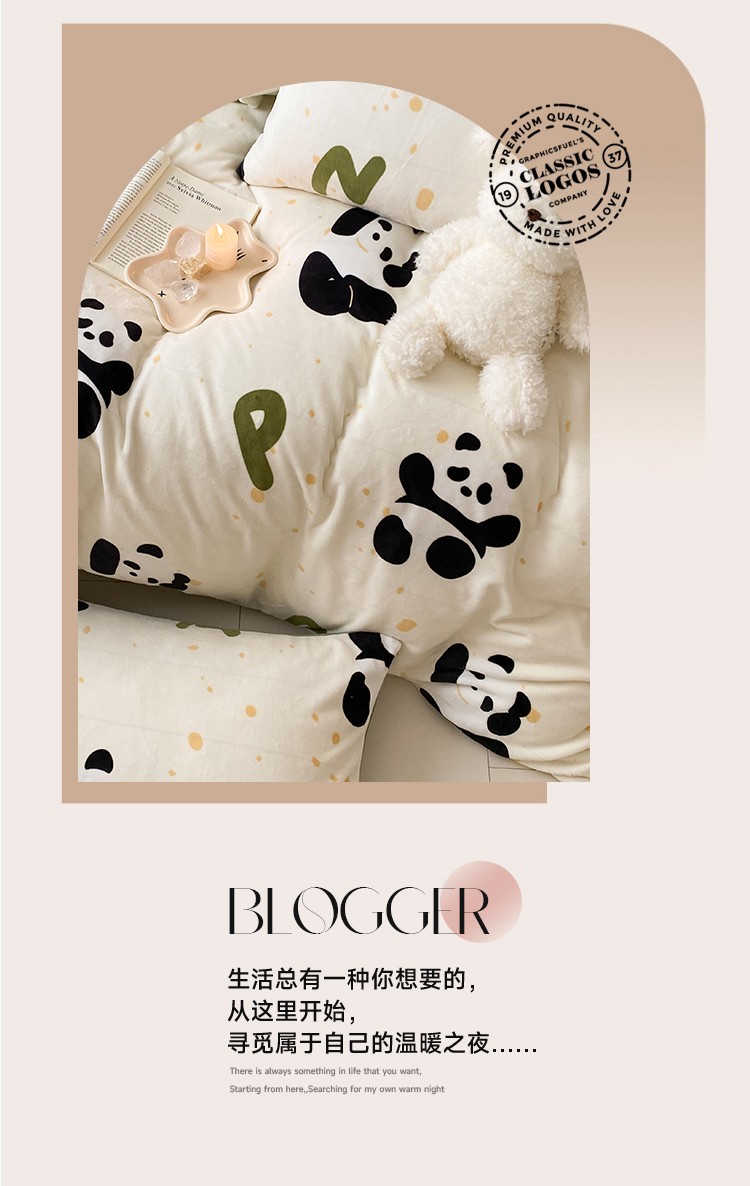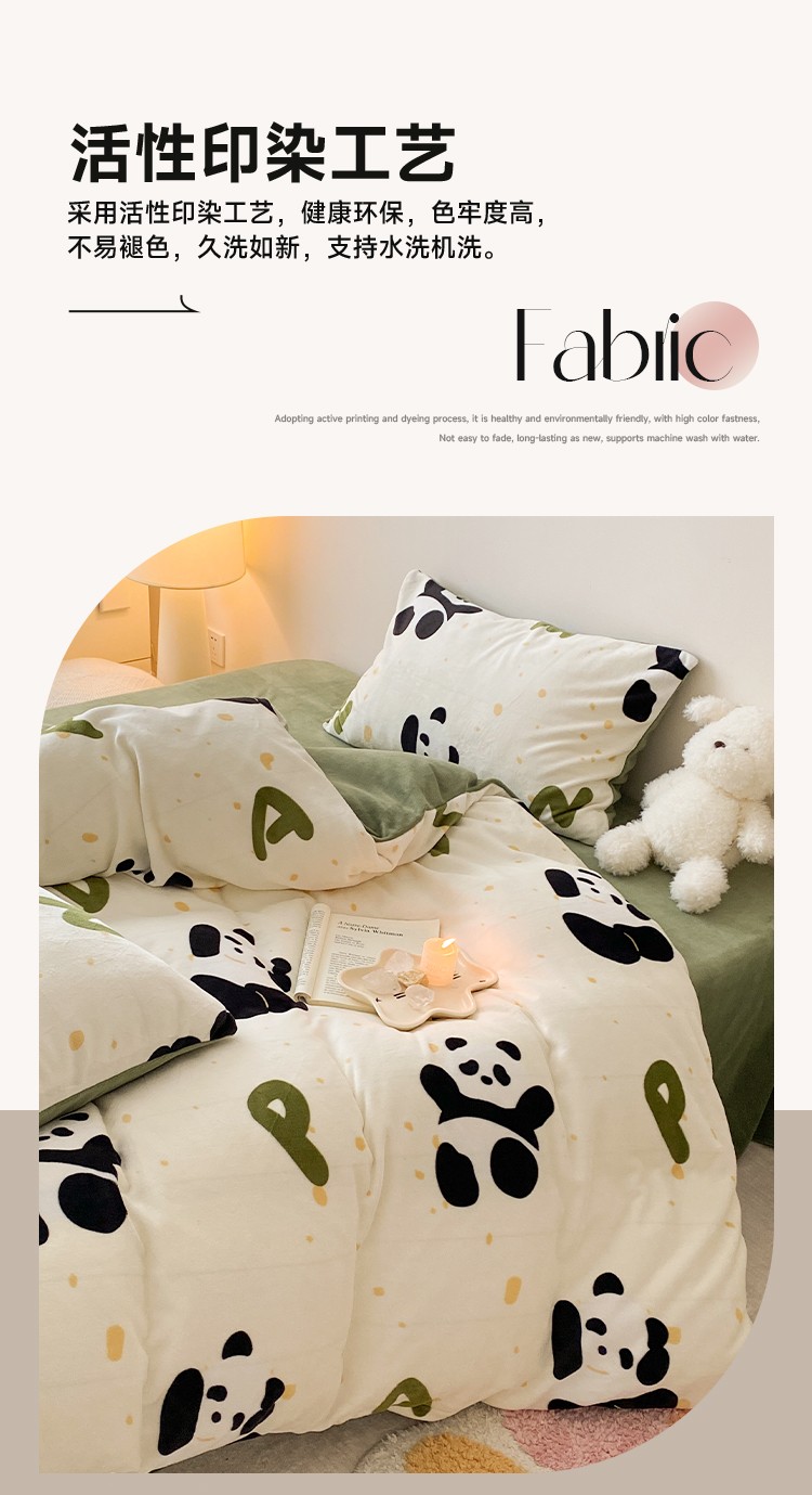 当前位置: 91家纺网 > 商品网购 > 床品套件 > 四件套 > 牛奶绒四件套 > 时光里 2023新款230g半消光印花牛奶绒四件套 卡通款-熊猫