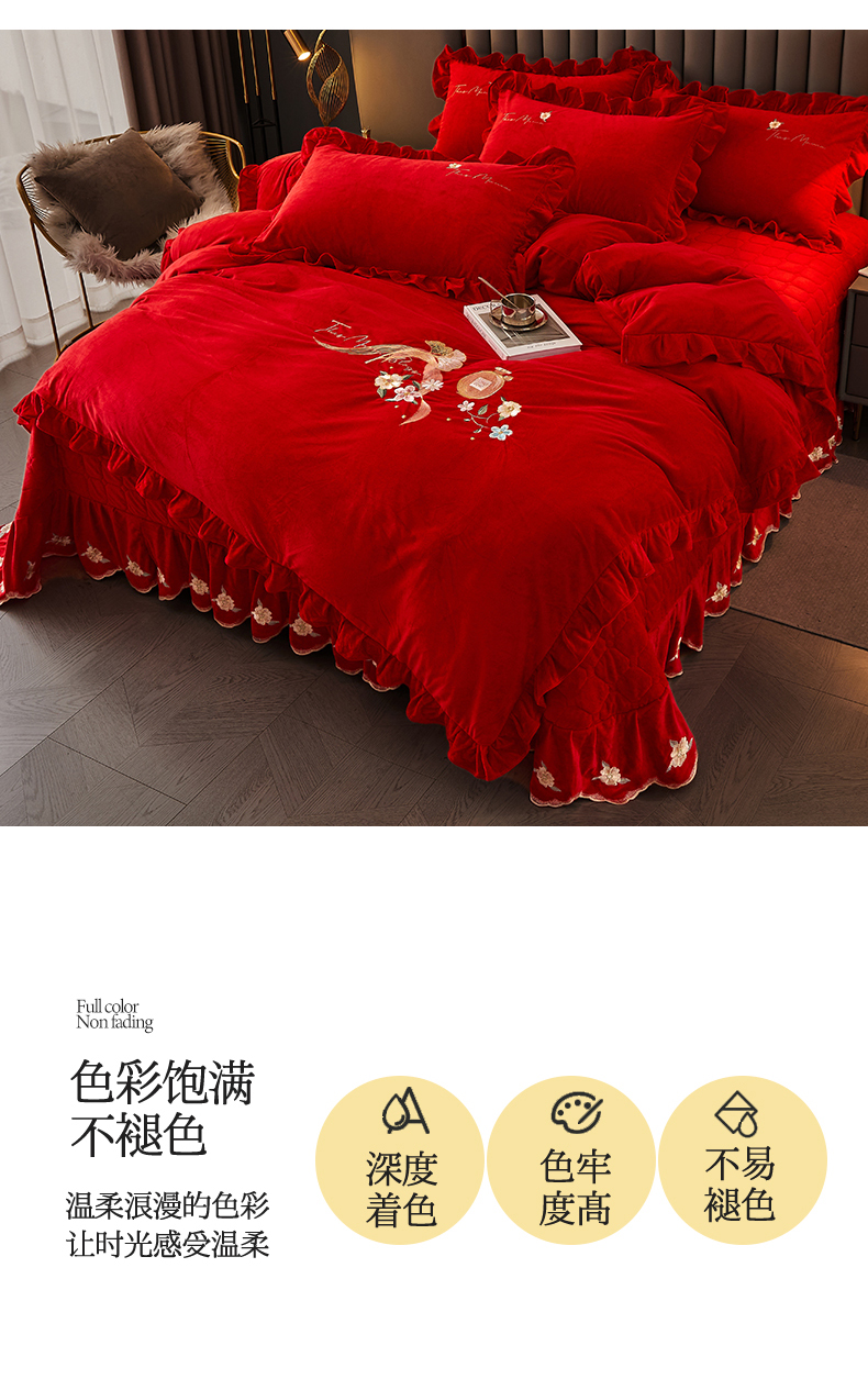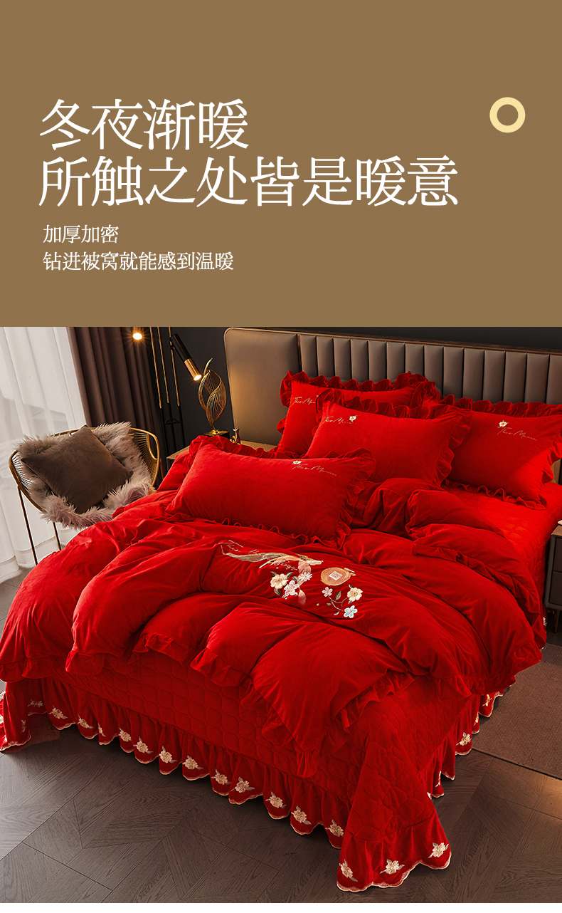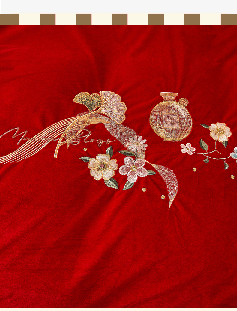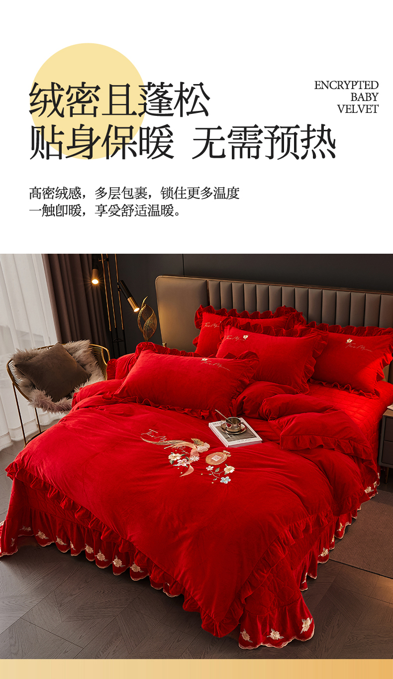 当前位置: 91家纺网 > 商品网购 > 床品套件 > 四件套 > 宝宝绒四件套 > 恒爱家纺 2023新款温暖舒适加密宝宝绒床盖四件套-邂逅系列 大红