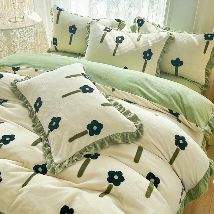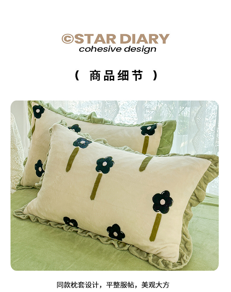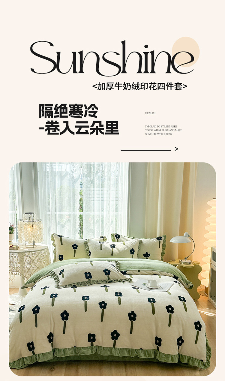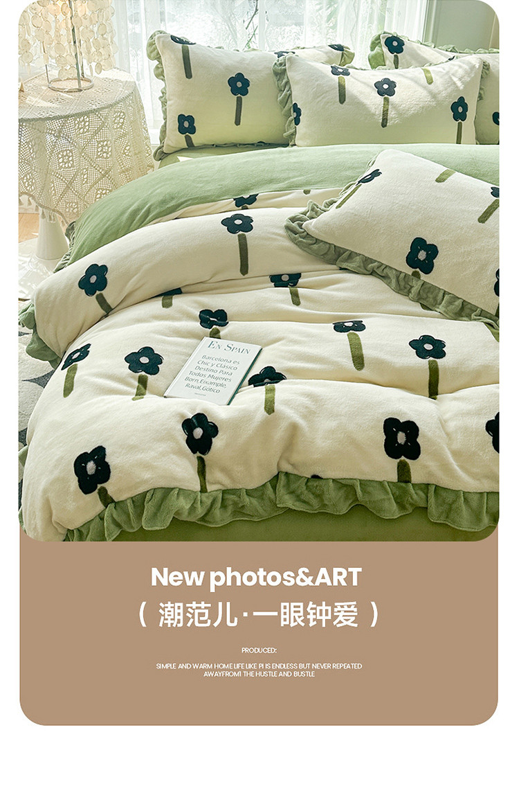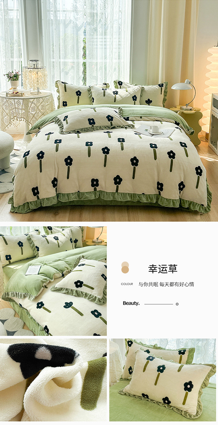 当前位置: 91家纺网 > 商品网购 > 床品套件 > 四件套 > 牛奶绒四件套 > 小主驾到 2023新款高克重韩版牛奶绒花边四件套幸运草