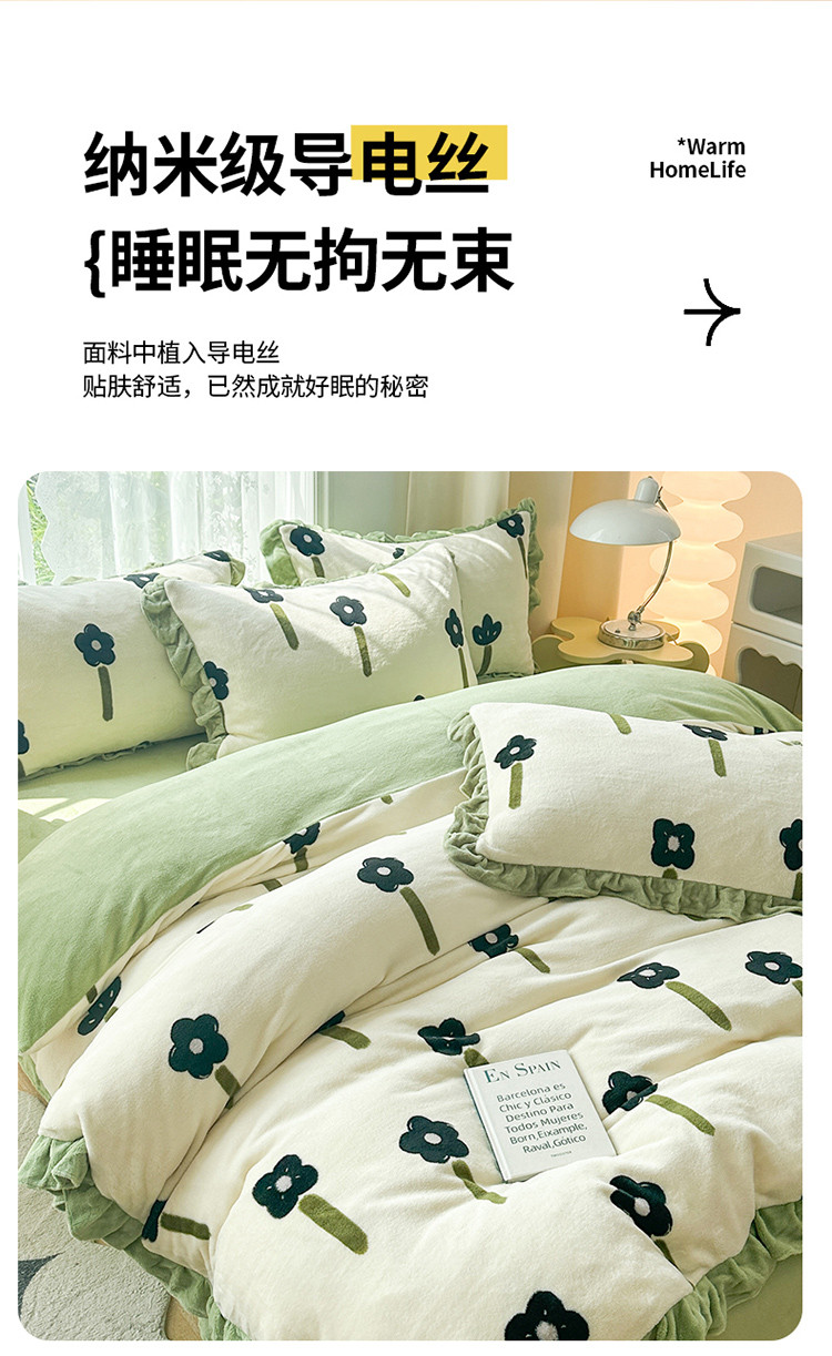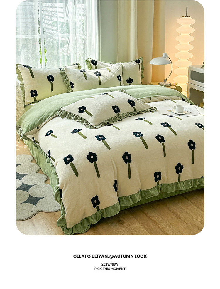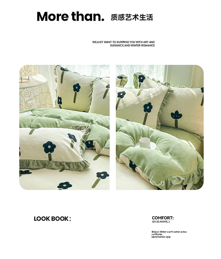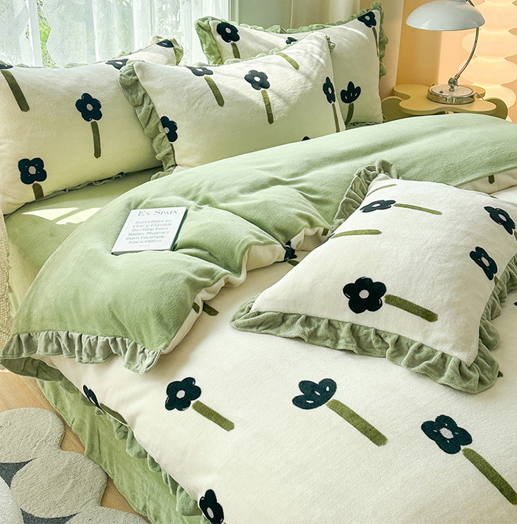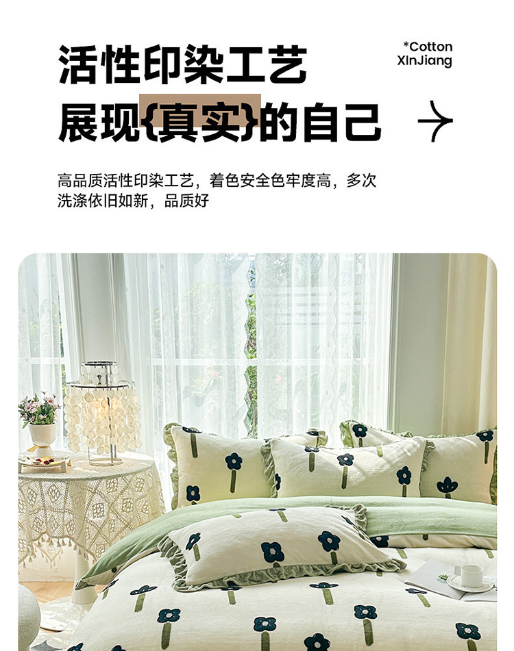 当前位置: 91家纺网 > 商品网购 > 床品套件 > 四件套 > 牛奶绒四件套 > 小主驾到 2023新款高克重韩版牛奶绒花边四件套幸运草