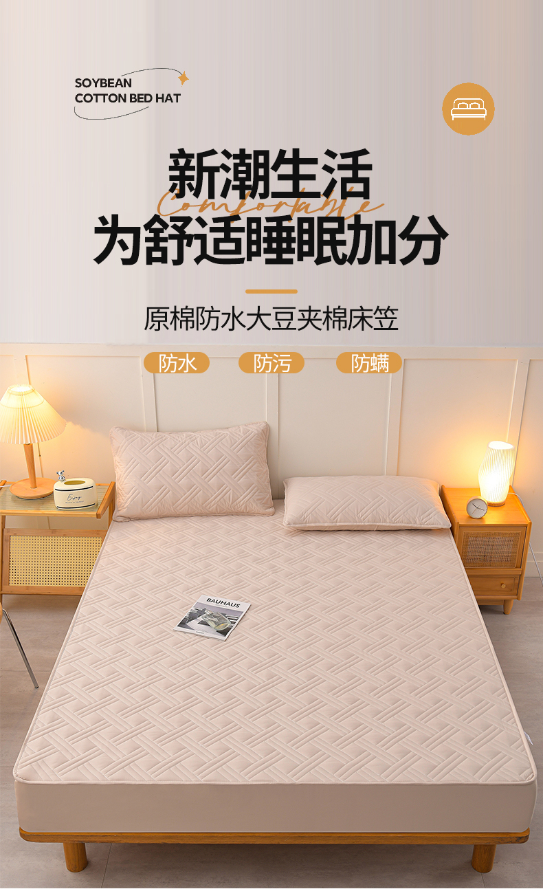 (总)X猫先生 2025新款A类原棉大豆防水床笠隔尿夹棉床笠床垫保护罩外贸跨境,爱恋-米白,爱恋-草绿,爱恋-卡其,爱恋-星空灰,爱恋-玉粉,迷宫-草绿,迷宫-卡其,迷宫-米白,迷宫-星空灰,迷宫-玉粉