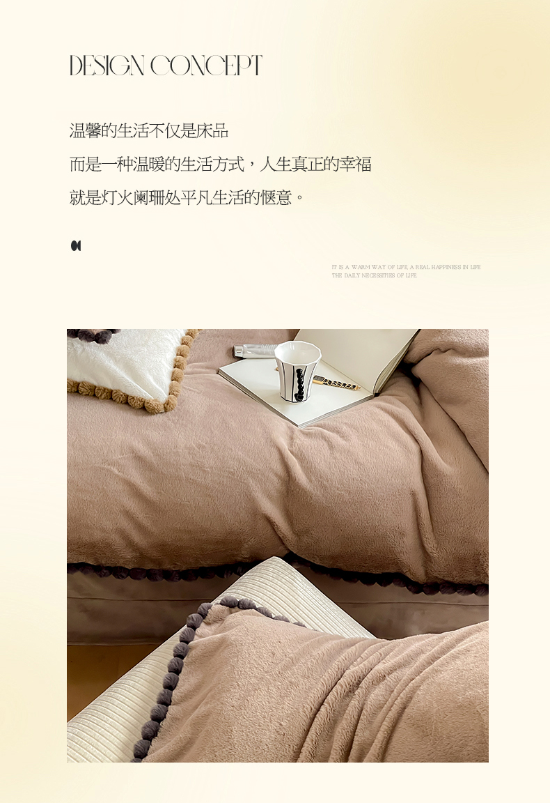 商品名称:名品优仓 2023新款高克重兔绒边带球球款四件套 摩卡咖