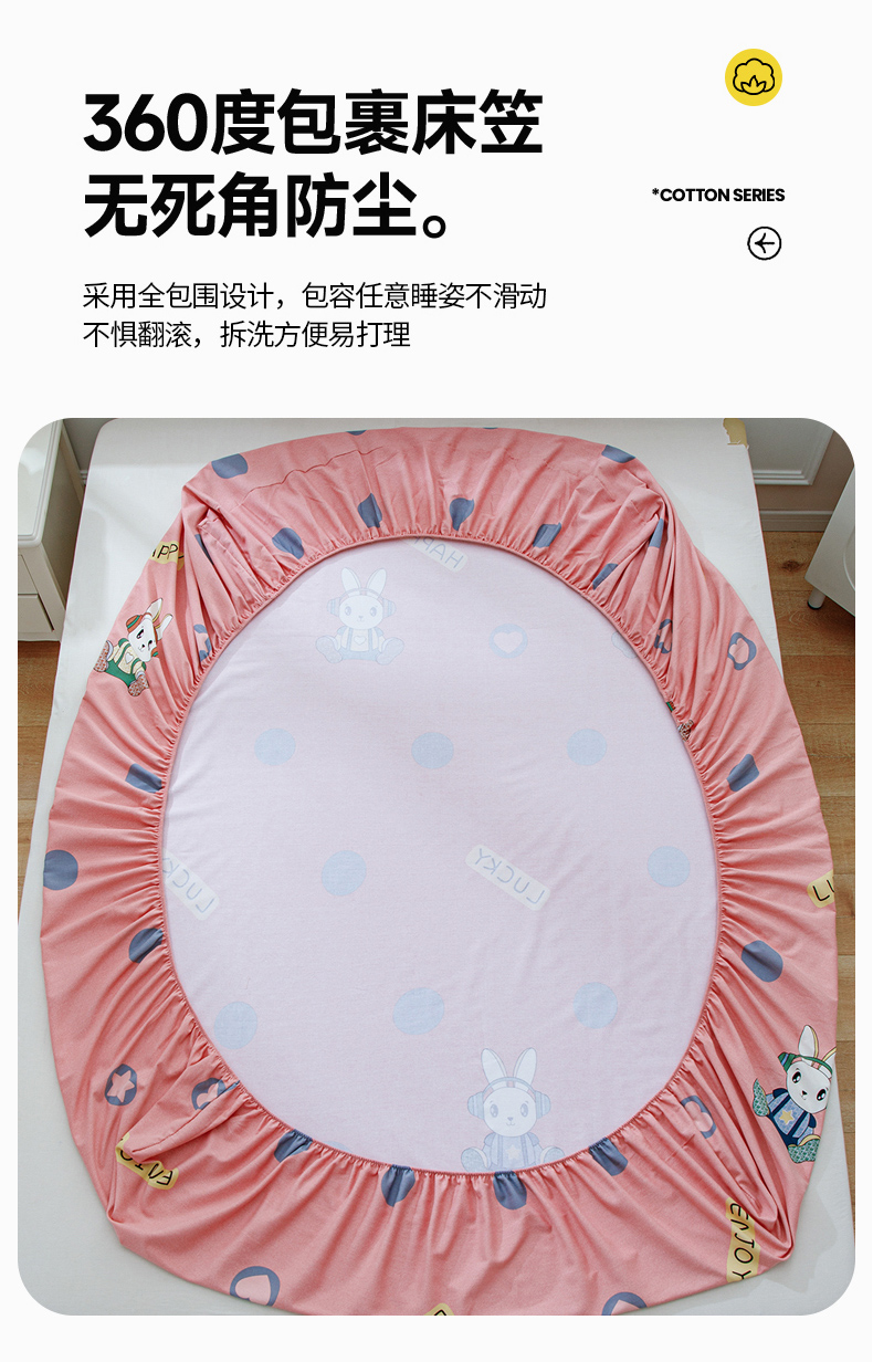 • 91家纺网 家纺一手货源 找家纺 宝时兰 2025新款A类加厚全棉床笠-印花款 兔梦心语