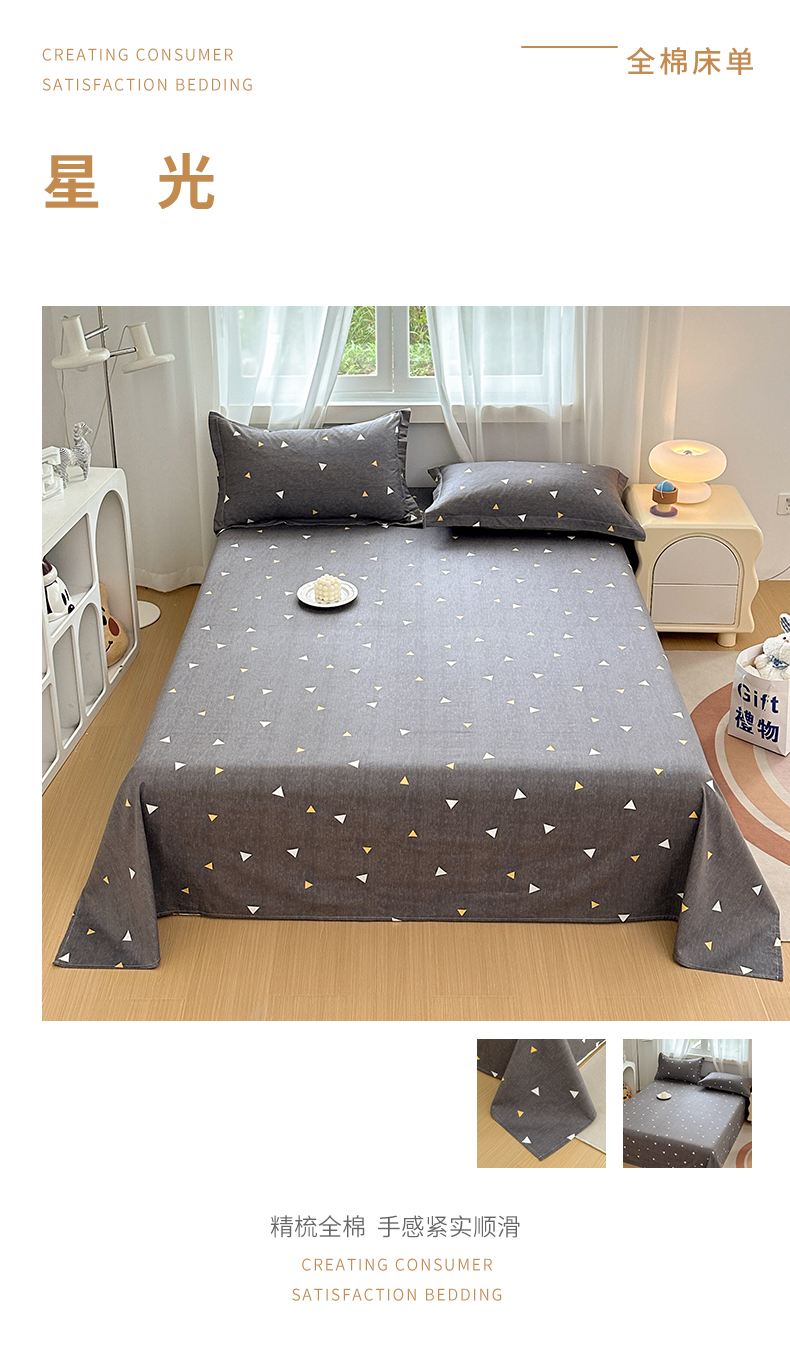 商品名称:元元被芯 2023新款全棉直角印花床单 星光