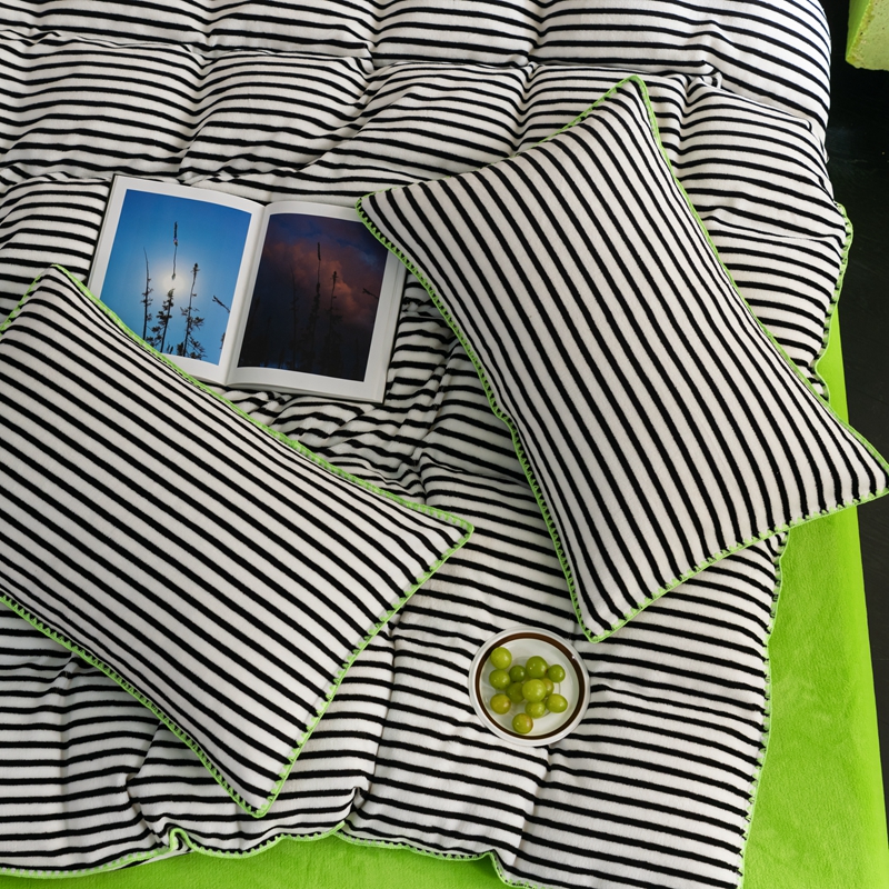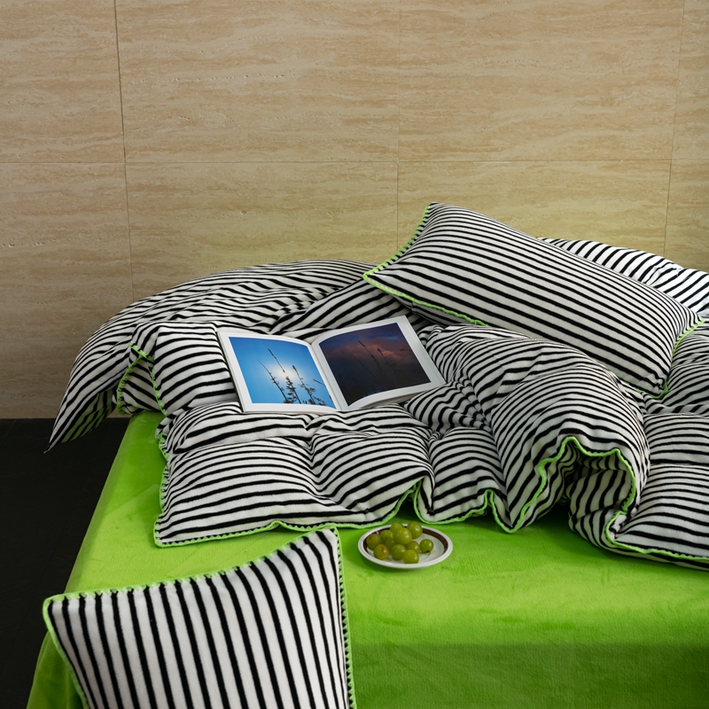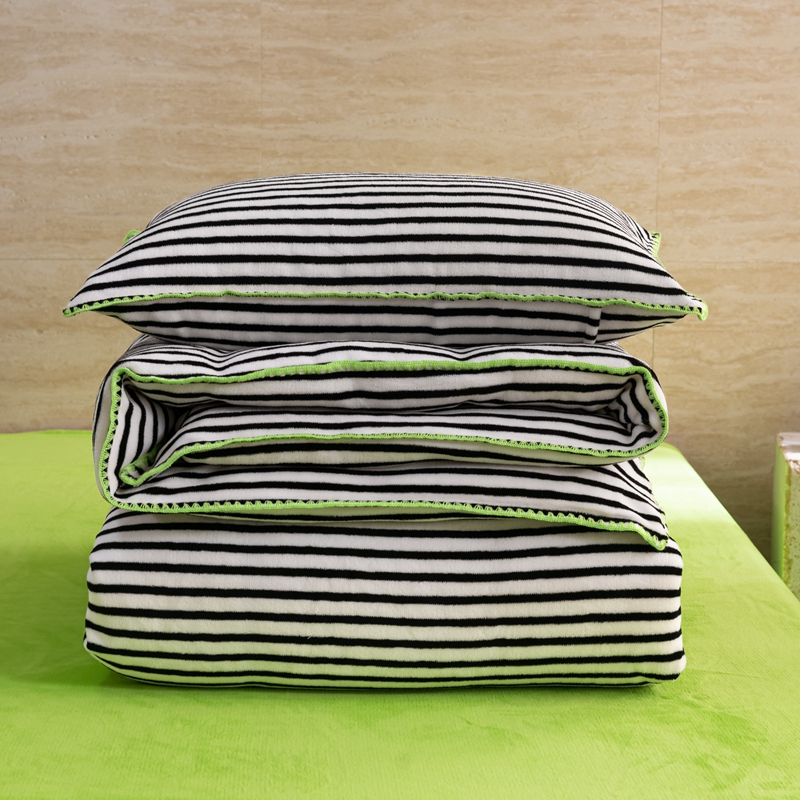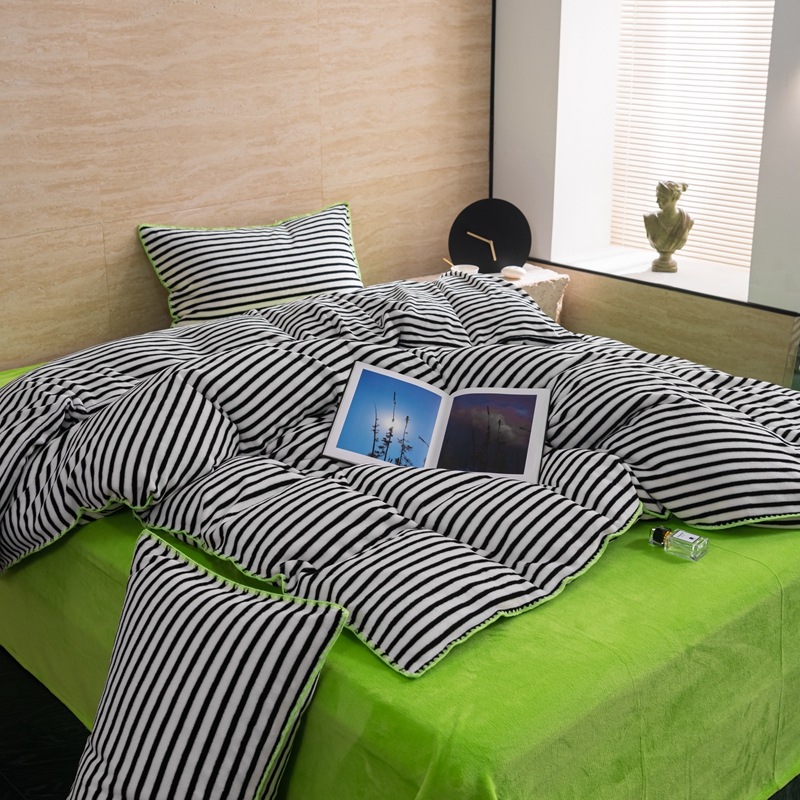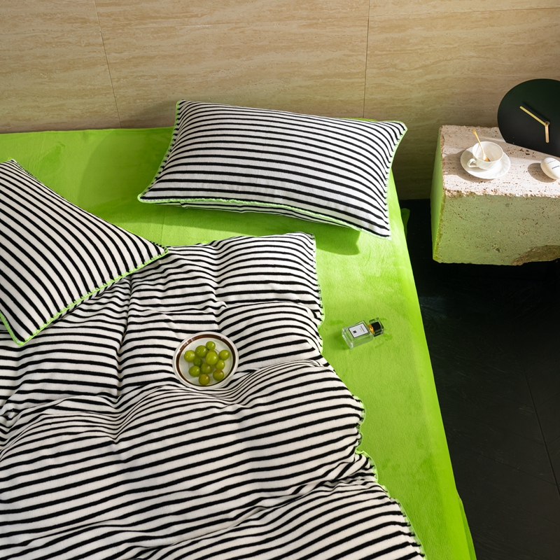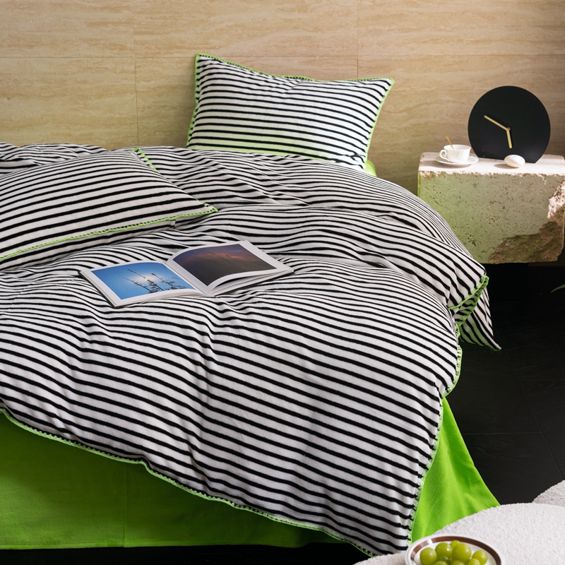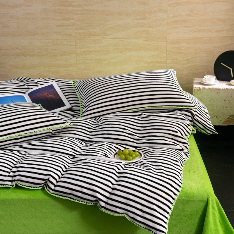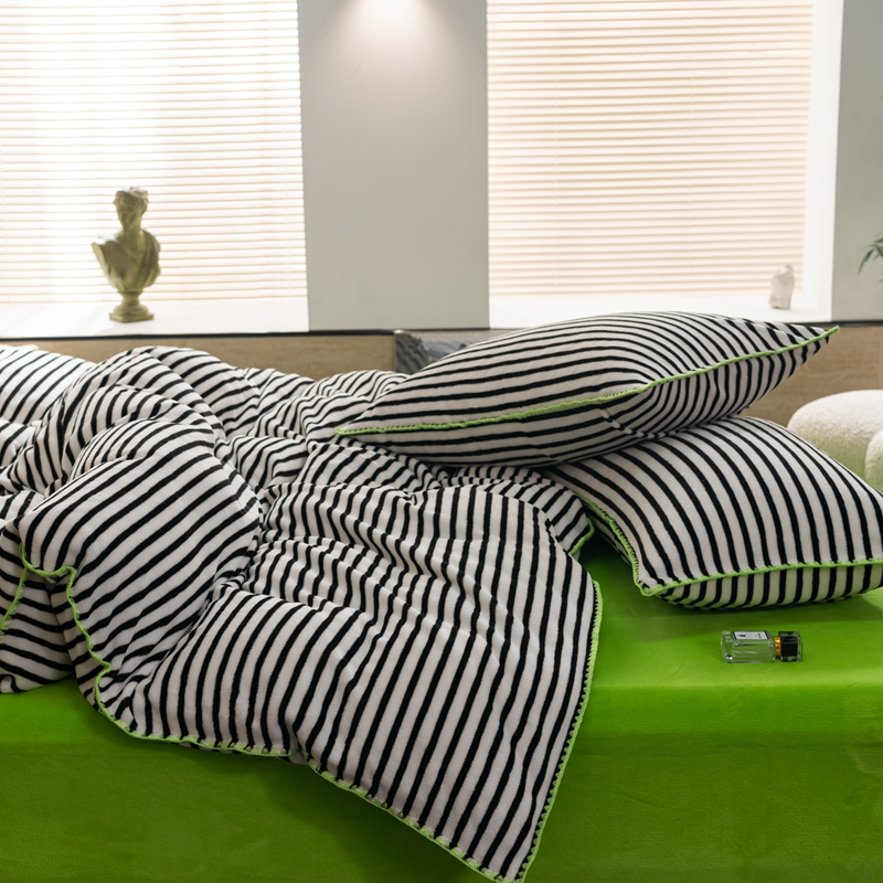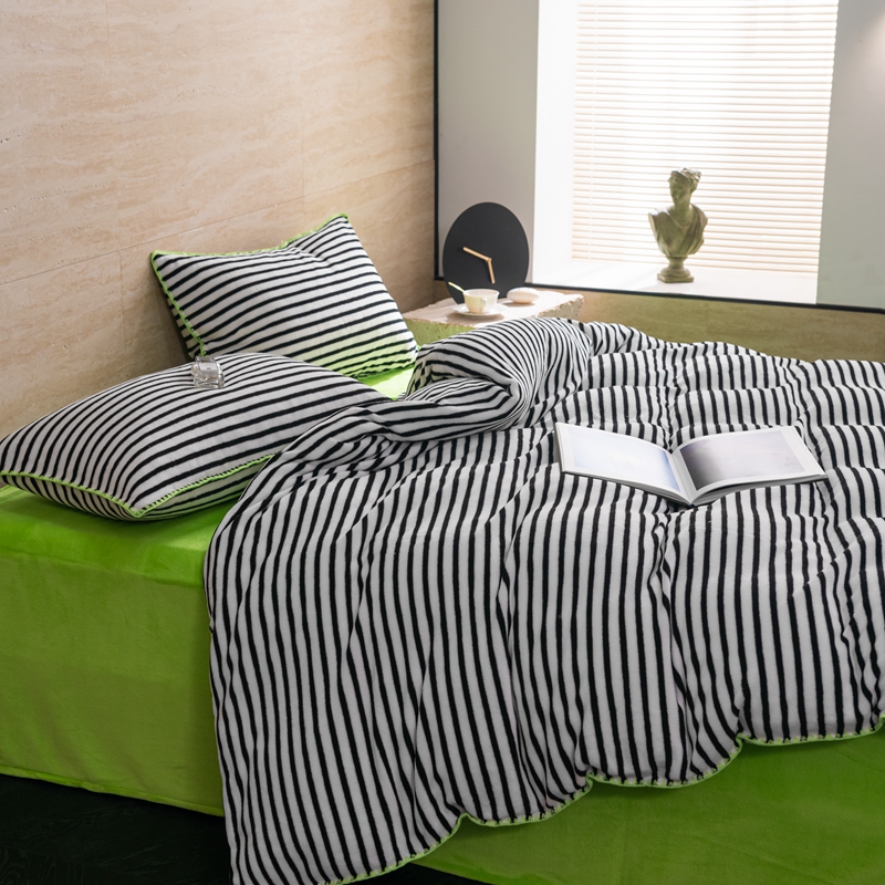 洋铭区(原狠狠爱) 2023新款ab版牛奶绒心动系列条纹四件套 心动黑白条