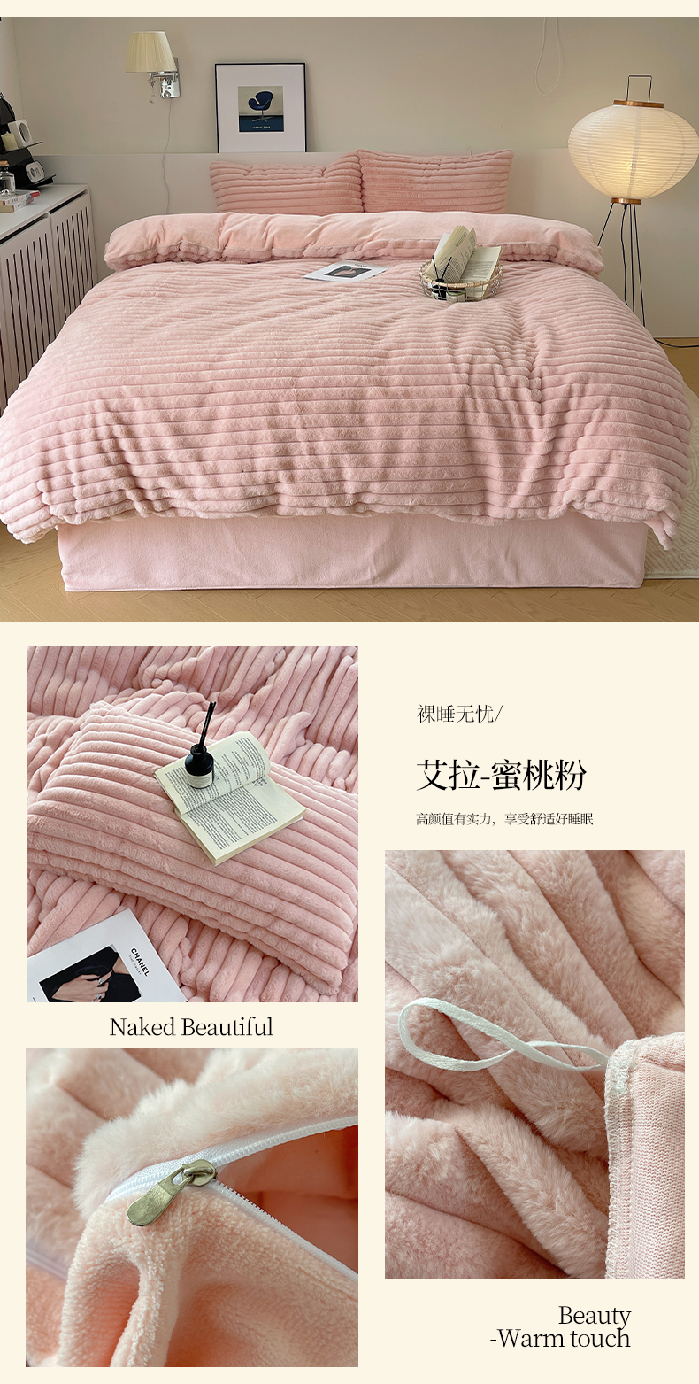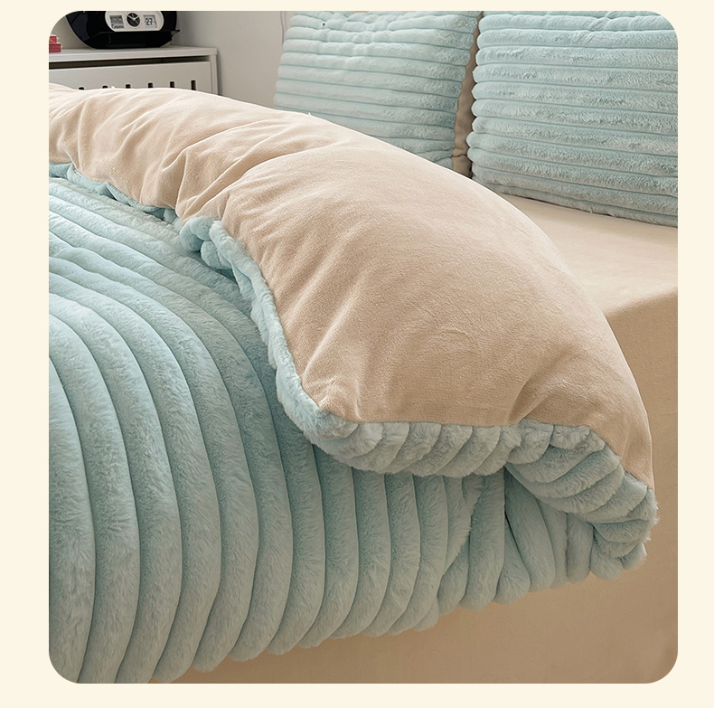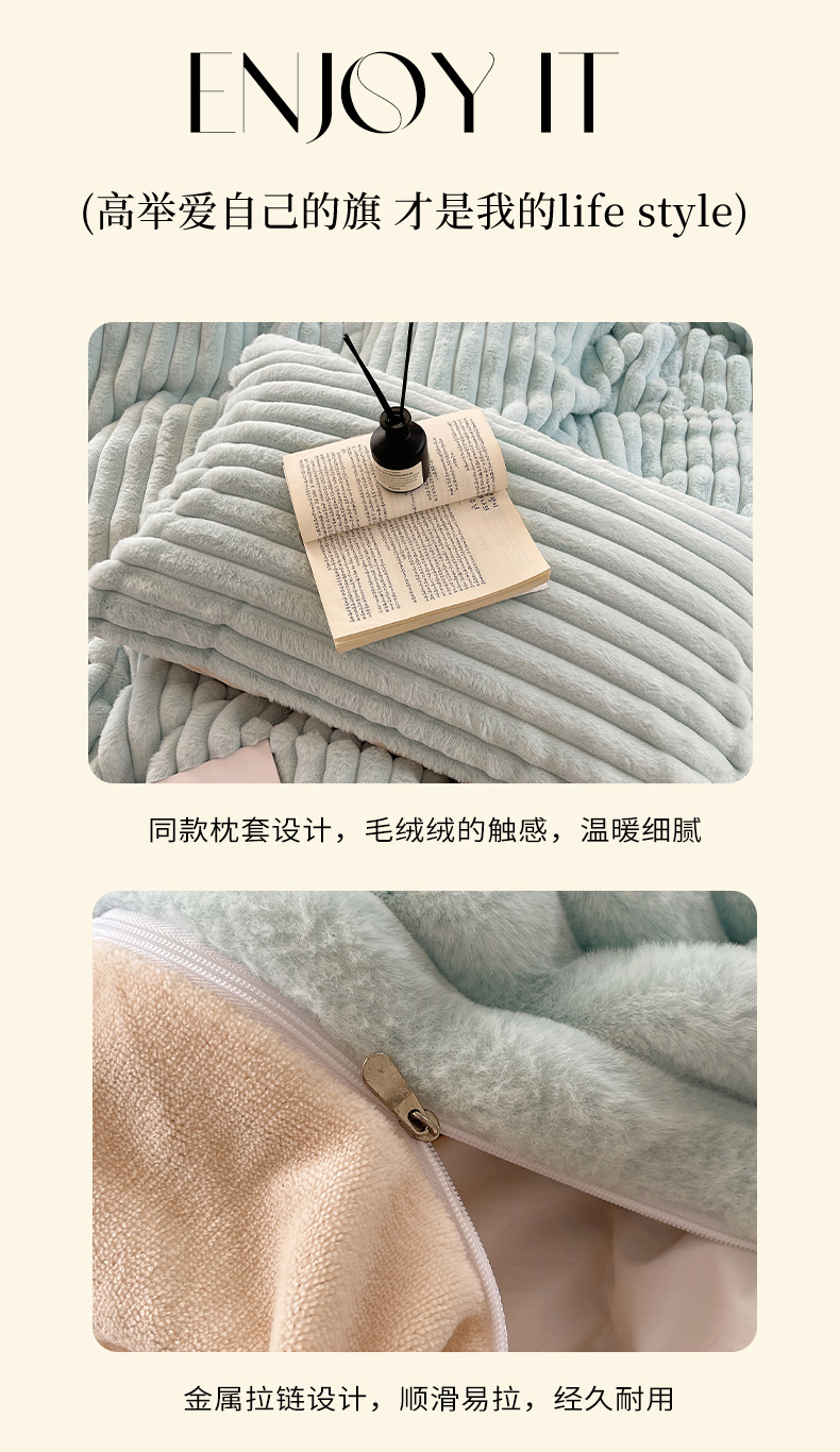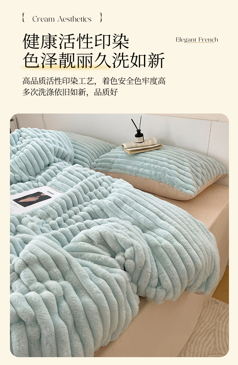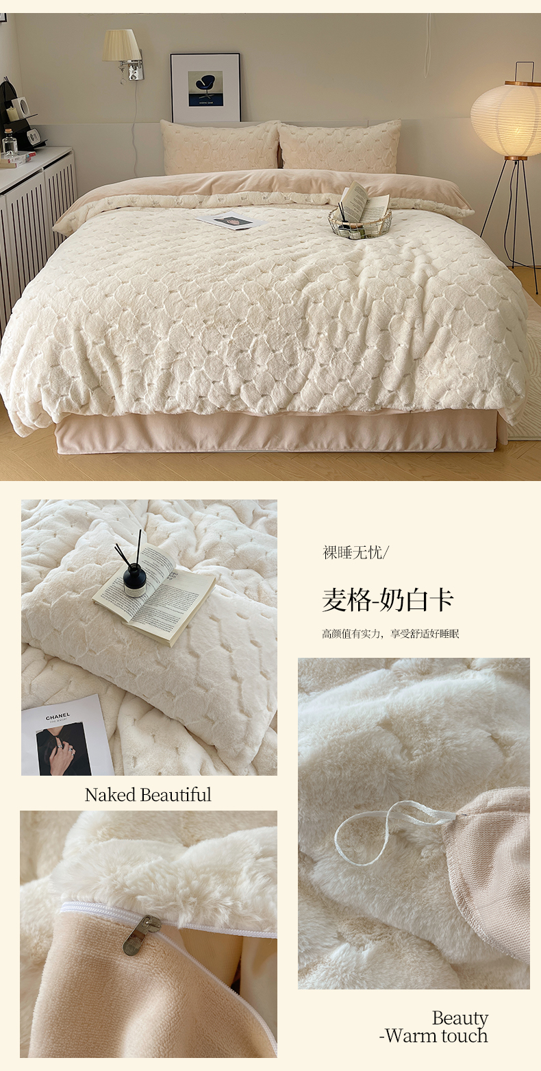 (总)三朵家纺 2023新款加厚保暖雕花兔毛绒四件套