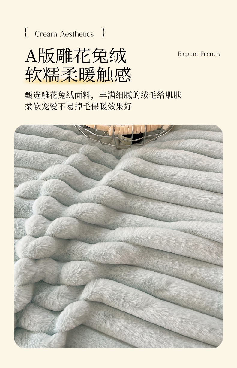 商品名称:(总)三朵家纺 2023新款加厚保暖雕花兔毛绒四件套