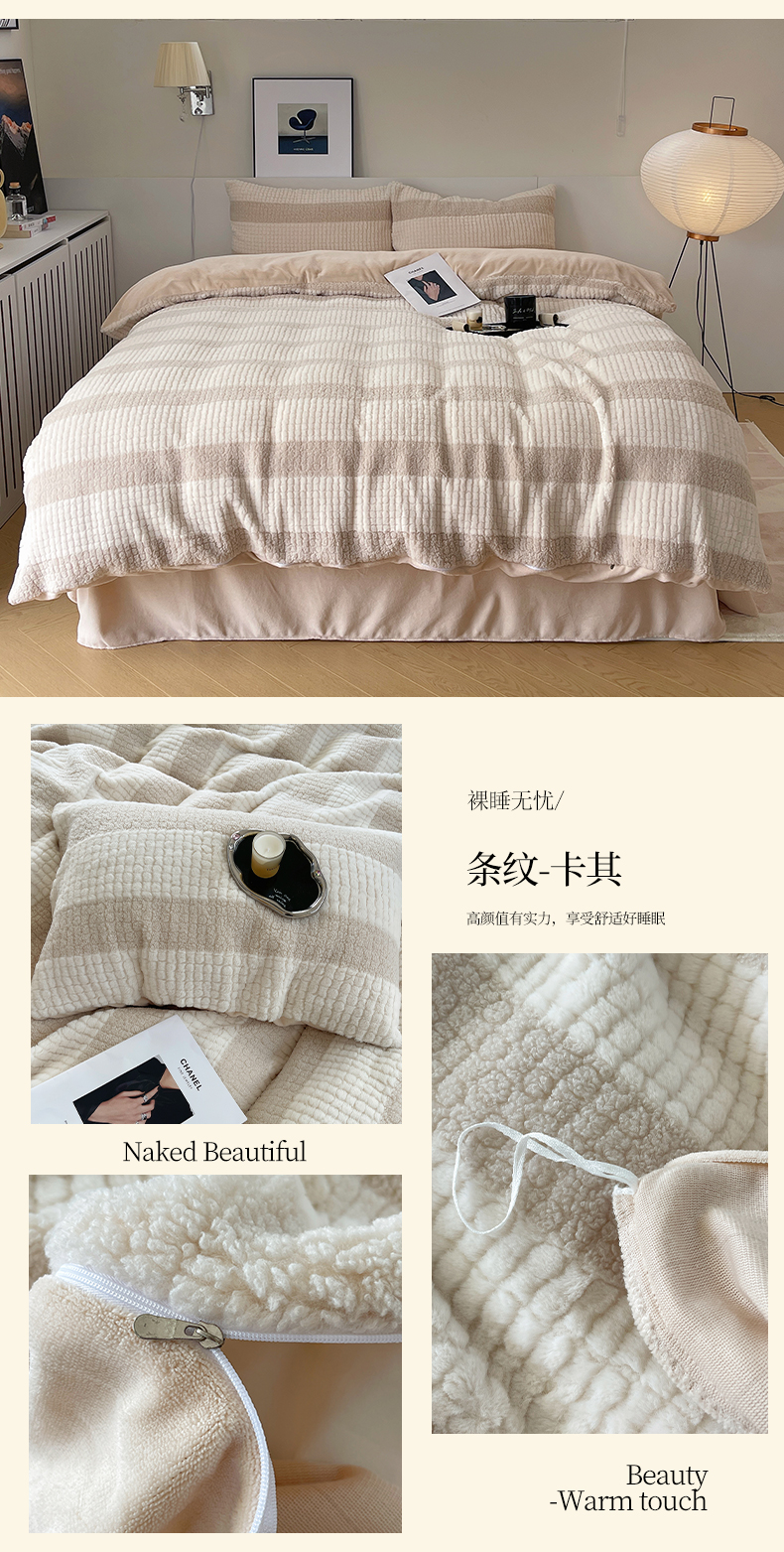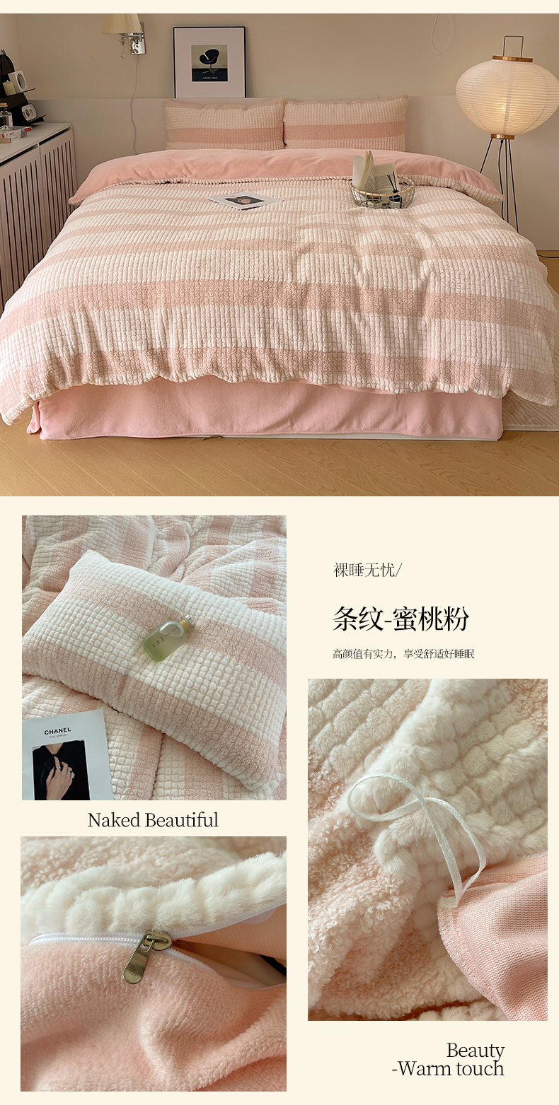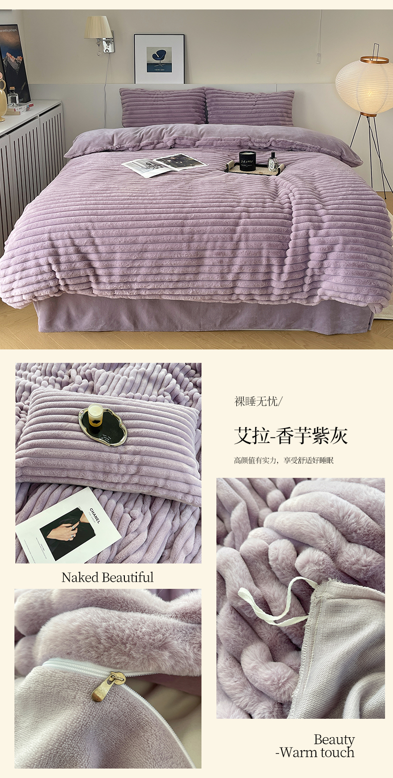 (总)三朵家纺 2025新款3D立体加厚雕花绒牛奶绒花边款四件套,花边宽条-灰色,花边宽条-蓝色,花边宽条-玉色,花边宽条-紫