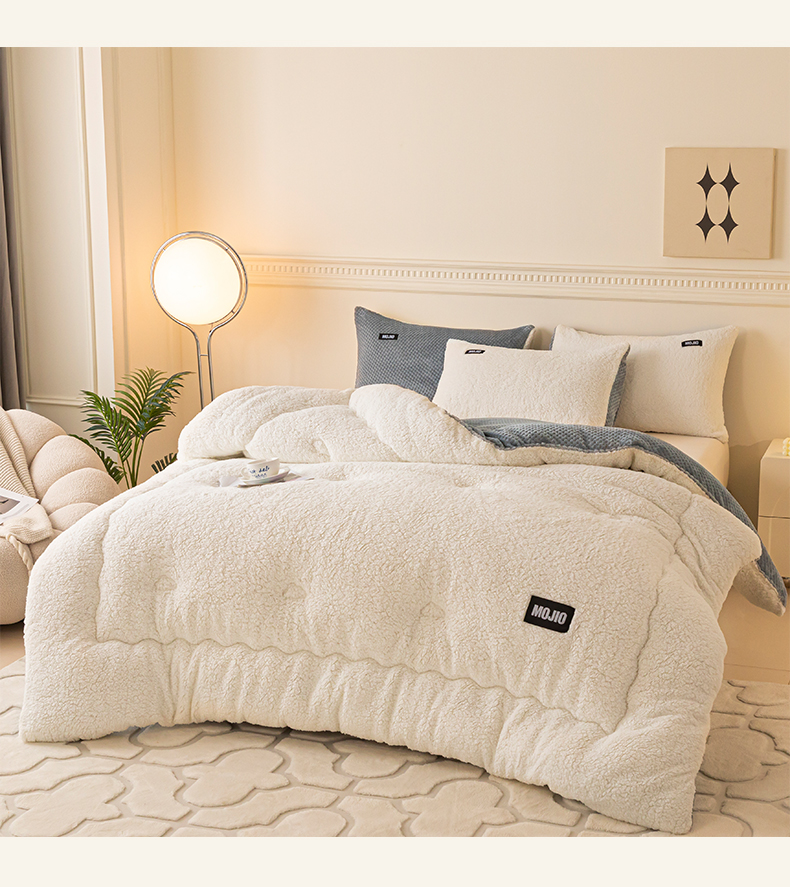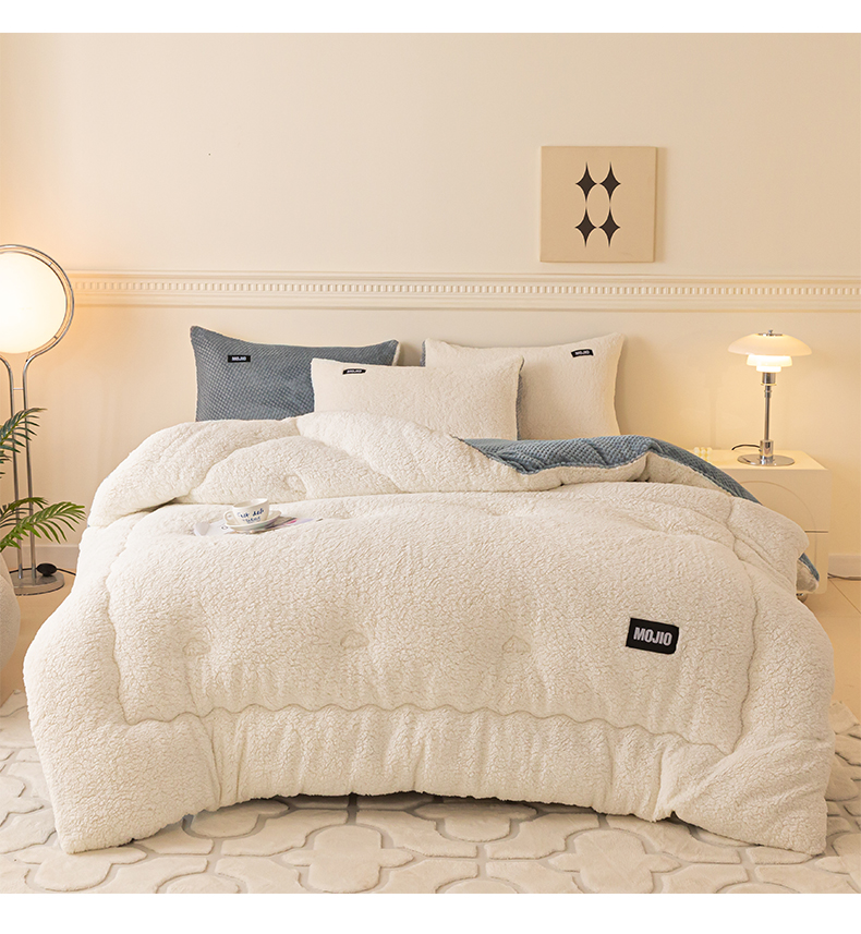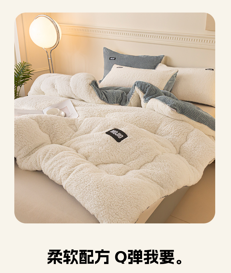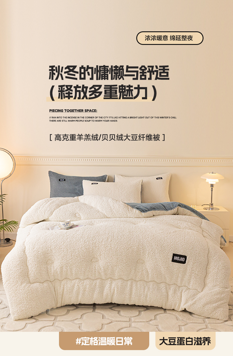 • 91家纺网 家纺一手货源 找家纺 荔禾家居 2023新款羊羔绒贝贝绒贴标保暖冬被被子被芯 奶白