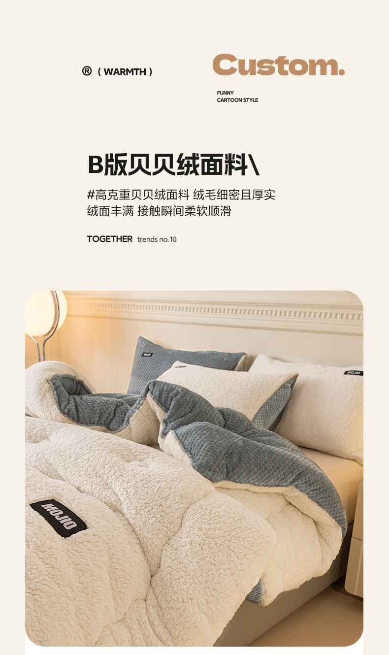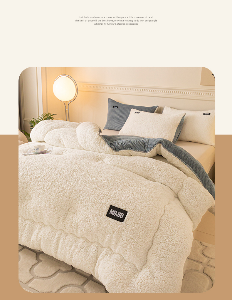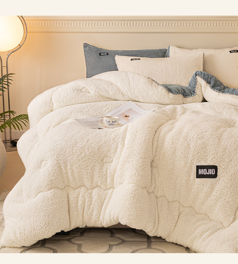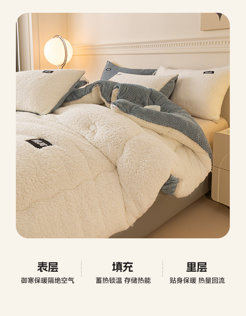 • 91家纺网 家纺一手货源 找家纺 荔禾家居 2023新款羊羔绒贝贝绒贴标保暖冬被被子被芯 奶白