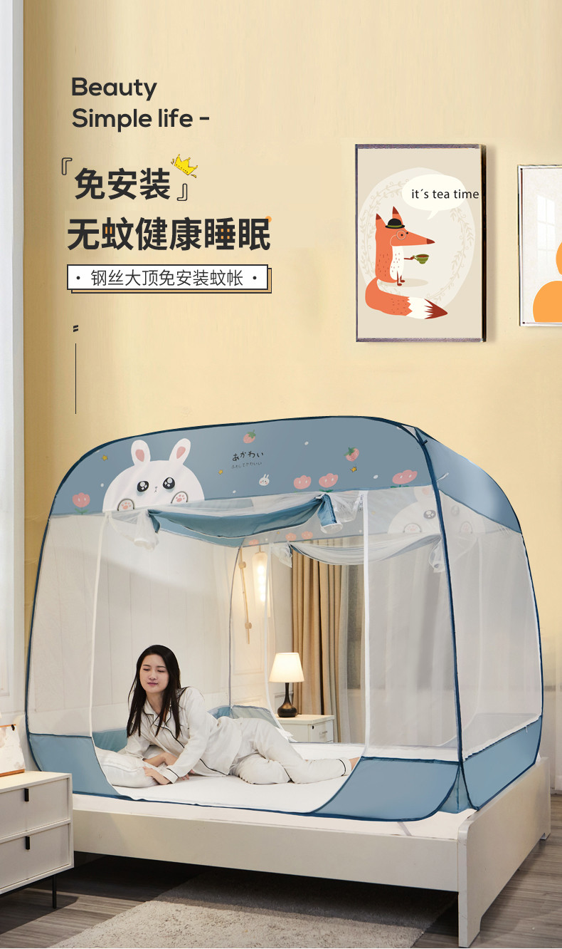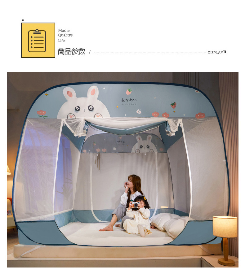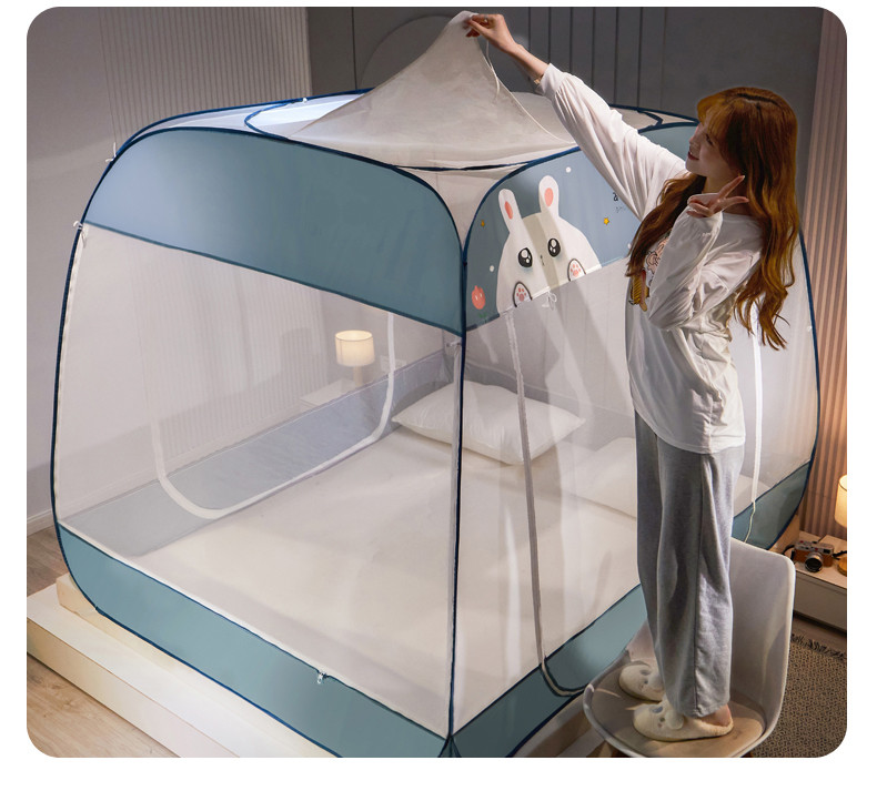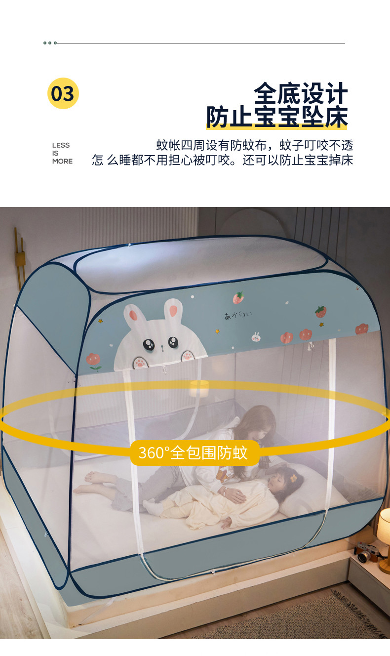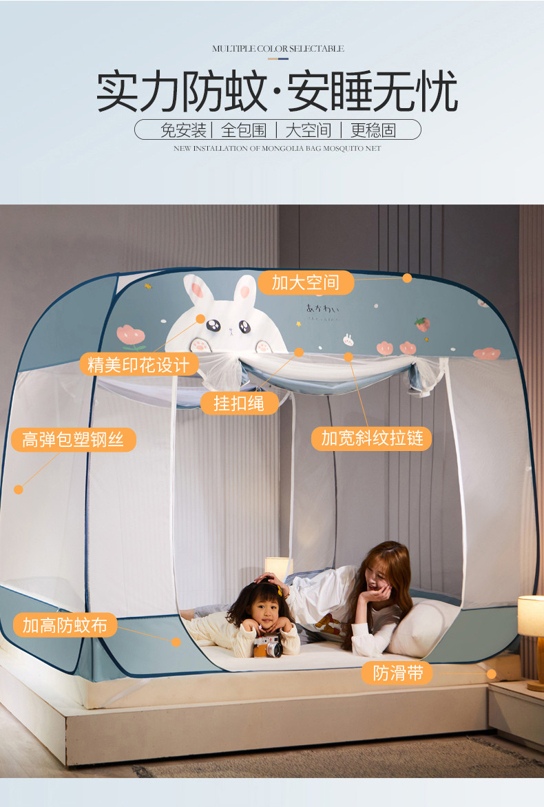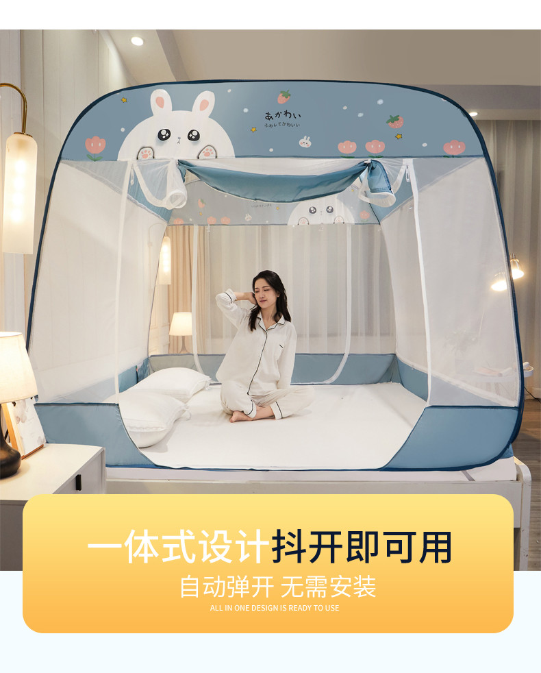 当前位置: 91家纺网 > 商品网购 > 床上用品 > 蚊帐 > 免安装蚊帐 > 海虹 2023防尘免安装蚊帐三开防摔全封闭加密无荧光双丝帐纱 可爱兔蓝
