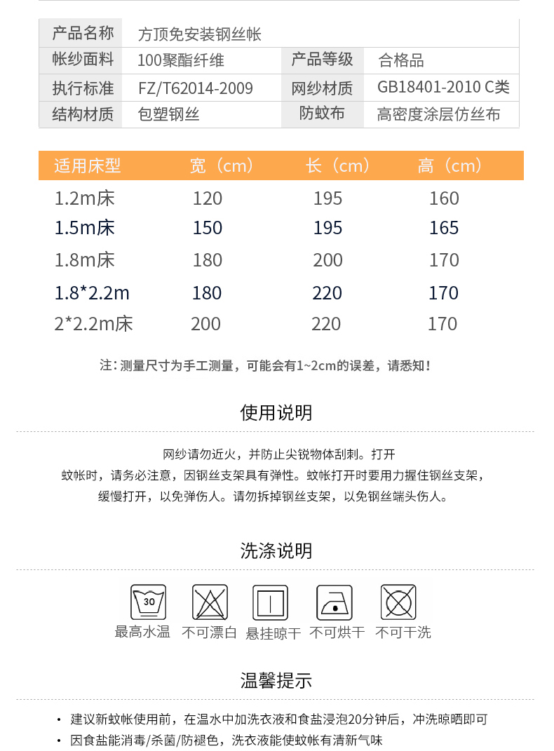 1.8*2.2m床:长220*宽180*高165cm | ¥80.00 |