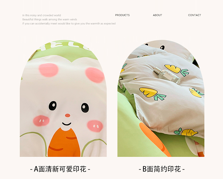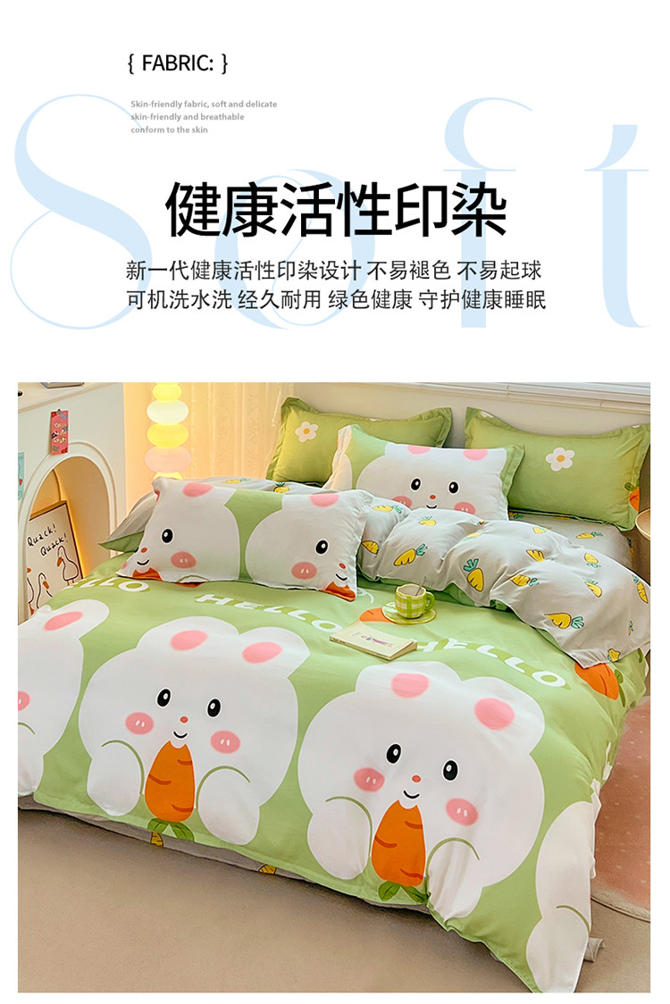 商品名称:卡斯诺 2023新款芦荟棉四件套10月新花型 可爱小兔